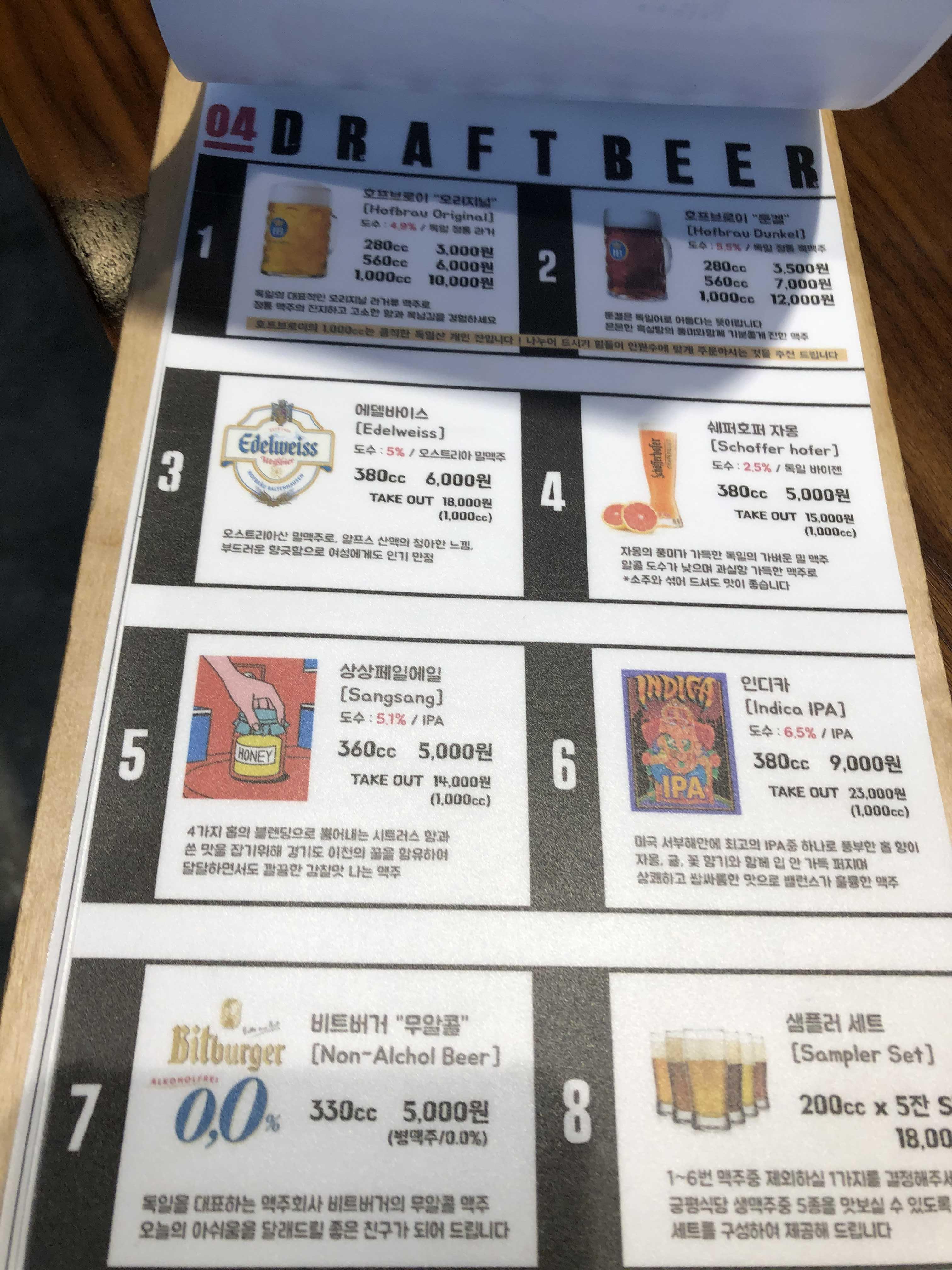 재밌는건 진짜 여러가지 생맥주도 판매한다는거였어요. 우리 부모님 세대가 추천한 식당치고는 좀 힙한 맥주들이 많네요.