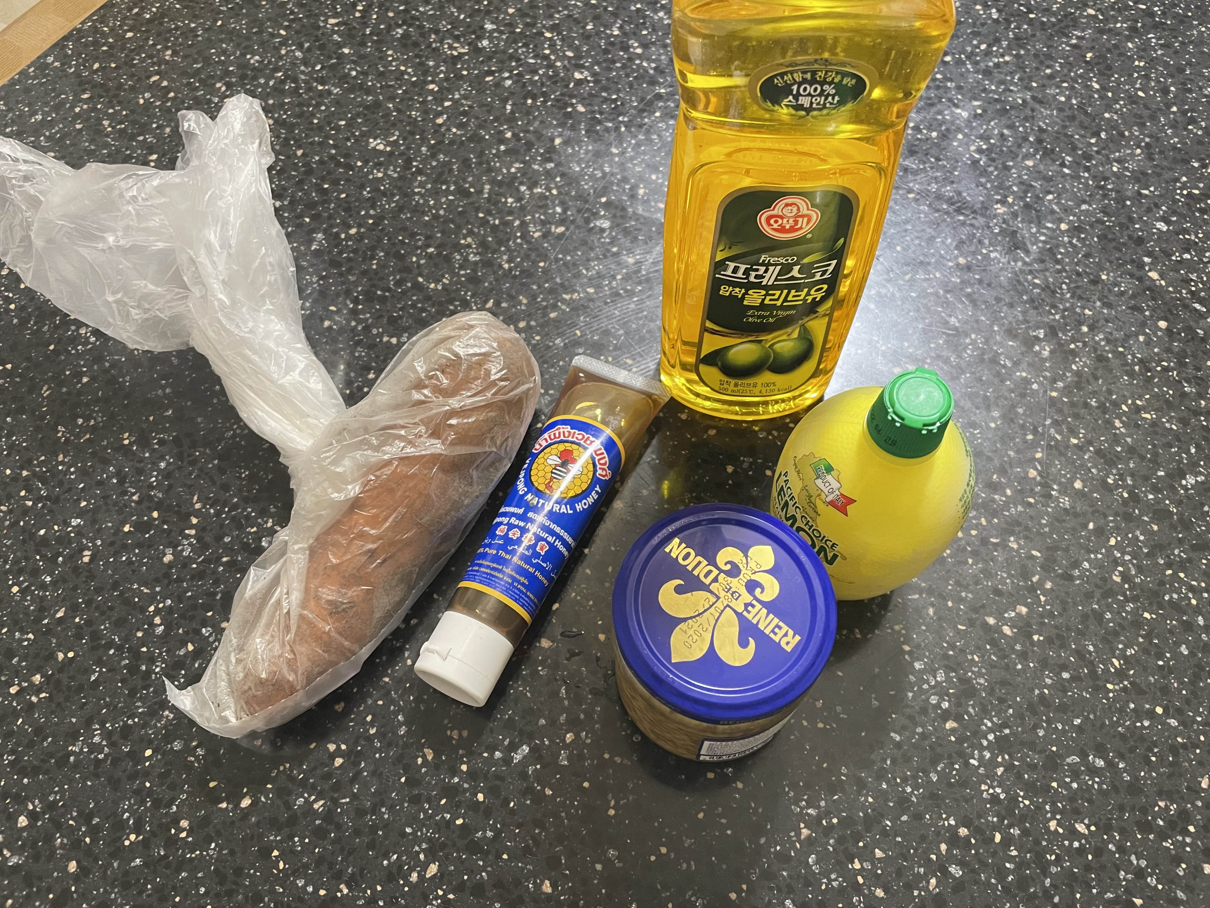 당근, 꿀, 올리브유, 레몬, 홀그레인머스타드!