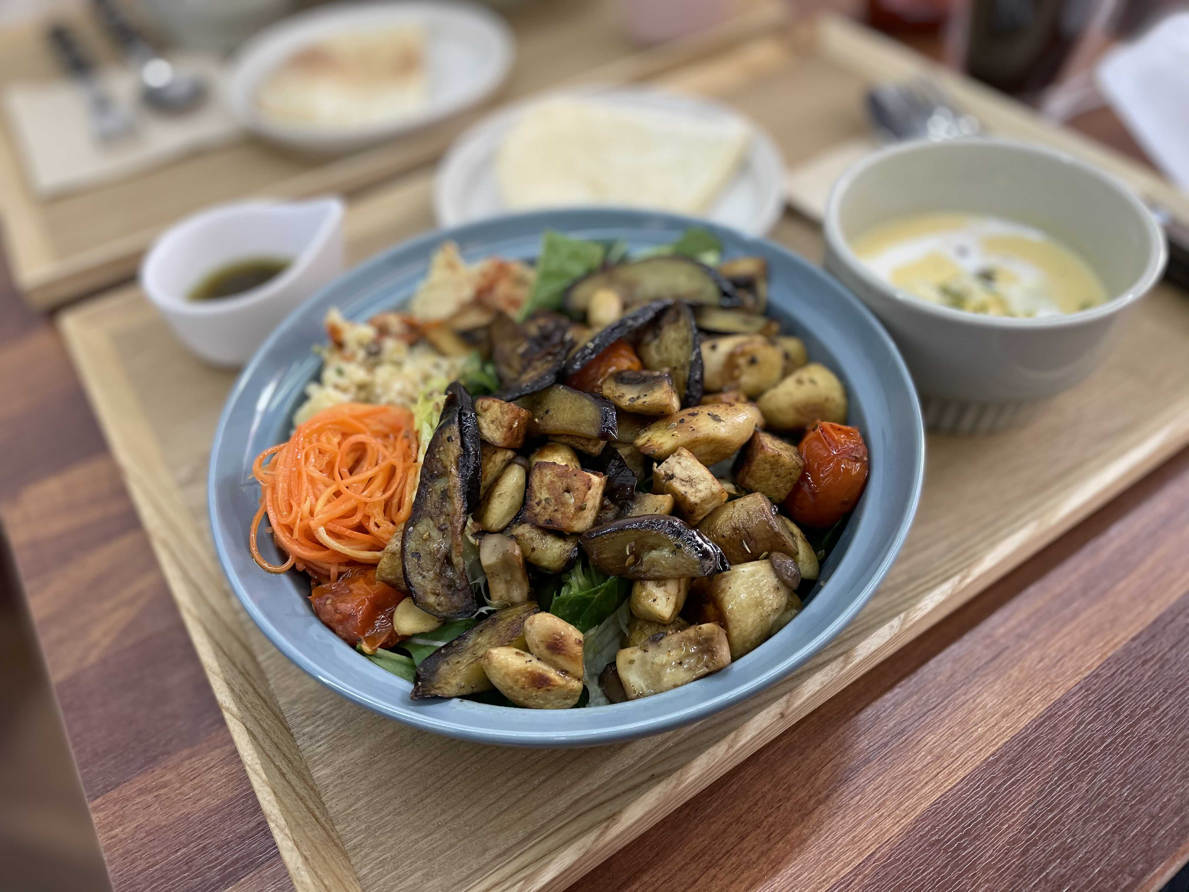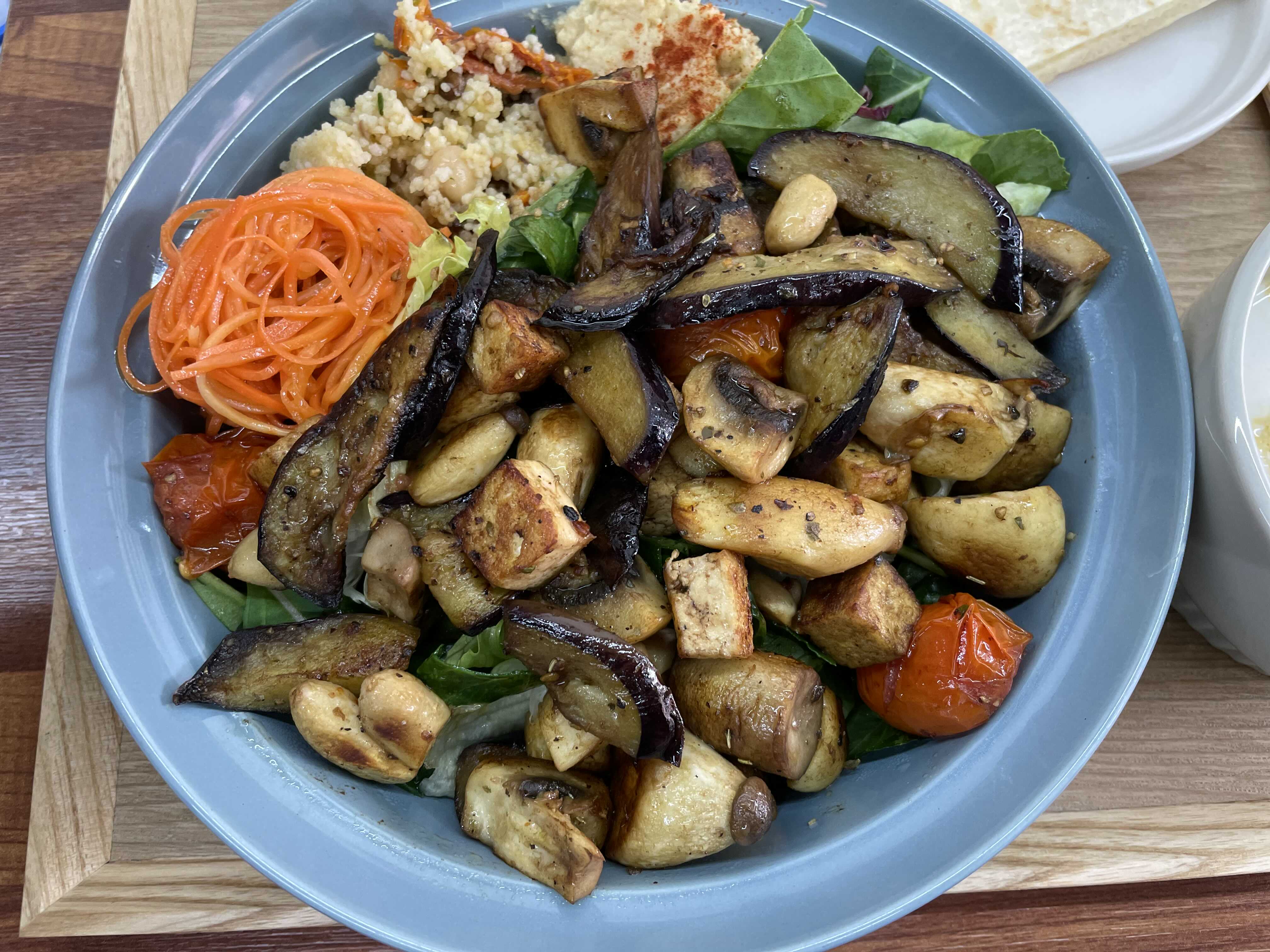 너무너무 맛있는 후무스, 당근라페, 쿠스쿠스. 그리고 가지와 버섯 토마토 두부 양송이 버섯등 여러가지 구운채소들! 버섯이 많아서 좋았어요. 버섯은 뭔들 사랑이니꽈..