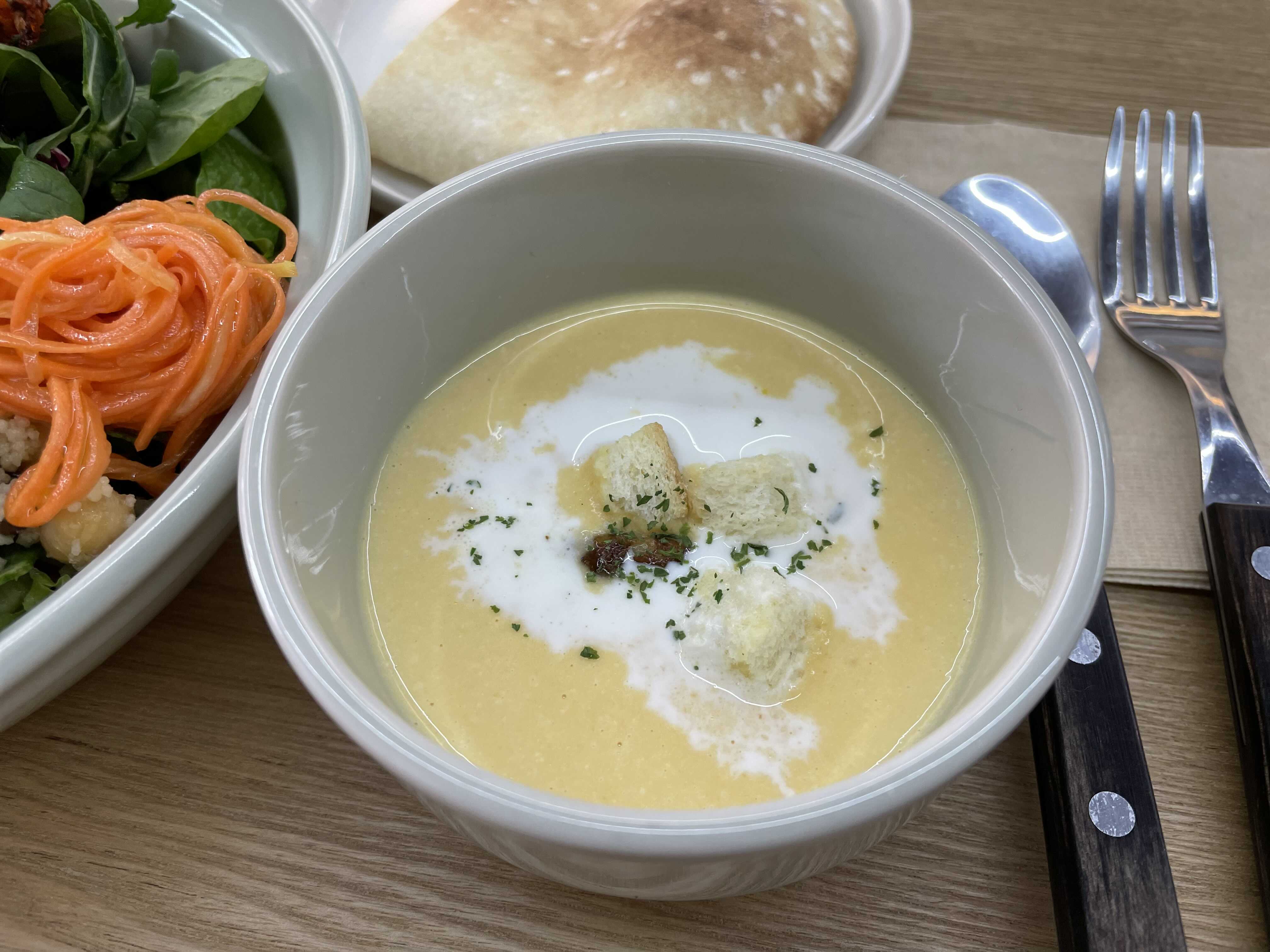 세트매뉴를 시키면 같이 나오는 스프에요! 크리미한 맛이 되게 좋은 단호박스프 같았어요. 부들부들 보들보들한 그런 맛!