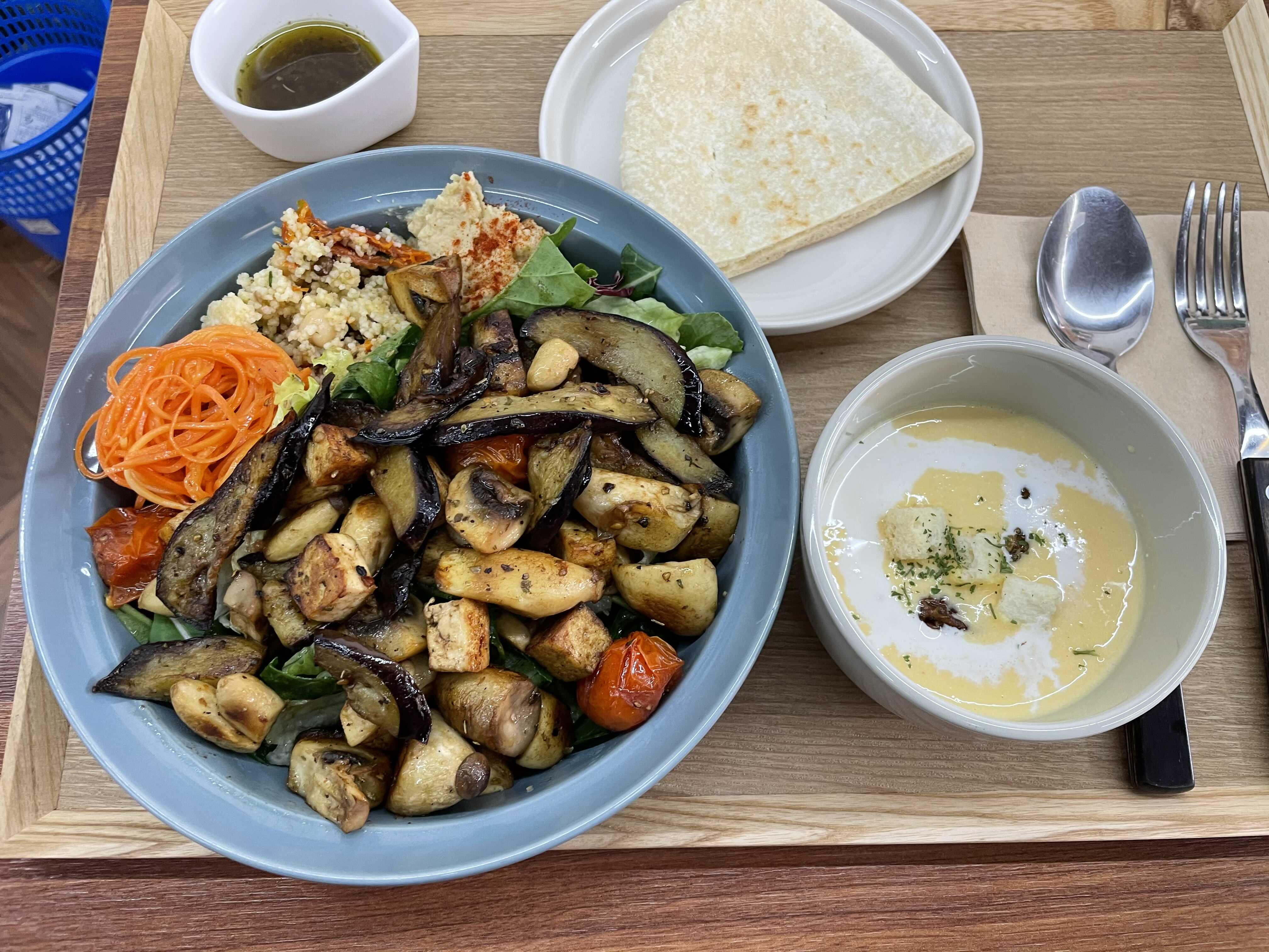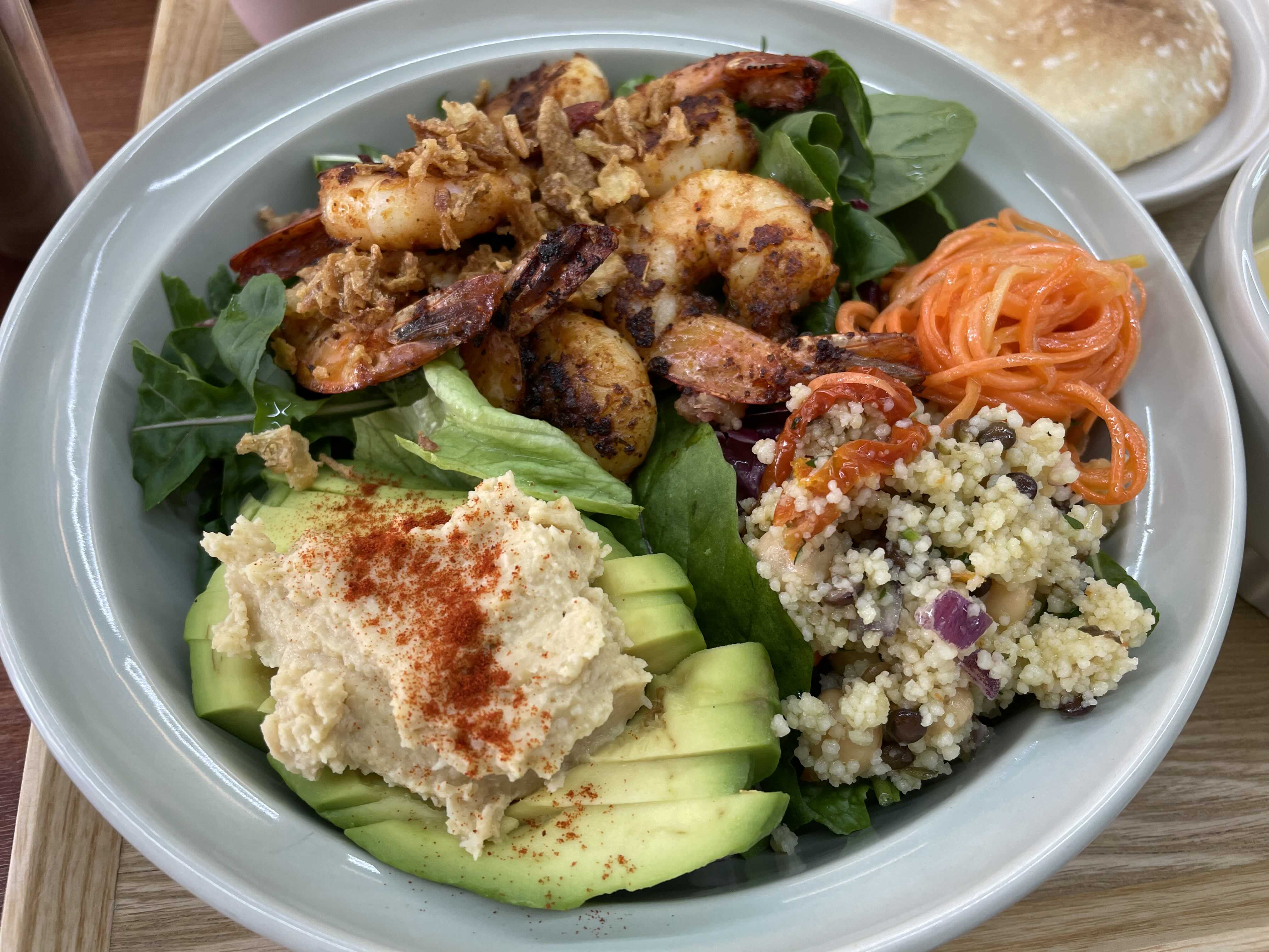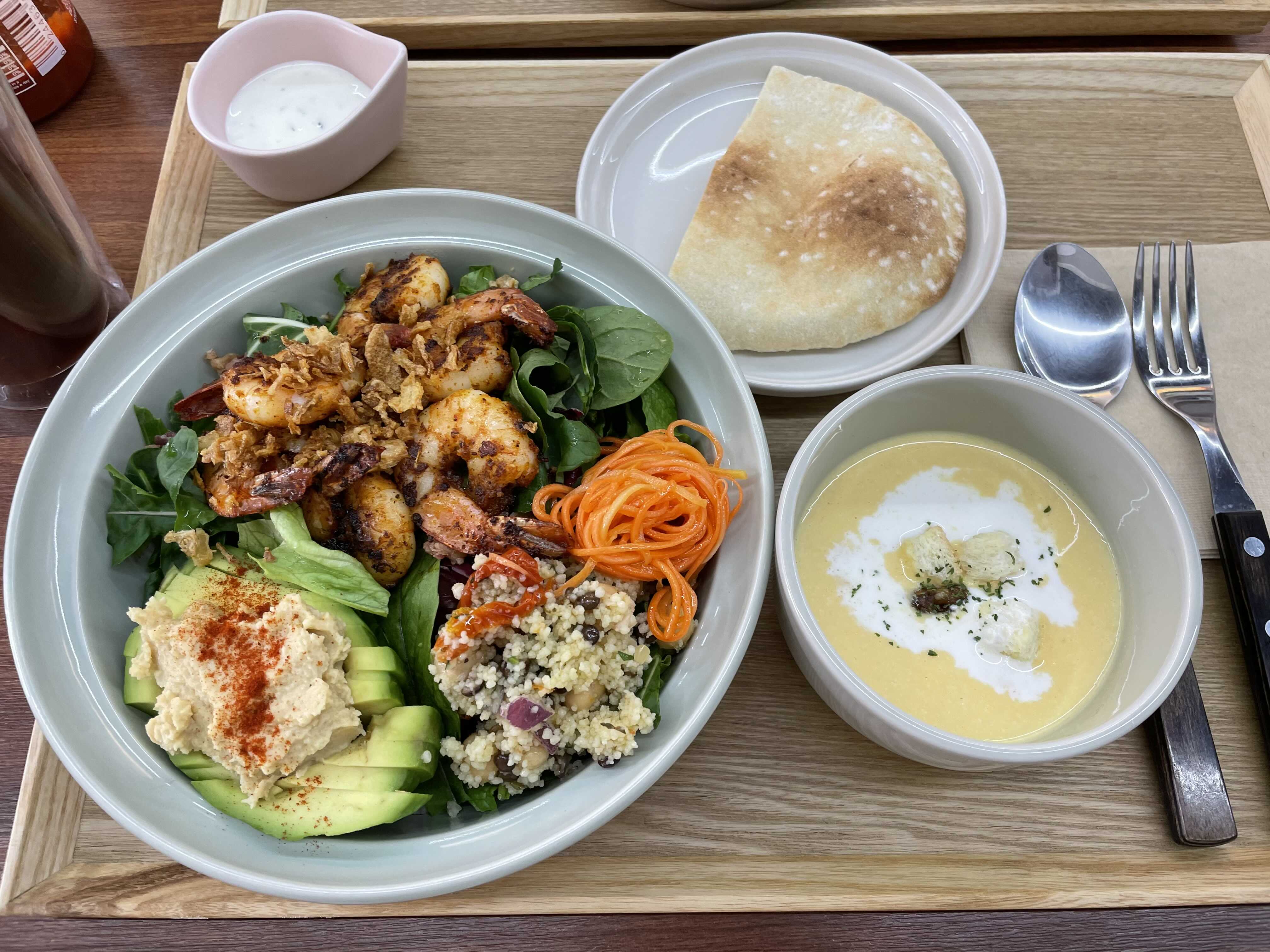 그런데 여기는 그런 샐러드구성도 너무너무 맛있고 좋은데, 사이드로 들어가는 후무스 당근라페 쿠스쿠스 조합이 진짜 너무 좋아요.
