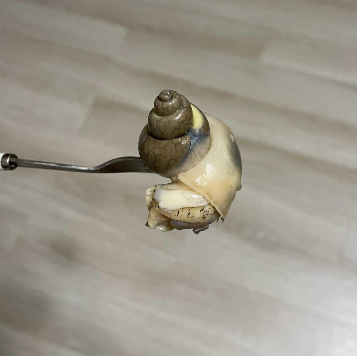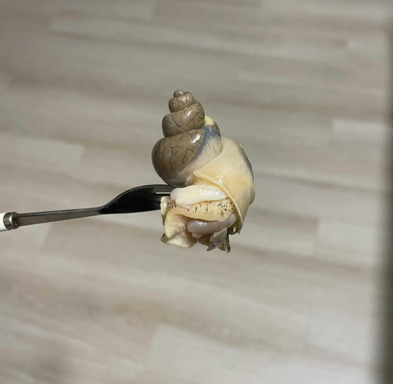 몸통을 딱 하고 잡고 포크로 푹 깊숙히 찔른다음, 포크는 가만히 있고 나머지 손으로 몸통을 돌돌돌돌 살살살살 돌려 꺼내주면 아래와 같이 깔끔한 골뱅이의 몸통이 나와욧! 나 좀 잘하는듯