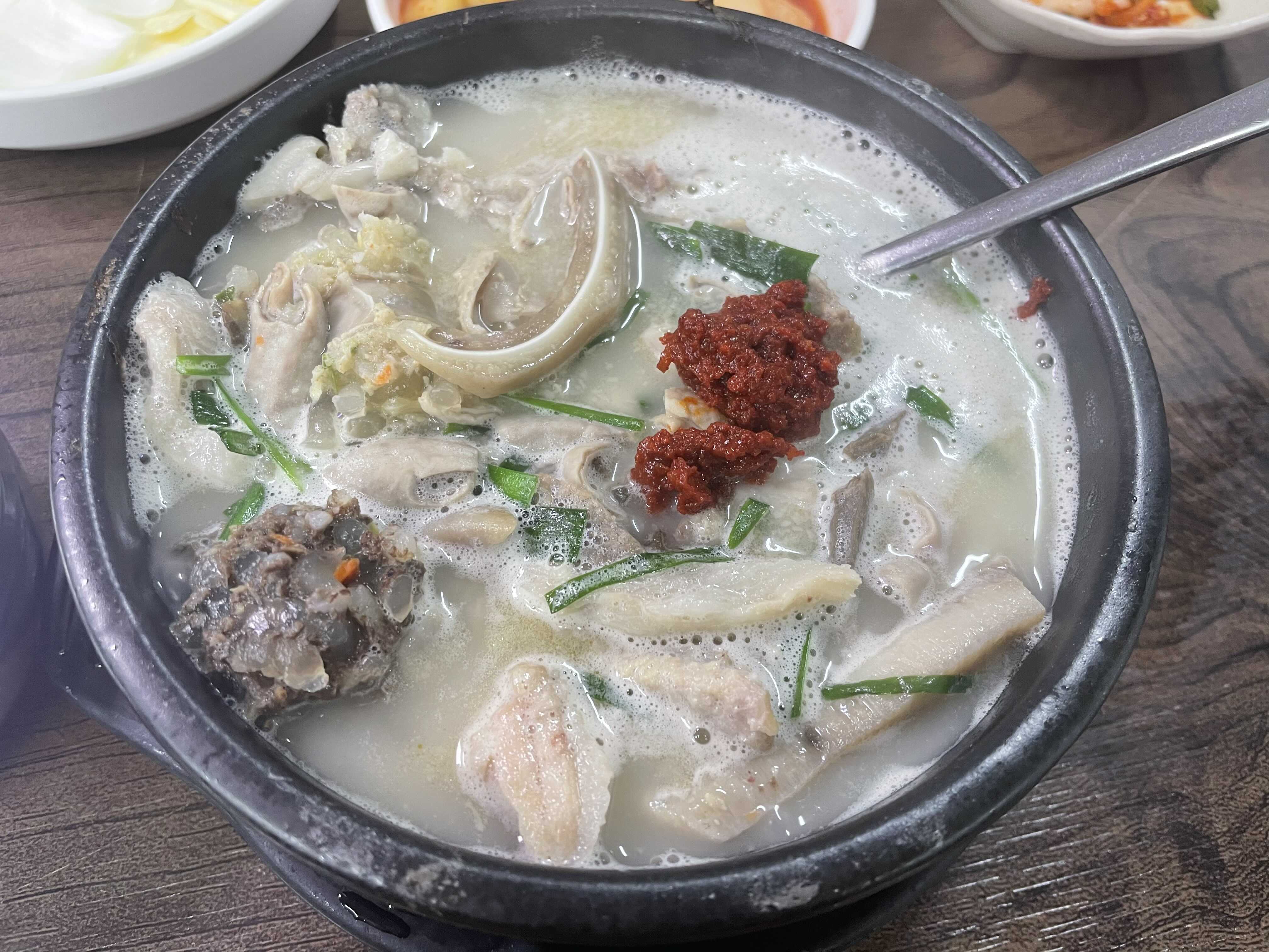 뽀얀국물이 진해서 약간 입술이 찐덕해지는 느낌의 순대국이다! 국물의 진함도 진함이지만 안에 들은 순대가 깔끔하고 좋았다. 약간 피순대처럼 챨기있는 순대와 머릿고기가 양이 어마어마하게 들어있다.
