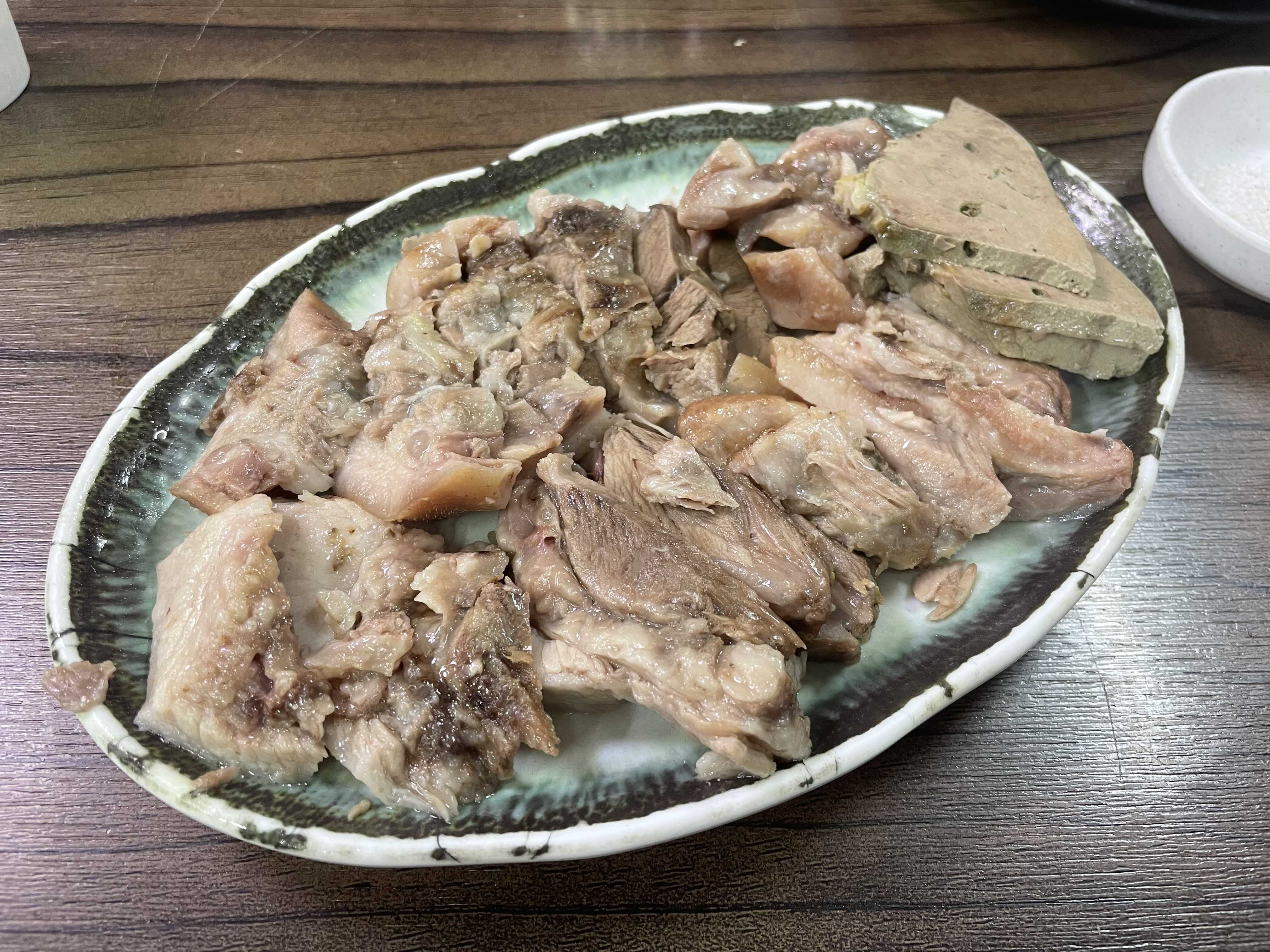 하.. 방금나온 이 머릿고기 부위별로 썰려서 투박하게 얹어져서 나왔따. 어느 부위가 어디인지 하나도 모르겠지만,