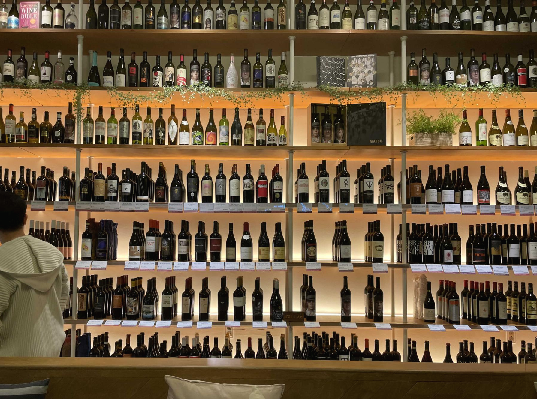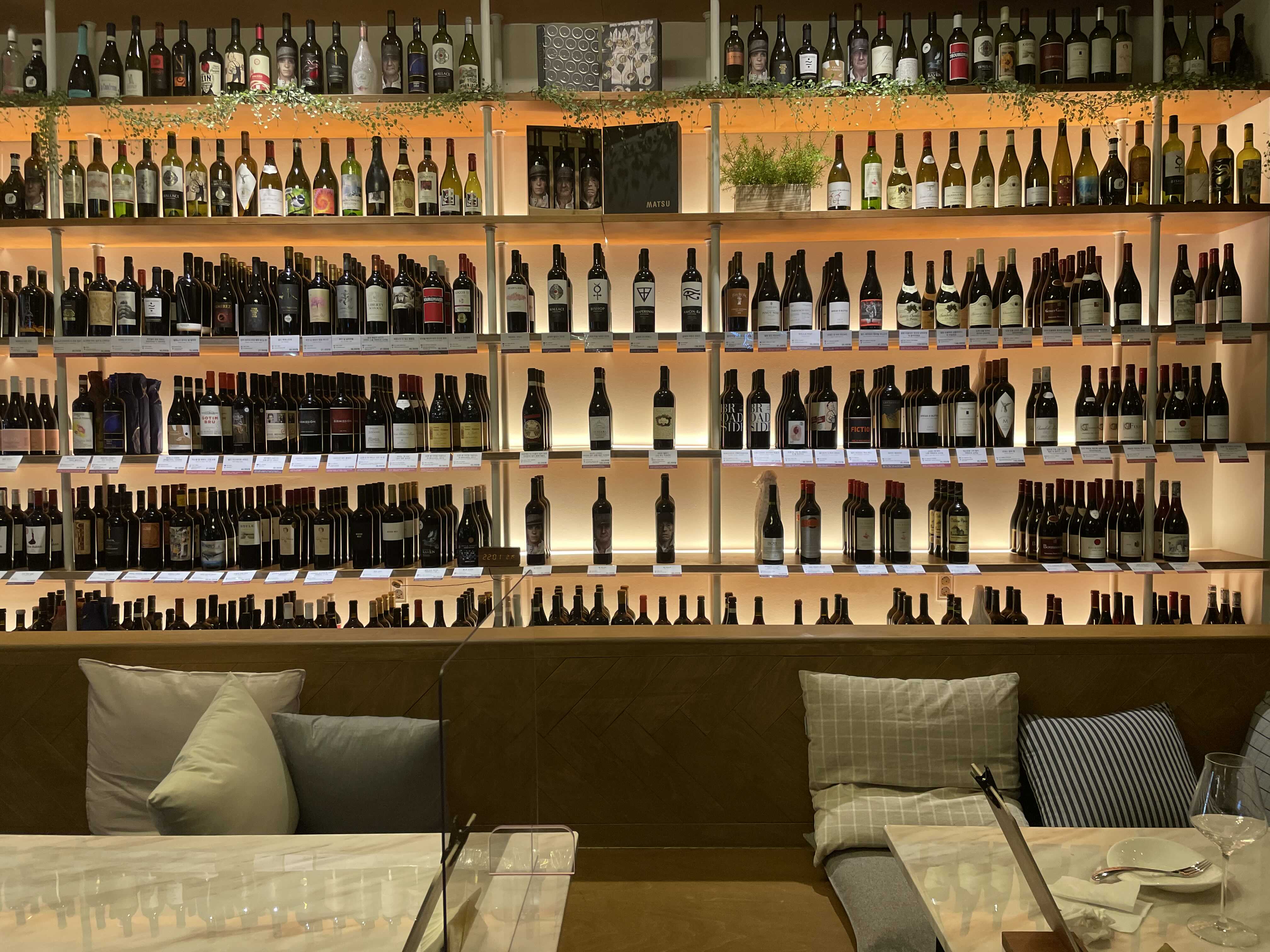 한쪽 벽면에 모두 와인으로 꽉 채워져있어서 구경하는 재미가 있어요.