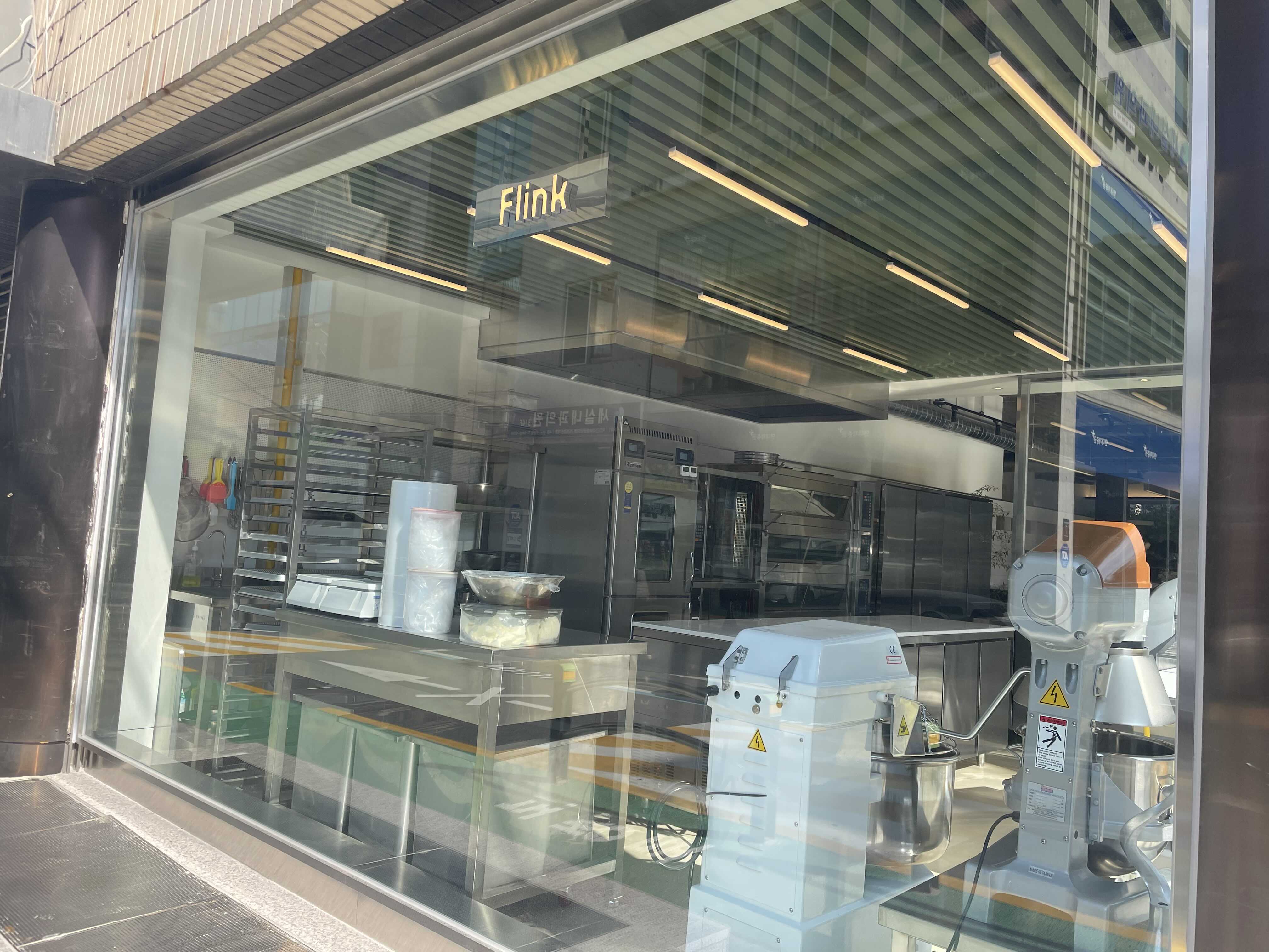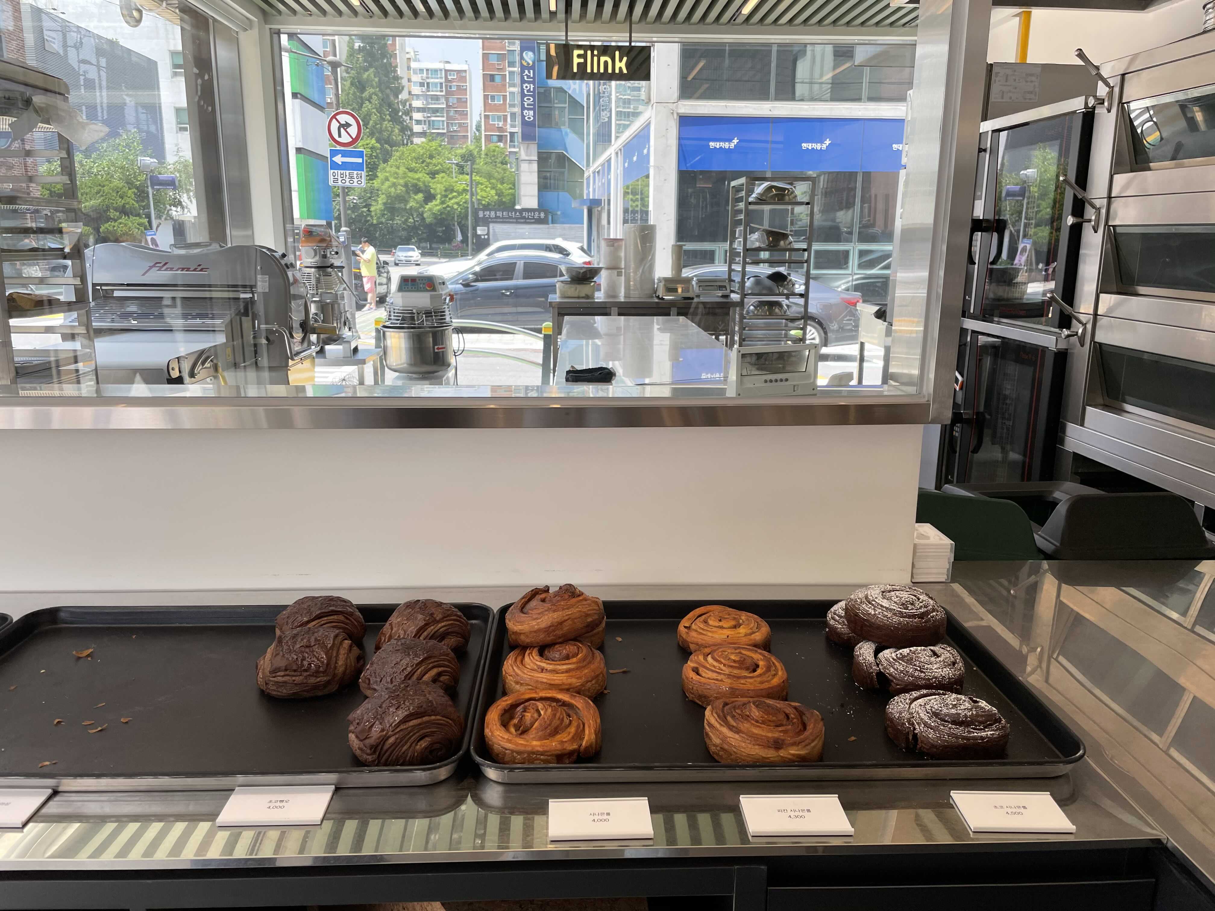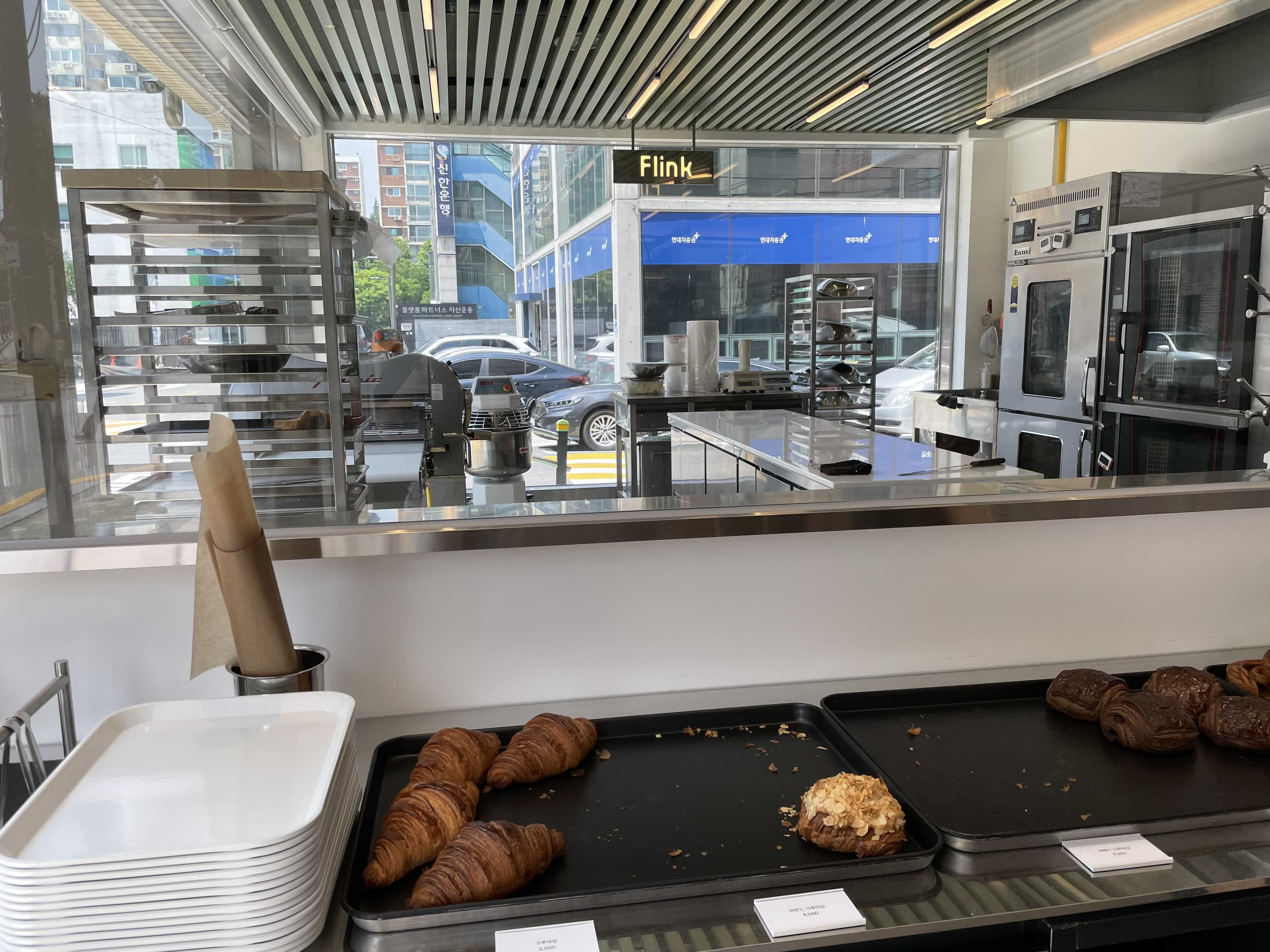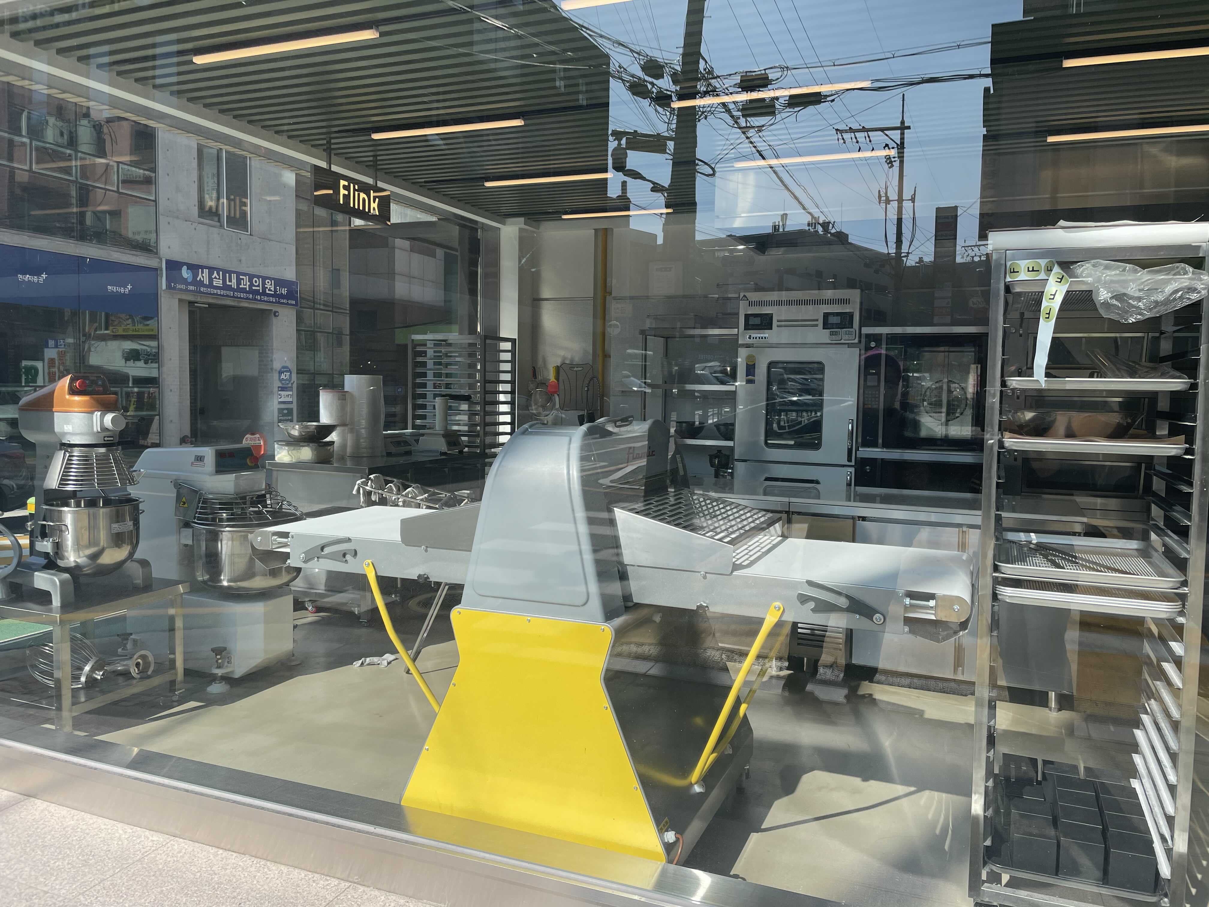 플링크의 베이커리 섹션과 그 뒤로 보이는 베이킹 주방. 설비에 투자를 많이 하신 것 같다.