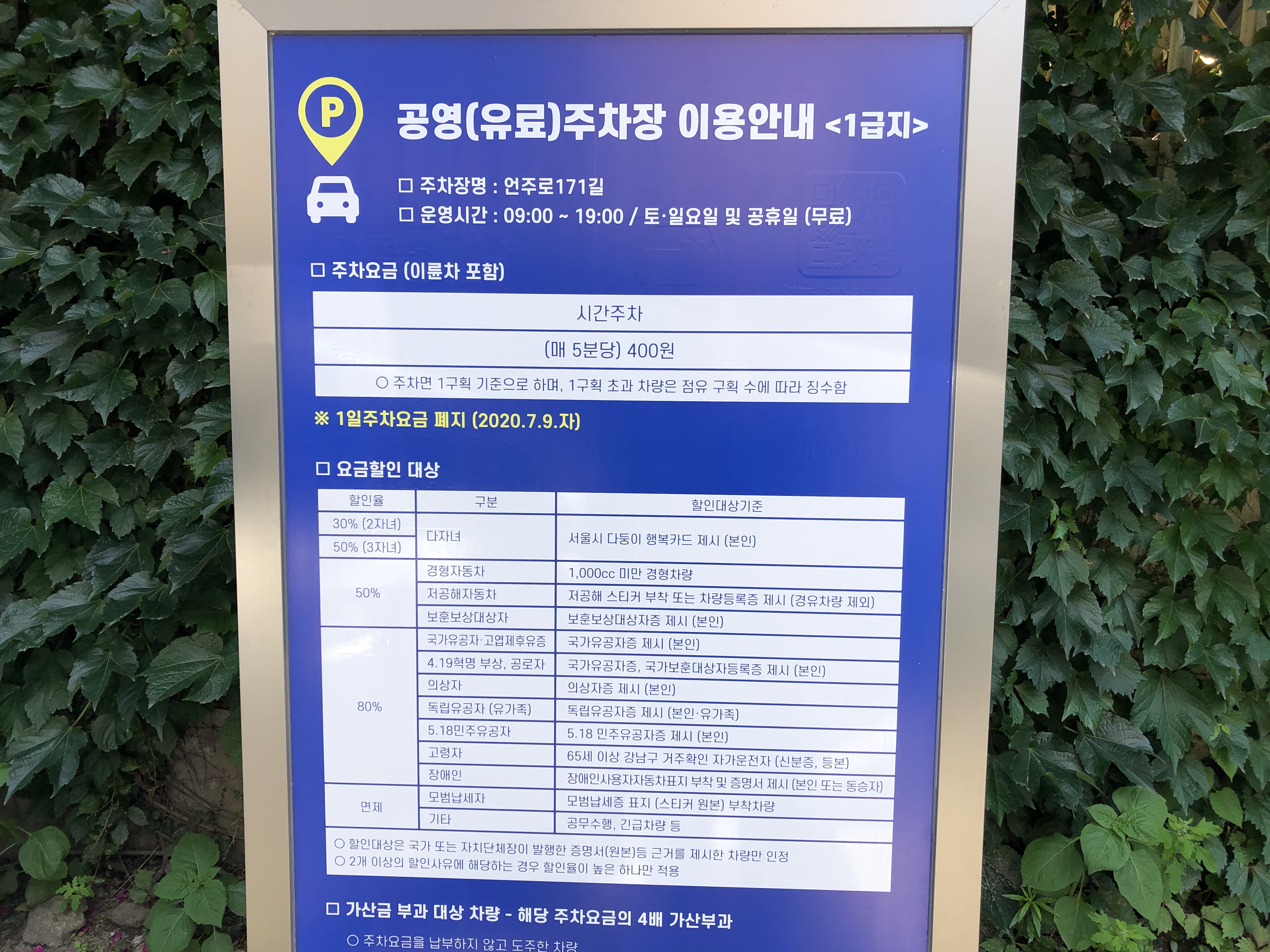 주차요금과 할인정보도 찍어왔으니 아래 사진 참고!