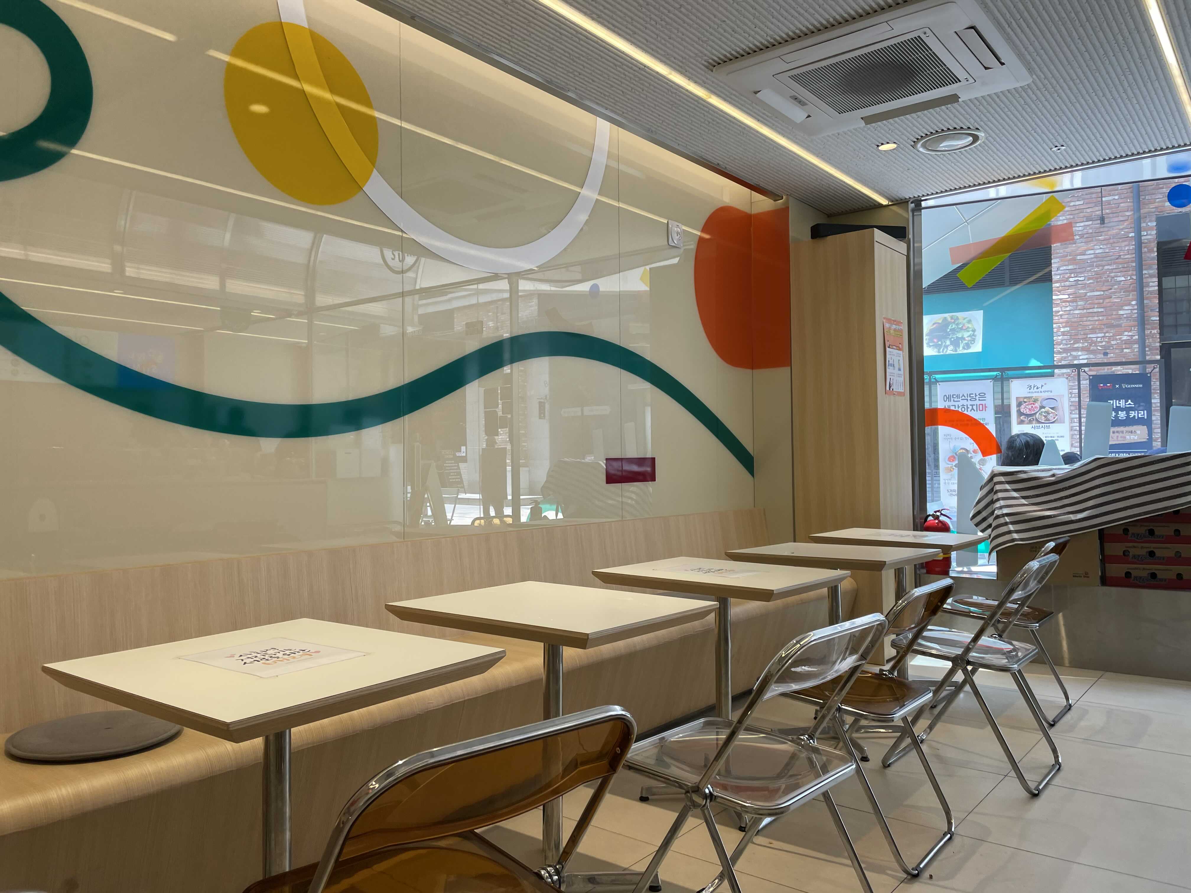 유리창문에 붙어있는 알록달록한 무늬도 완전 취향 저격입니다.