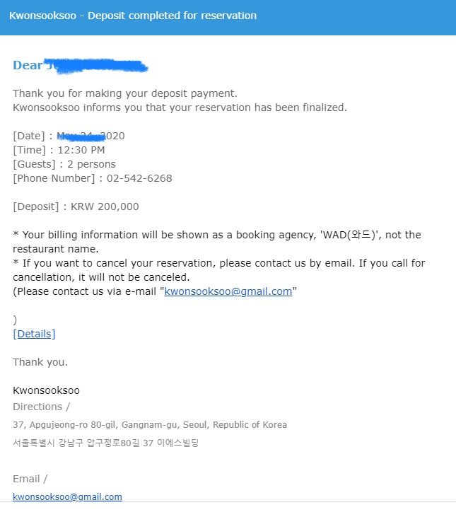 특이한 점이 있다면, 식사비용만큼 미리 결제한 후, 당일날 취소 되어 다시 결제를 한다는 시스템인데, 조금은 번거롭다는 점 외에는 별다른 것은 없다. 당일날 그냥 취소하지않고, 결제를 생략하는 것도 좋은 방법일 듯 한데, 그런식으로는 하지 않는 것 같다.