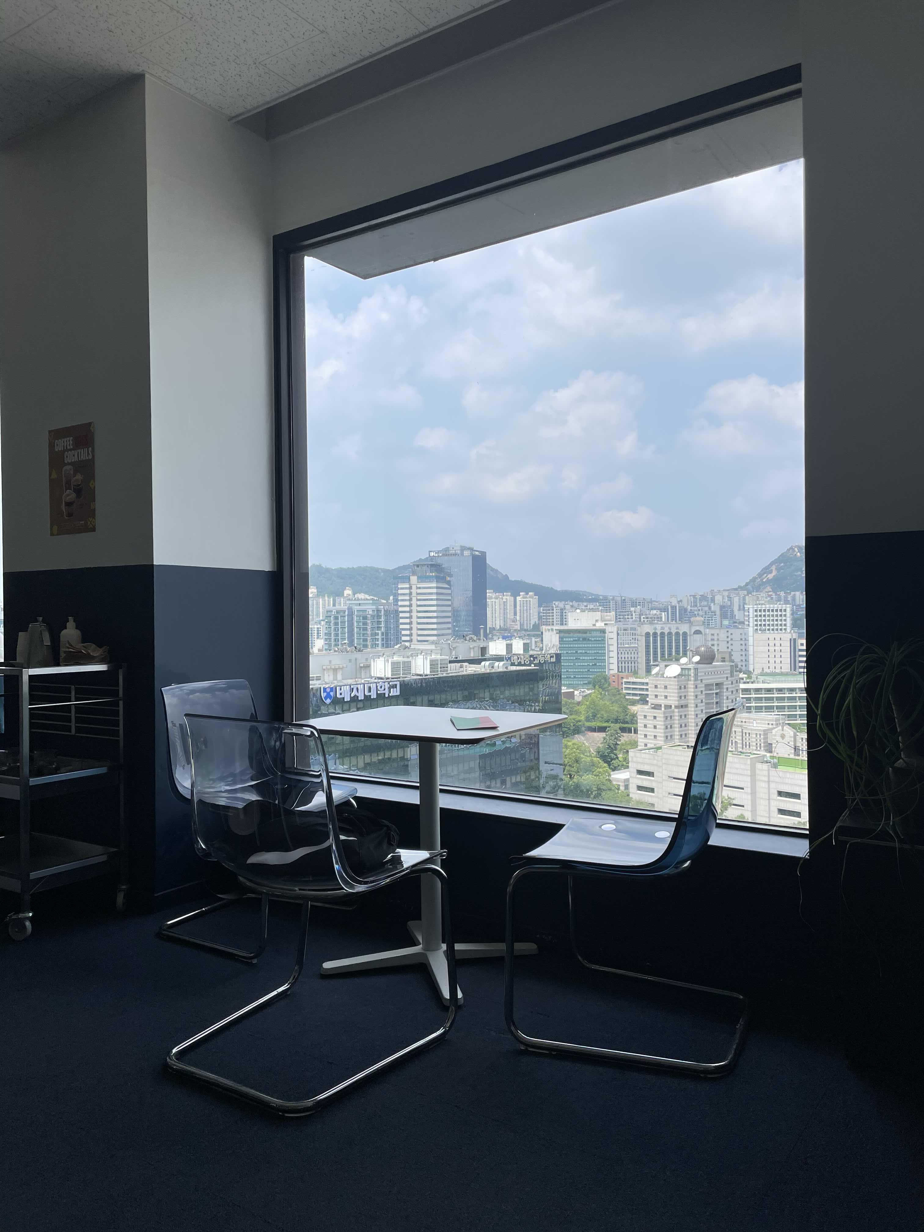 자리 주인이 잠시 픽업하러 갔을 때 몰래 찍은 창가.
