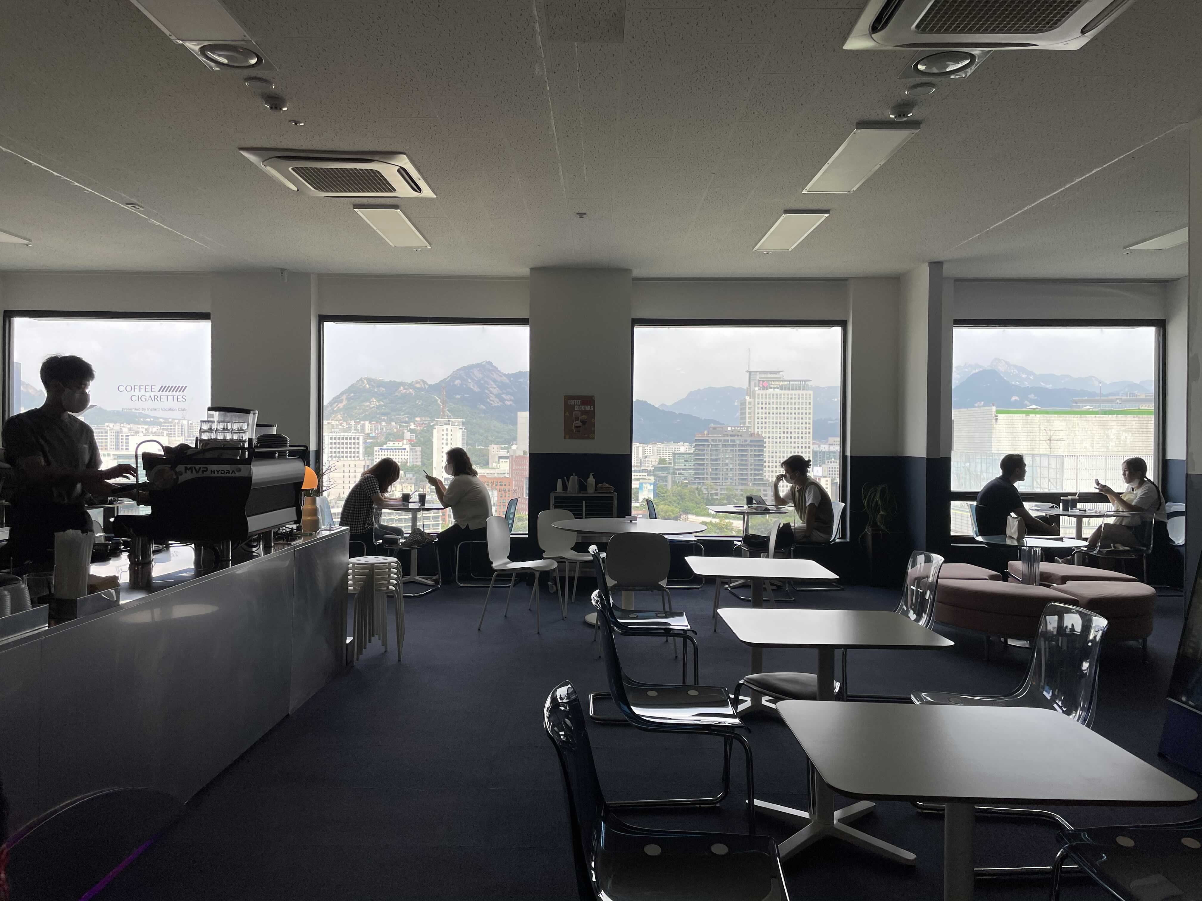 밖으로 보이는 산... 종로 풍경.