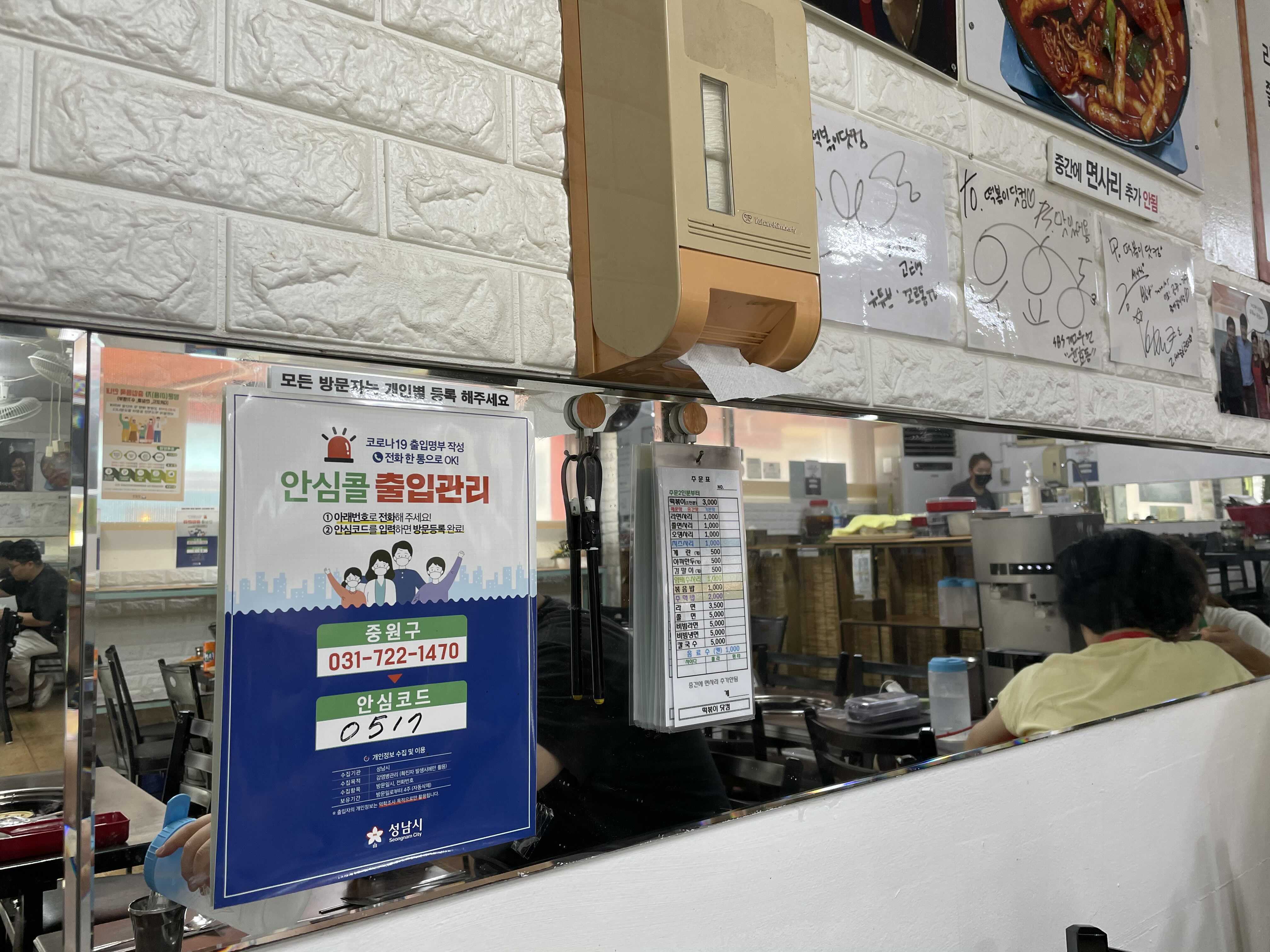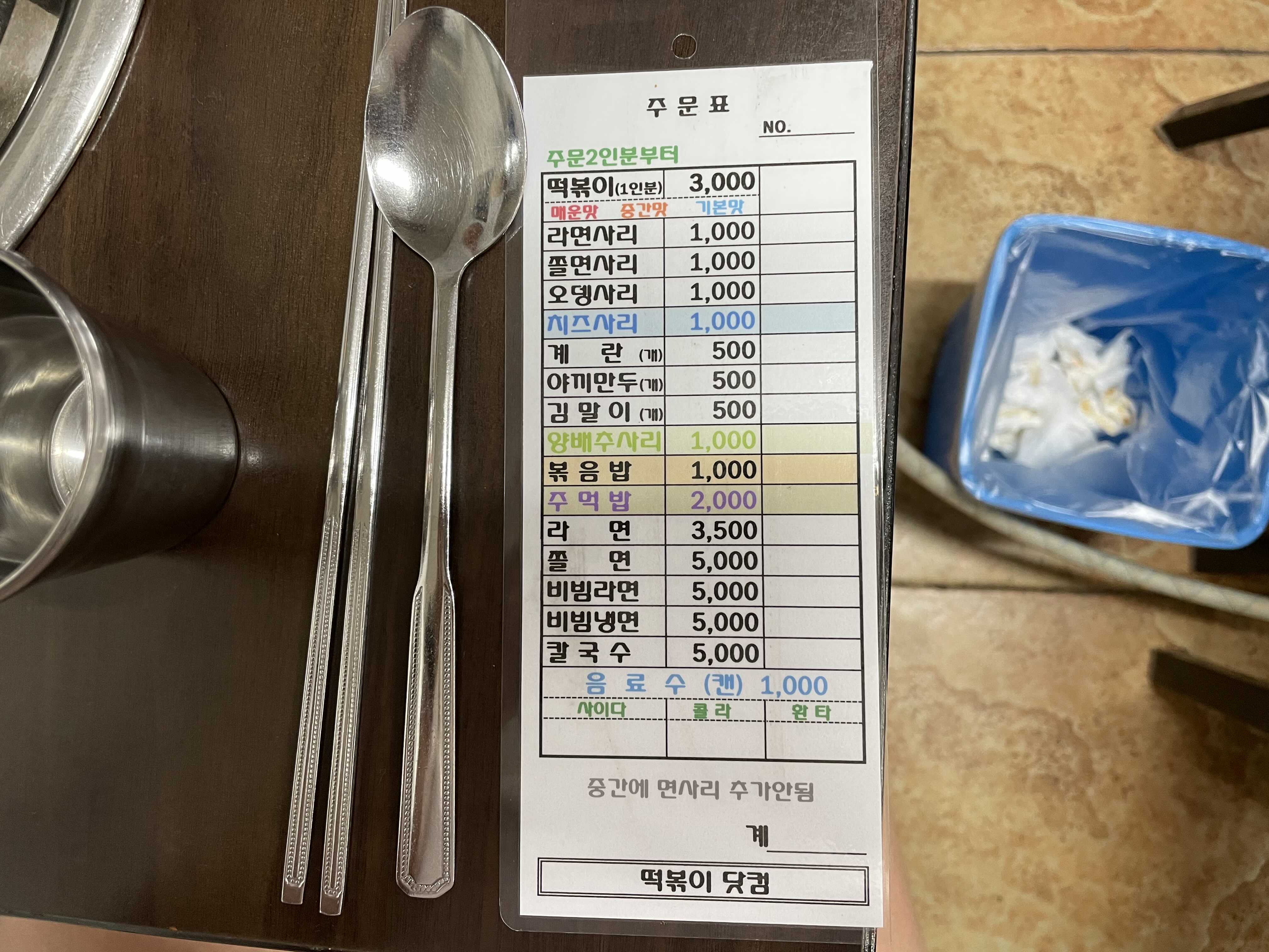 이 종이에다가 바로 옆있는 팬으로 주문할 것들을 체크해서 사장님 드리면 됩니다!