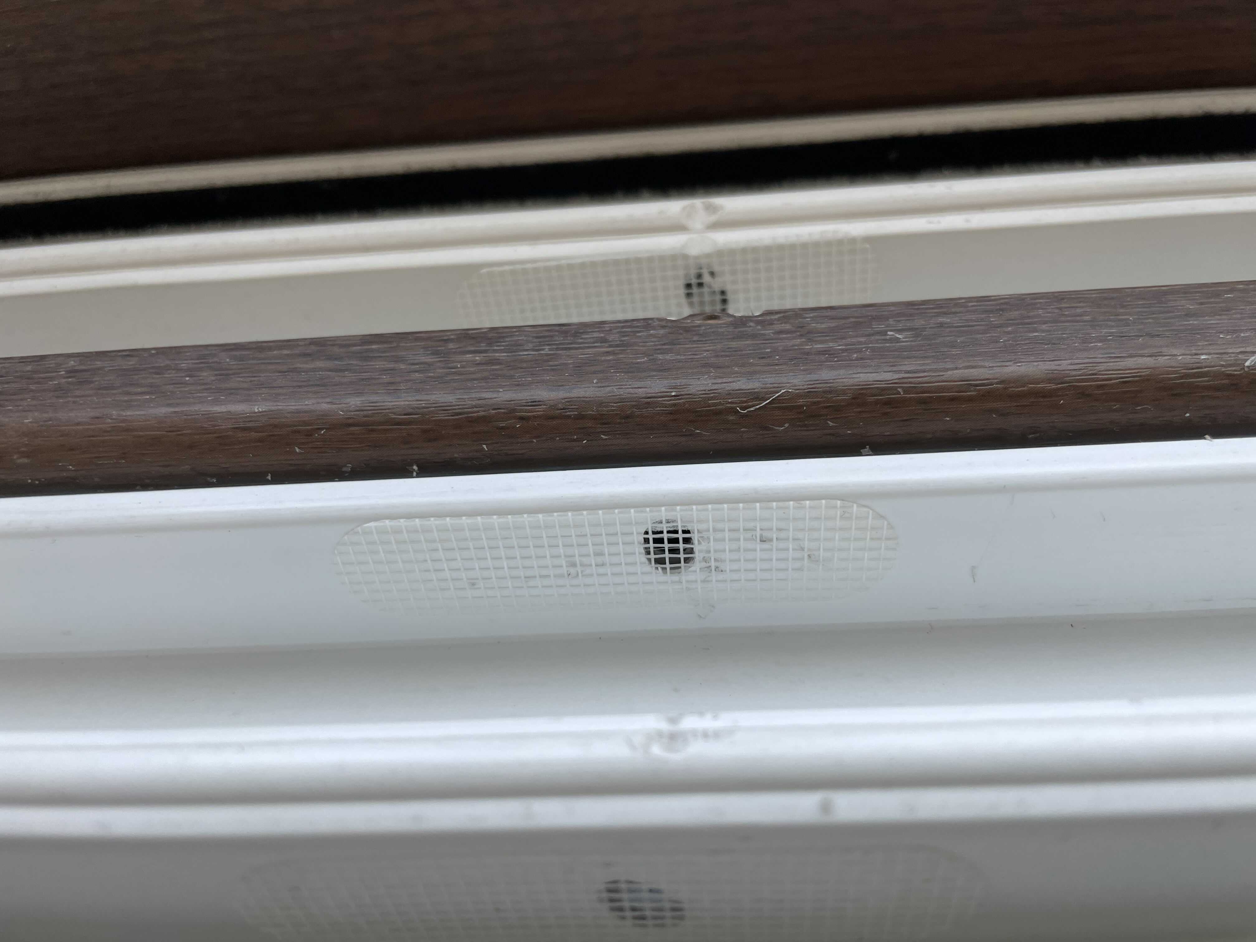 창틀 사이사이 난 물구멍을 미니 방충망으로 막아준다.