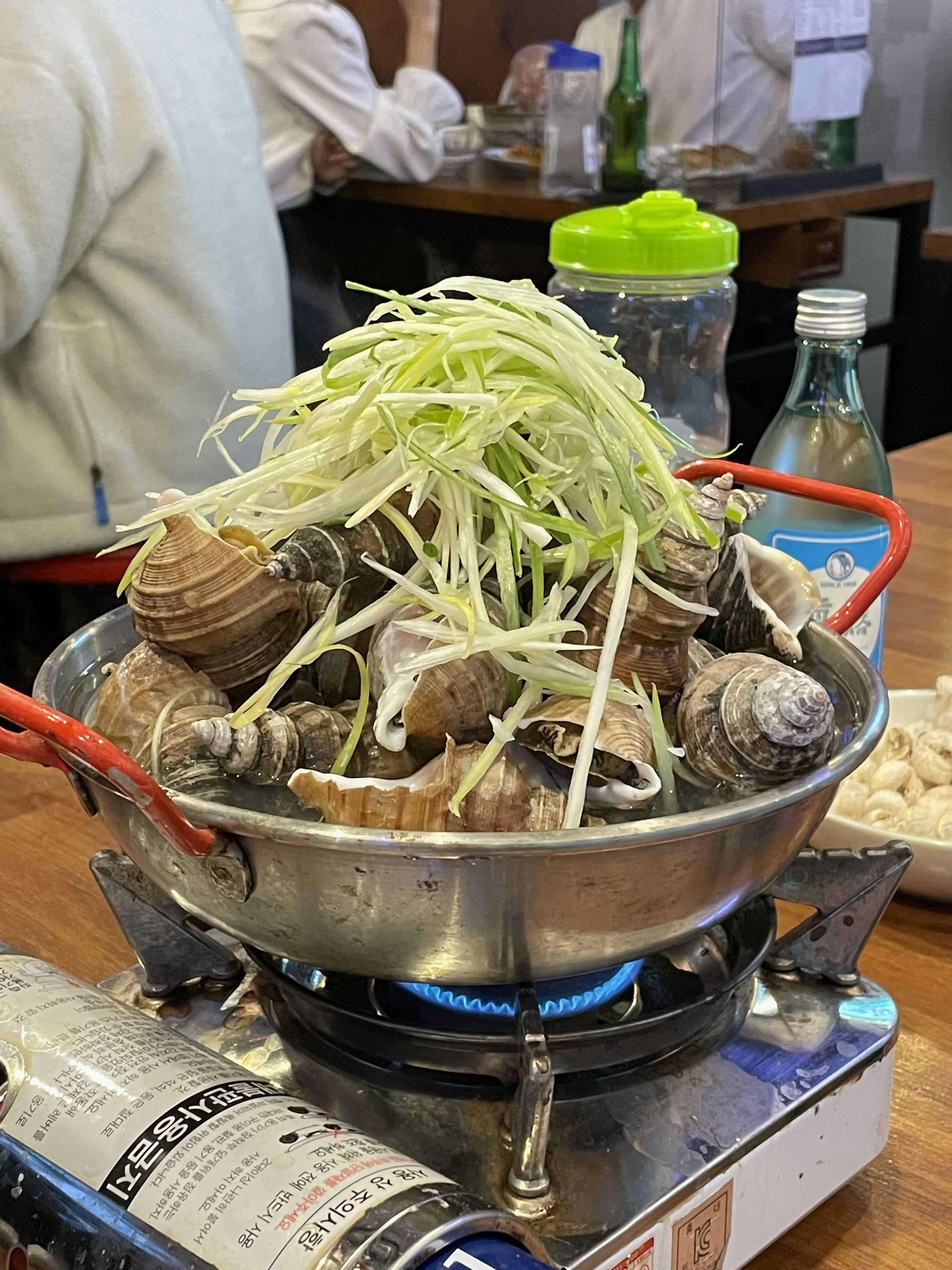 골뱅이 찜에 있는 궁물은 먹지 말라고 하셔가지고, 따로 시킨 조개탕.