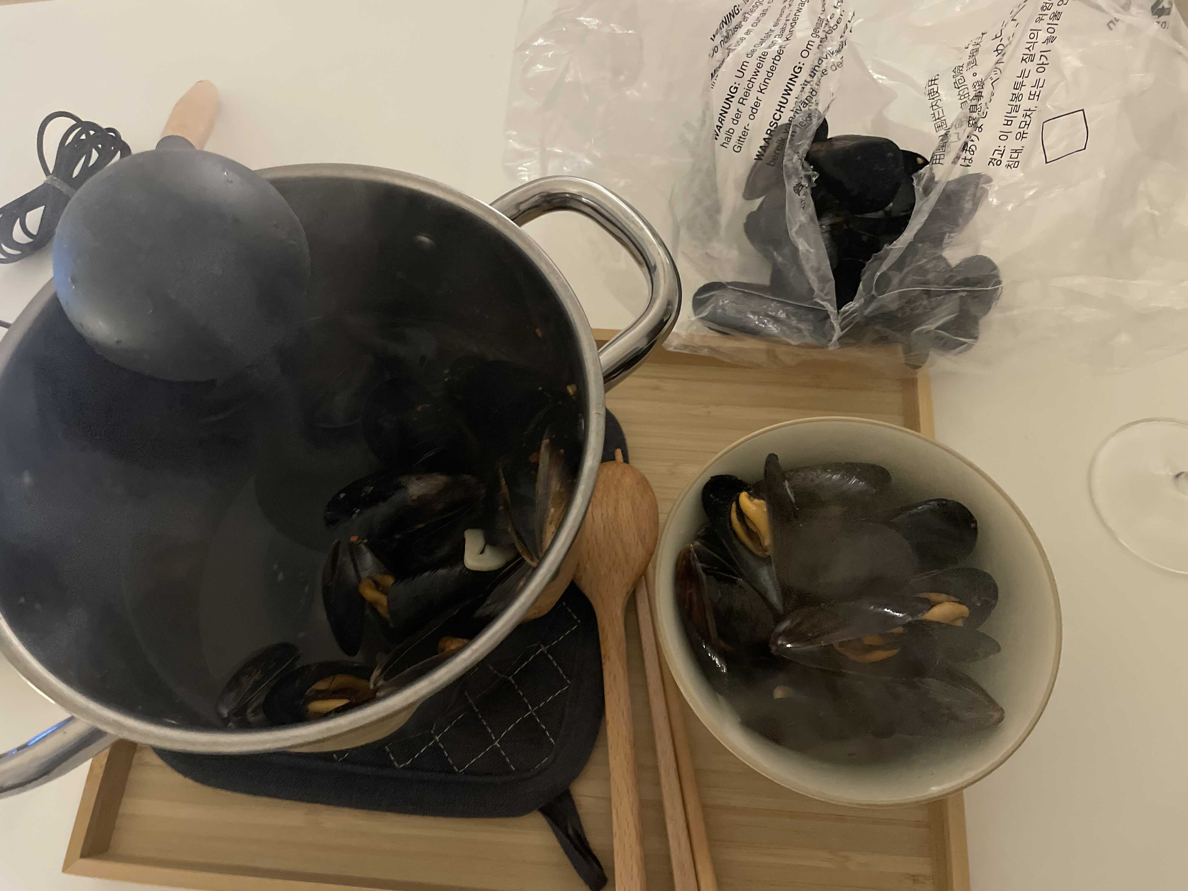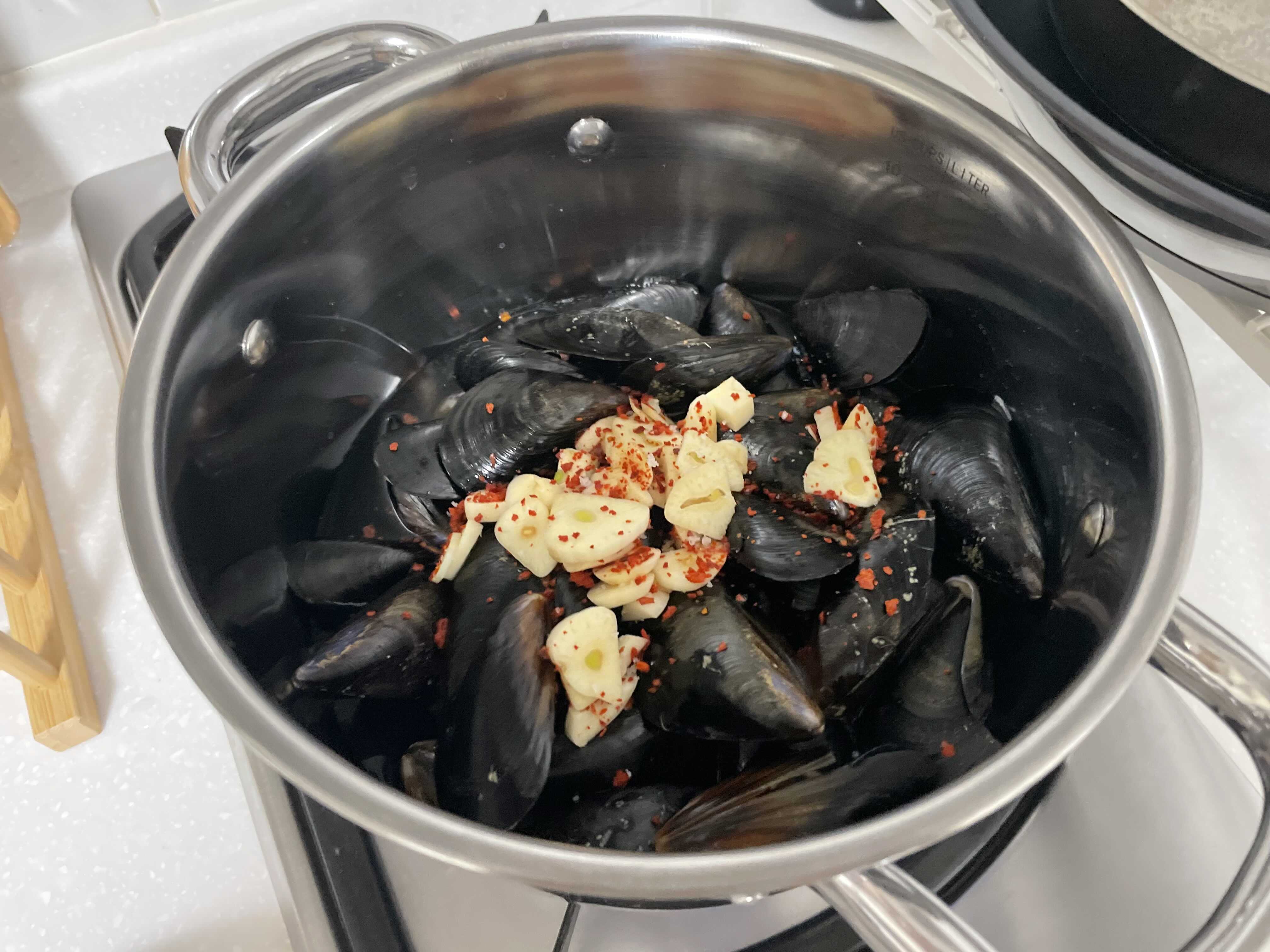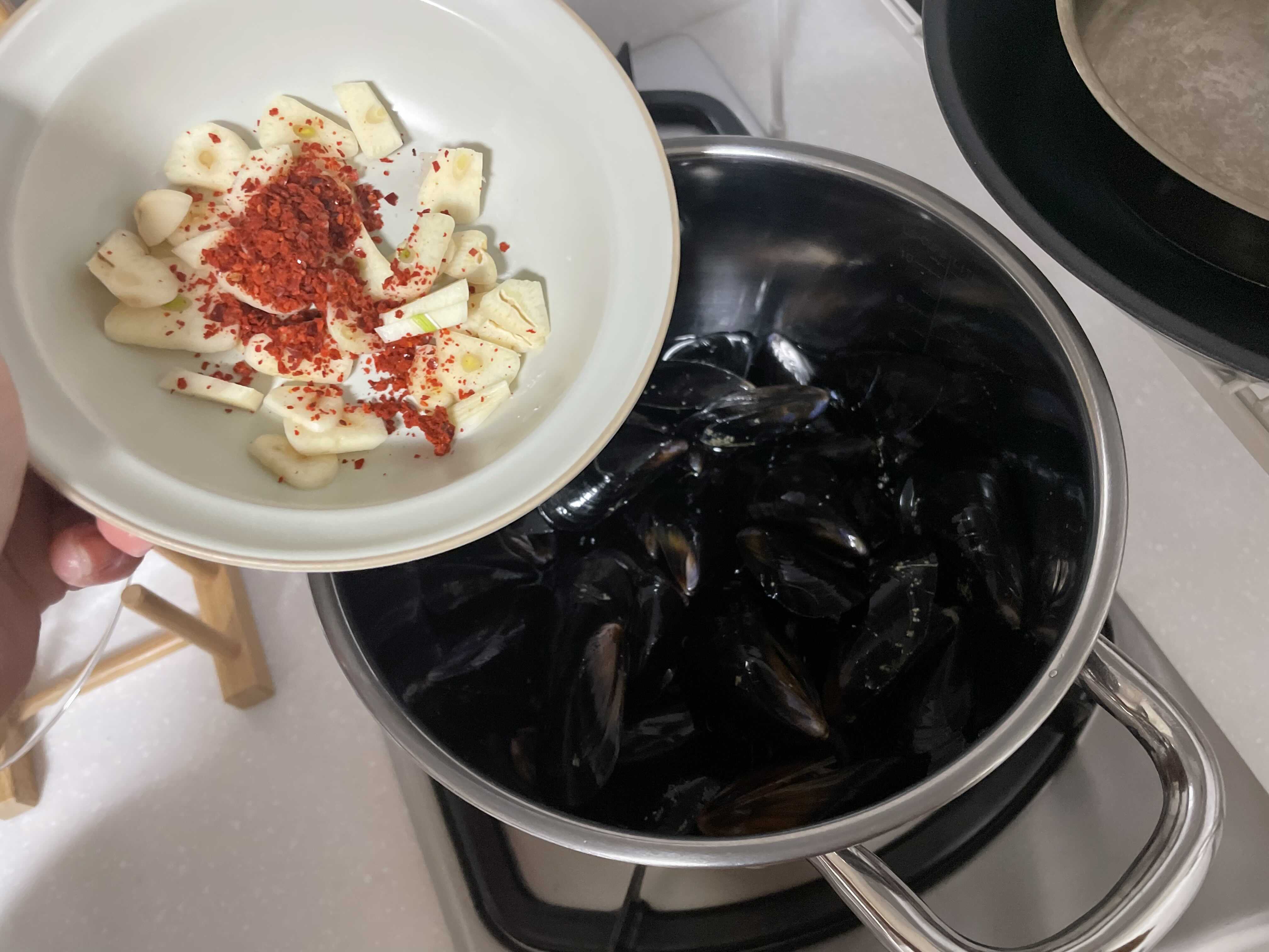 너무 많이 끓이면 홍합이 넘 찔겨지니까