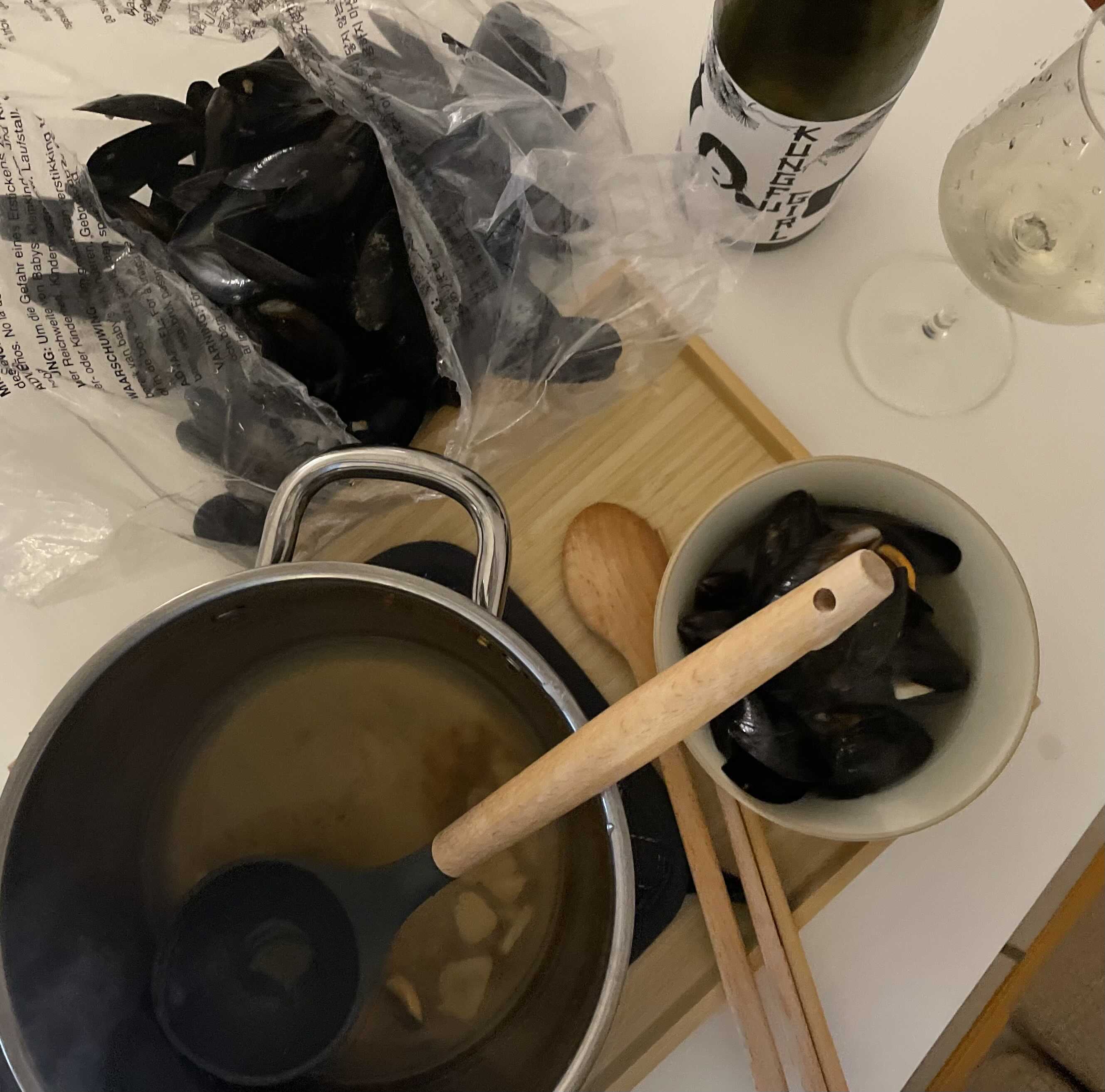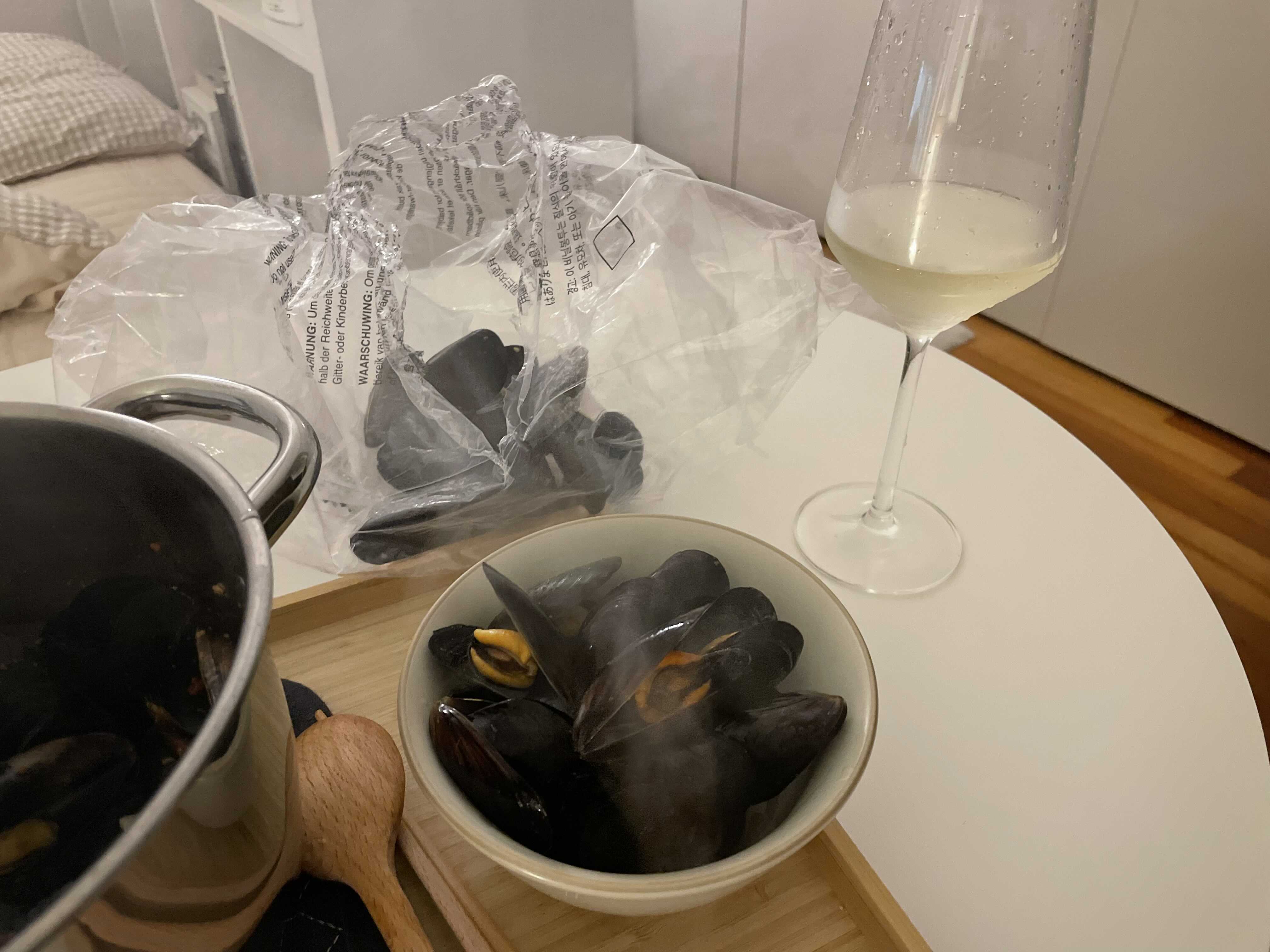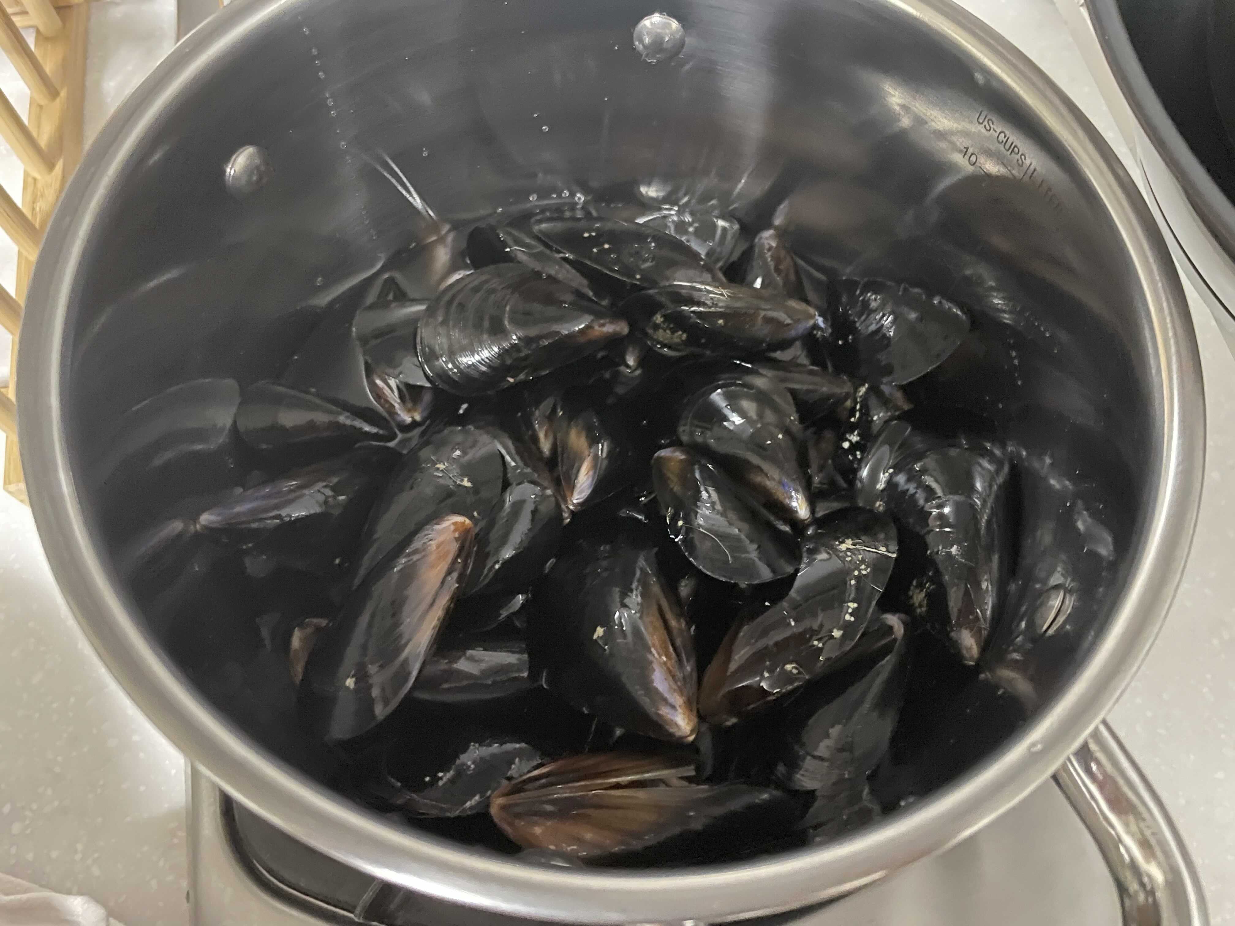 너무 많이 끓이면 홍합이 넘 찔겨지니까