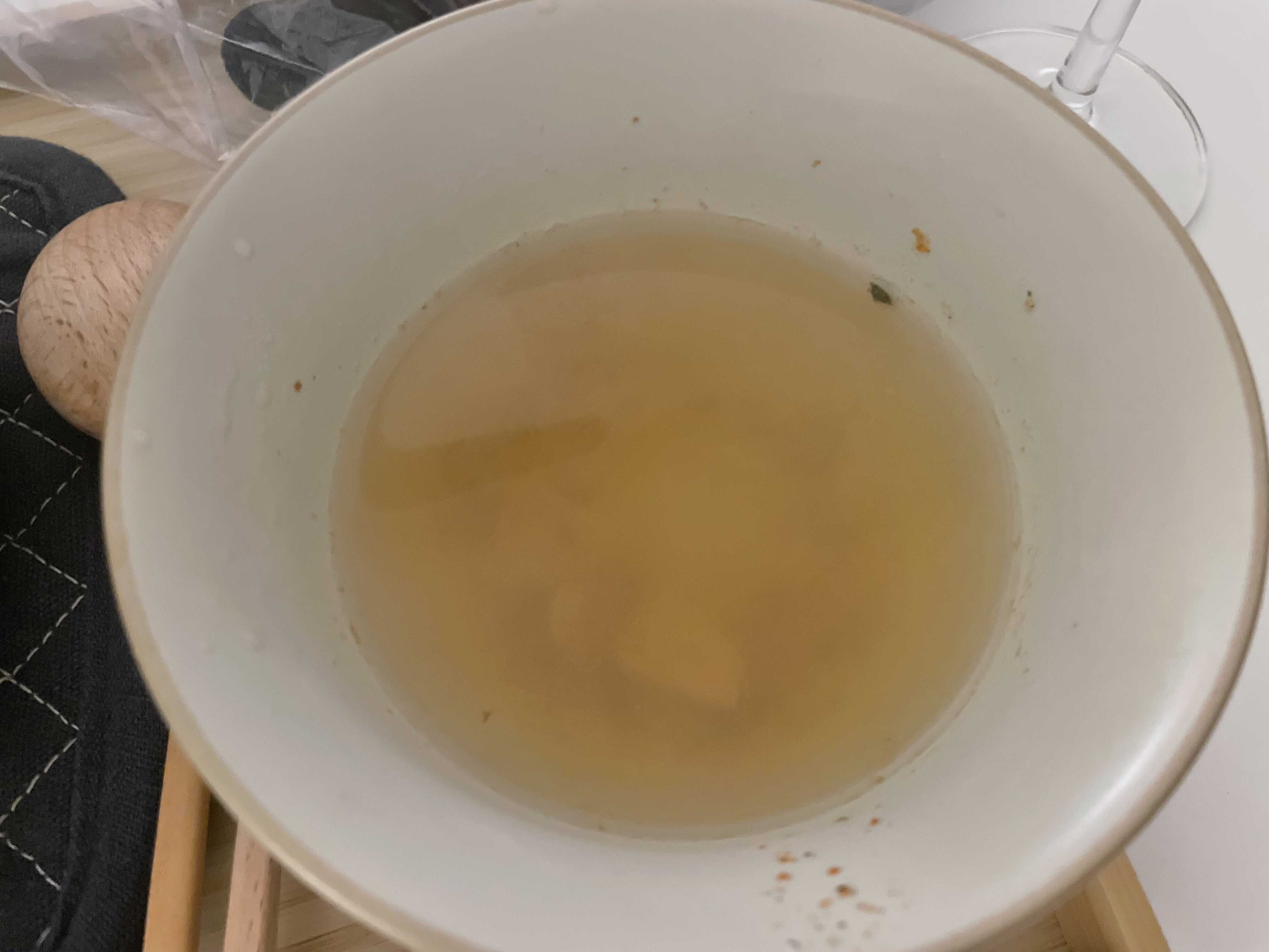 화이트와인 적당히 넣어주고 팔팔팔 더 끓여준다