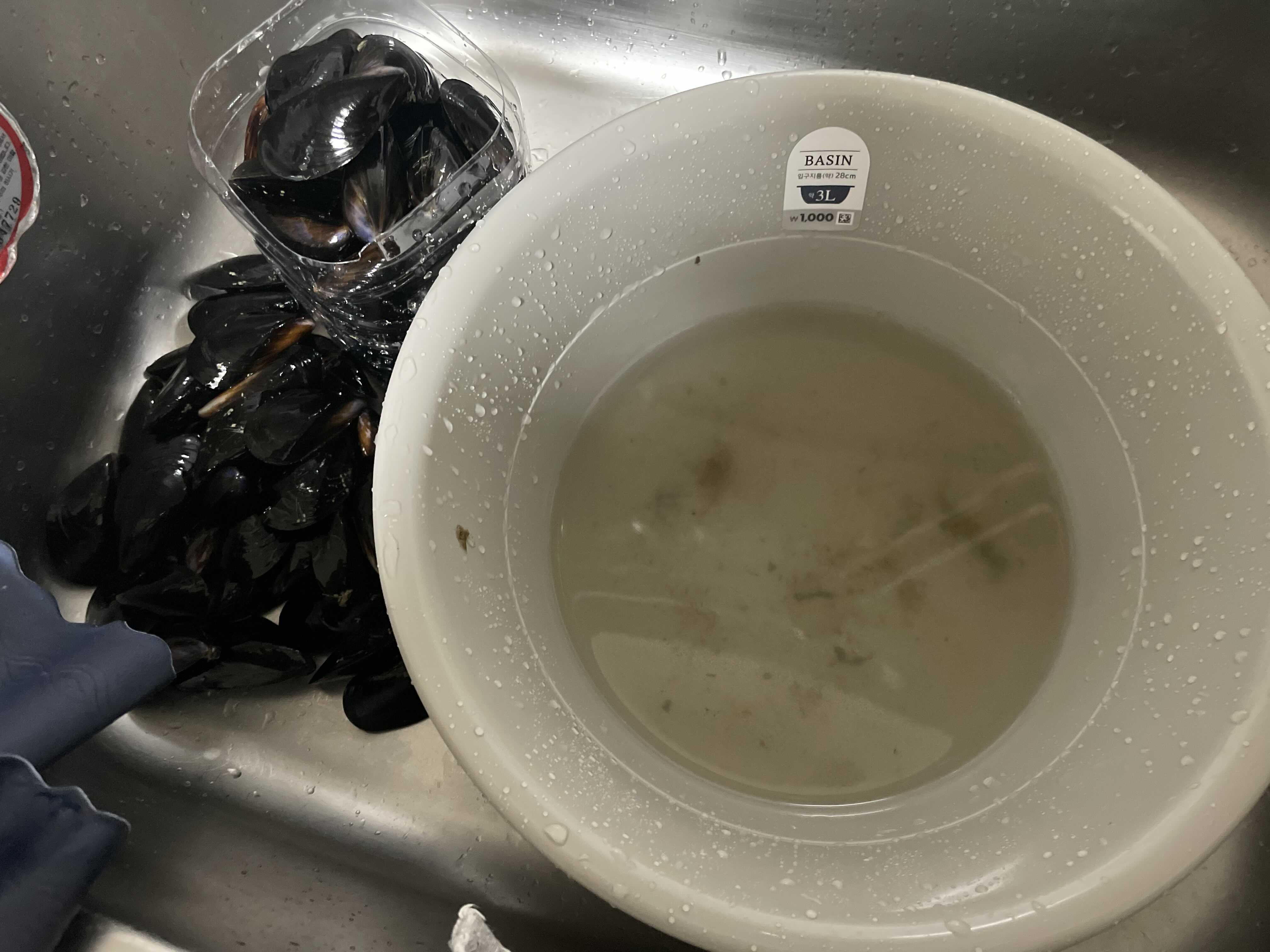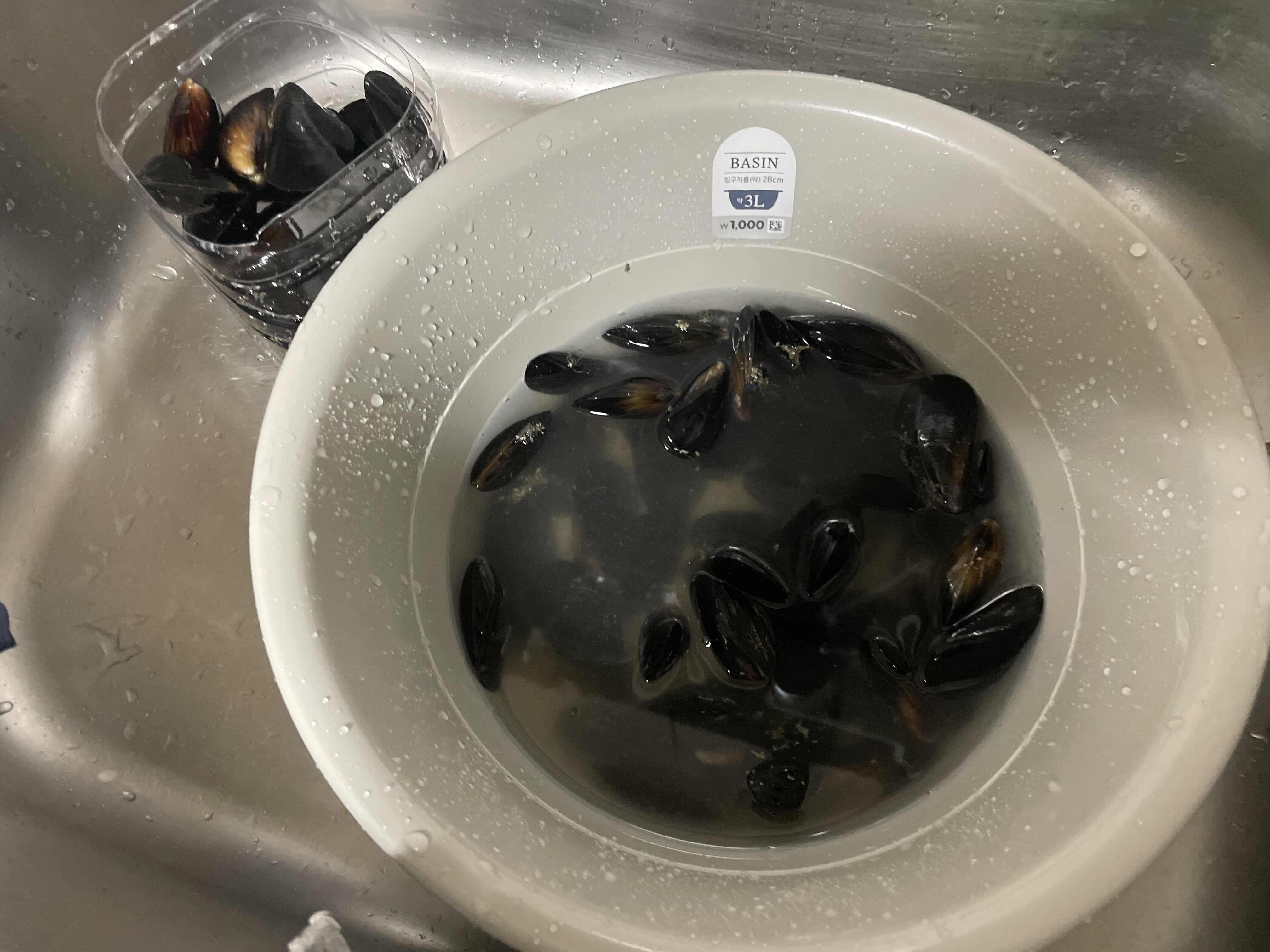 홍합쓰를 박박 닦아주고 솔로 한번 슬슬슬 대충해주고