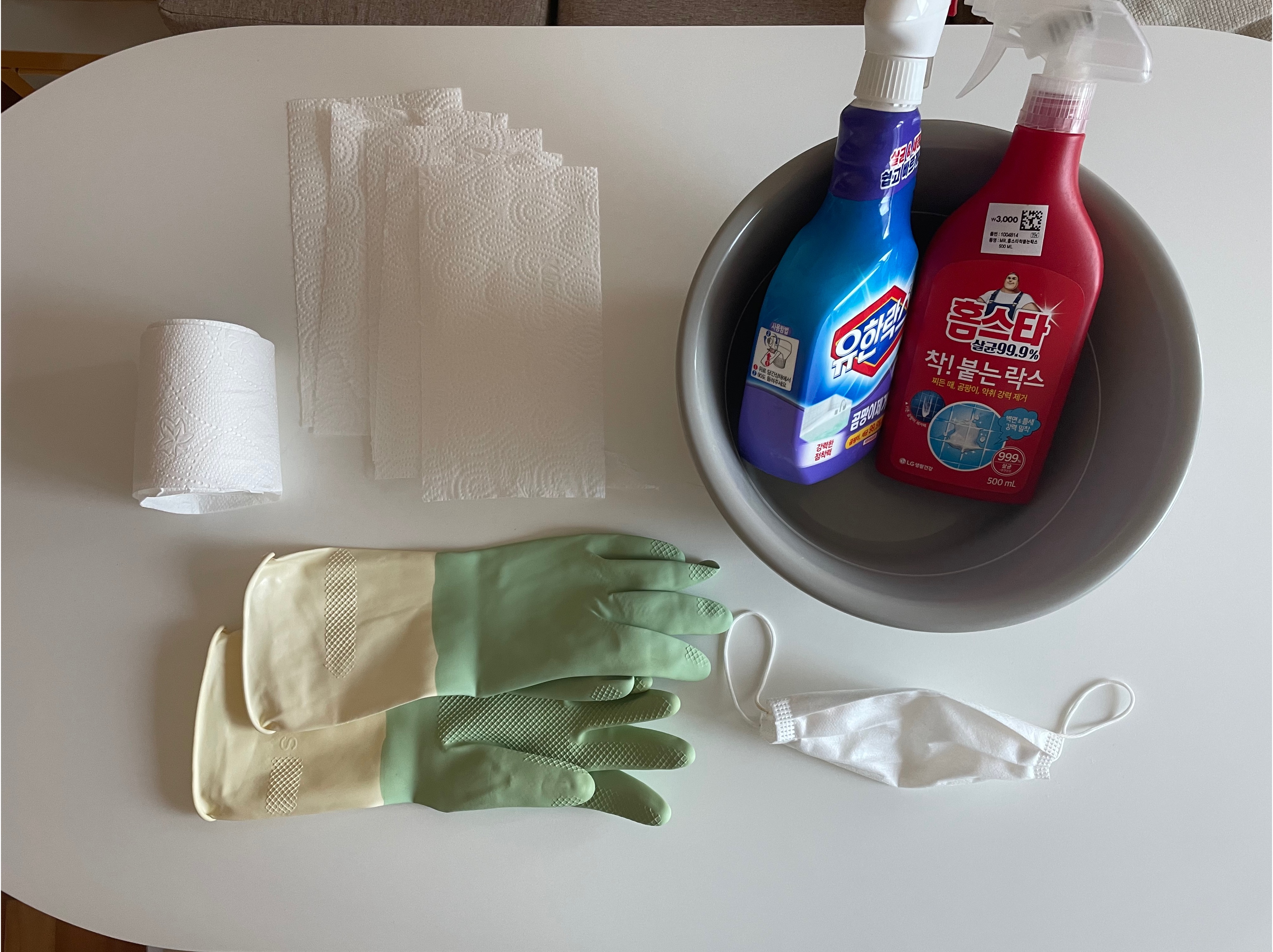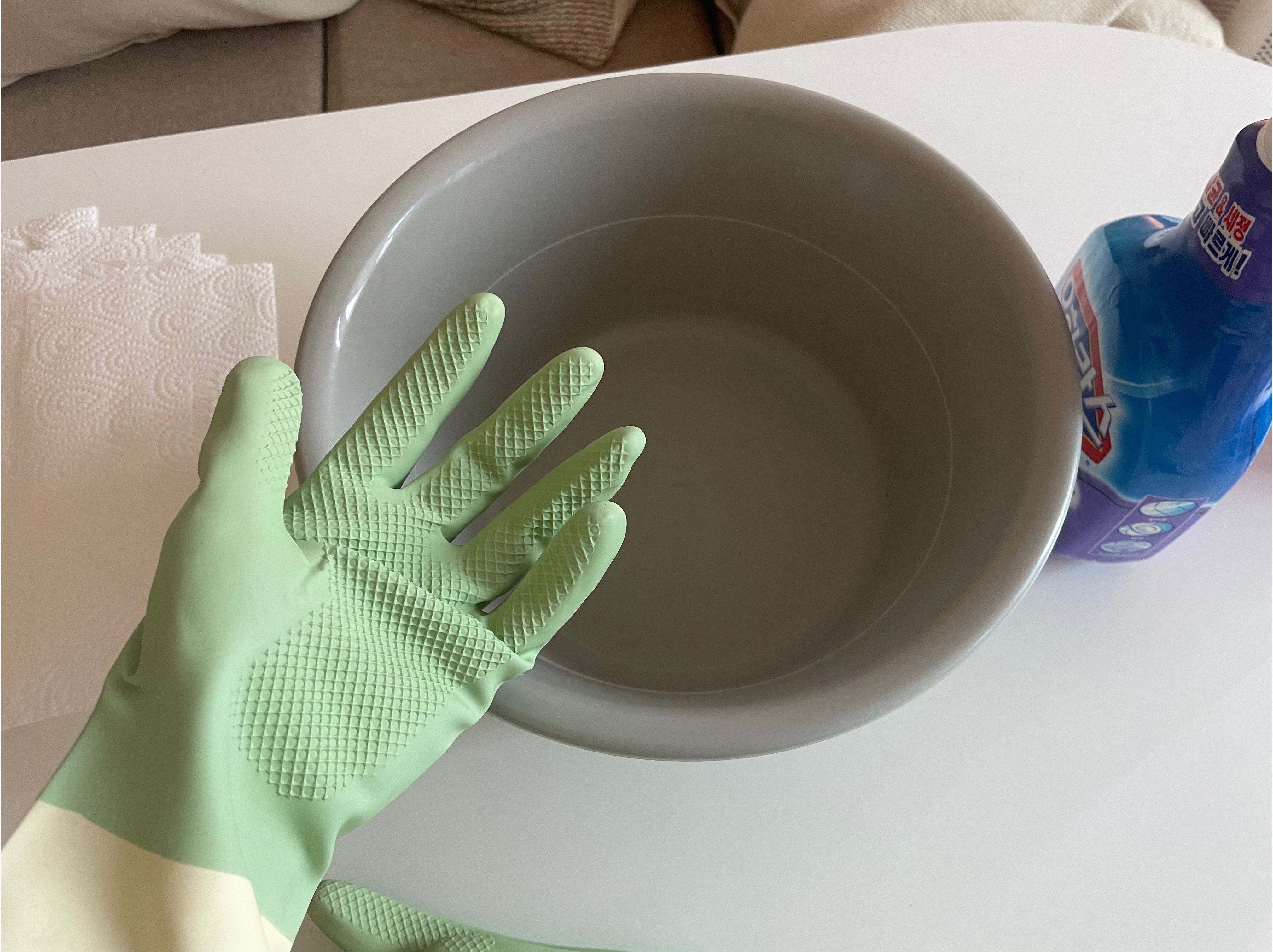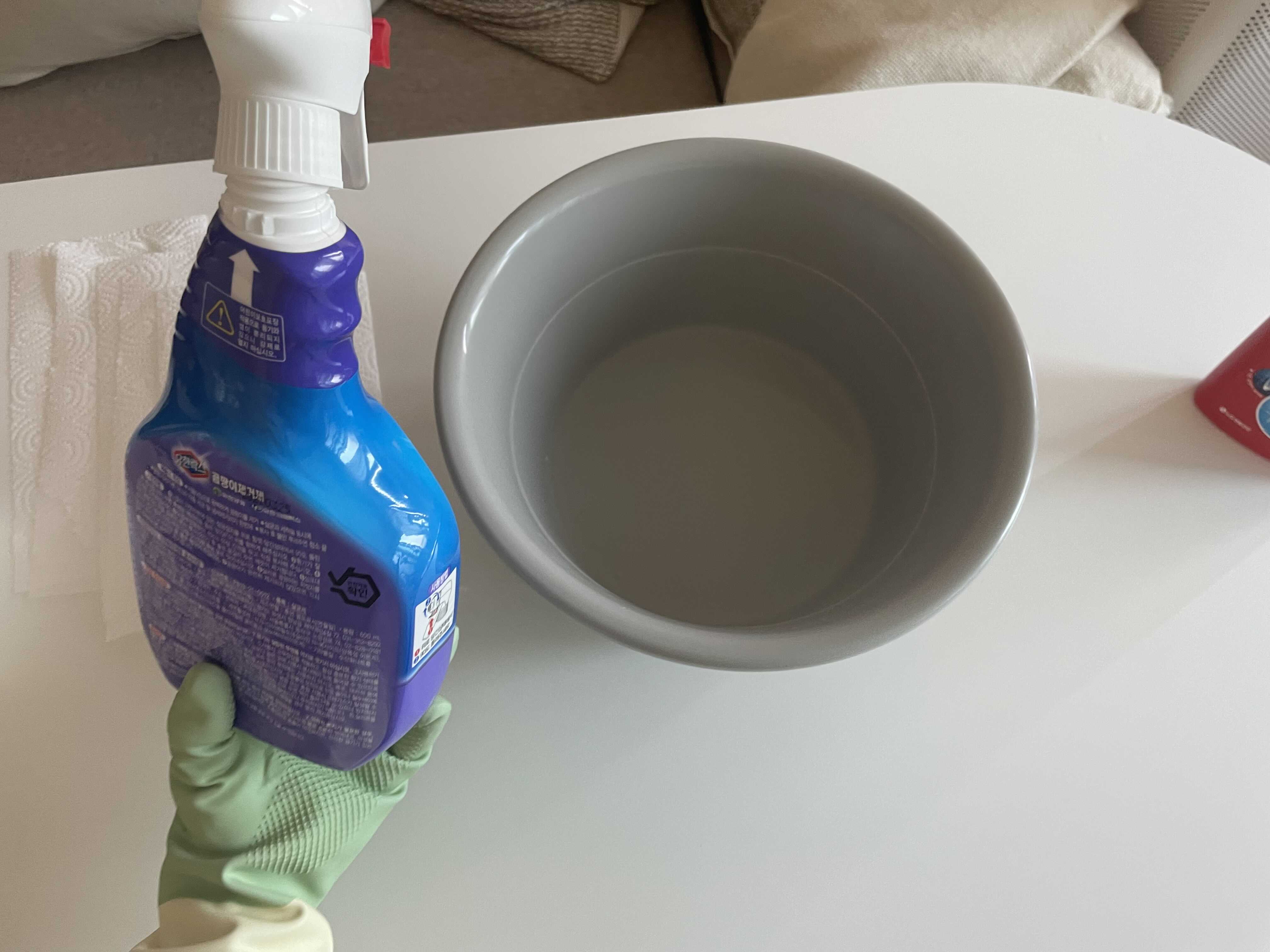 일단 유한락스 곰팡이제거제 액을 고무다라이에 좀 부어둔다