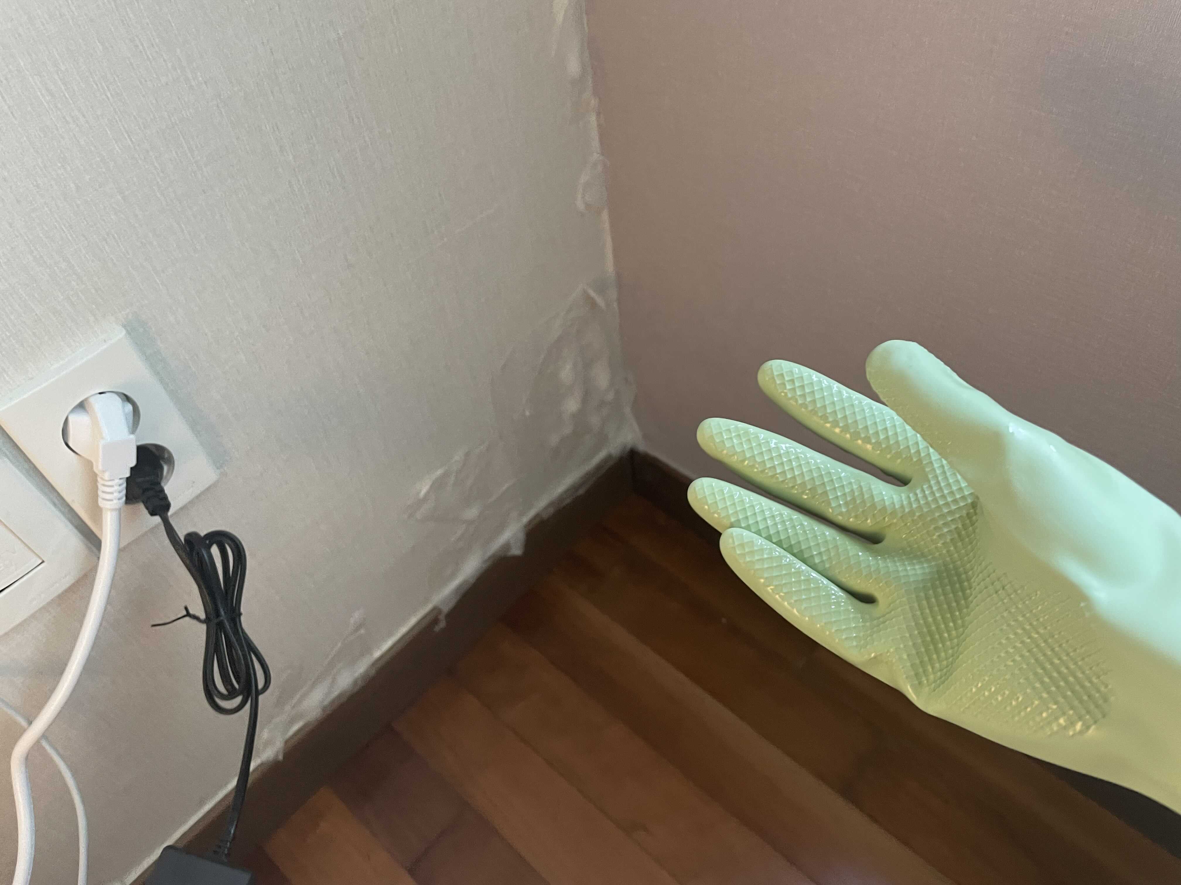 휴지를 제거하고 나서는, 물걸래로 벽지부분을 깨끗이 닦아준다