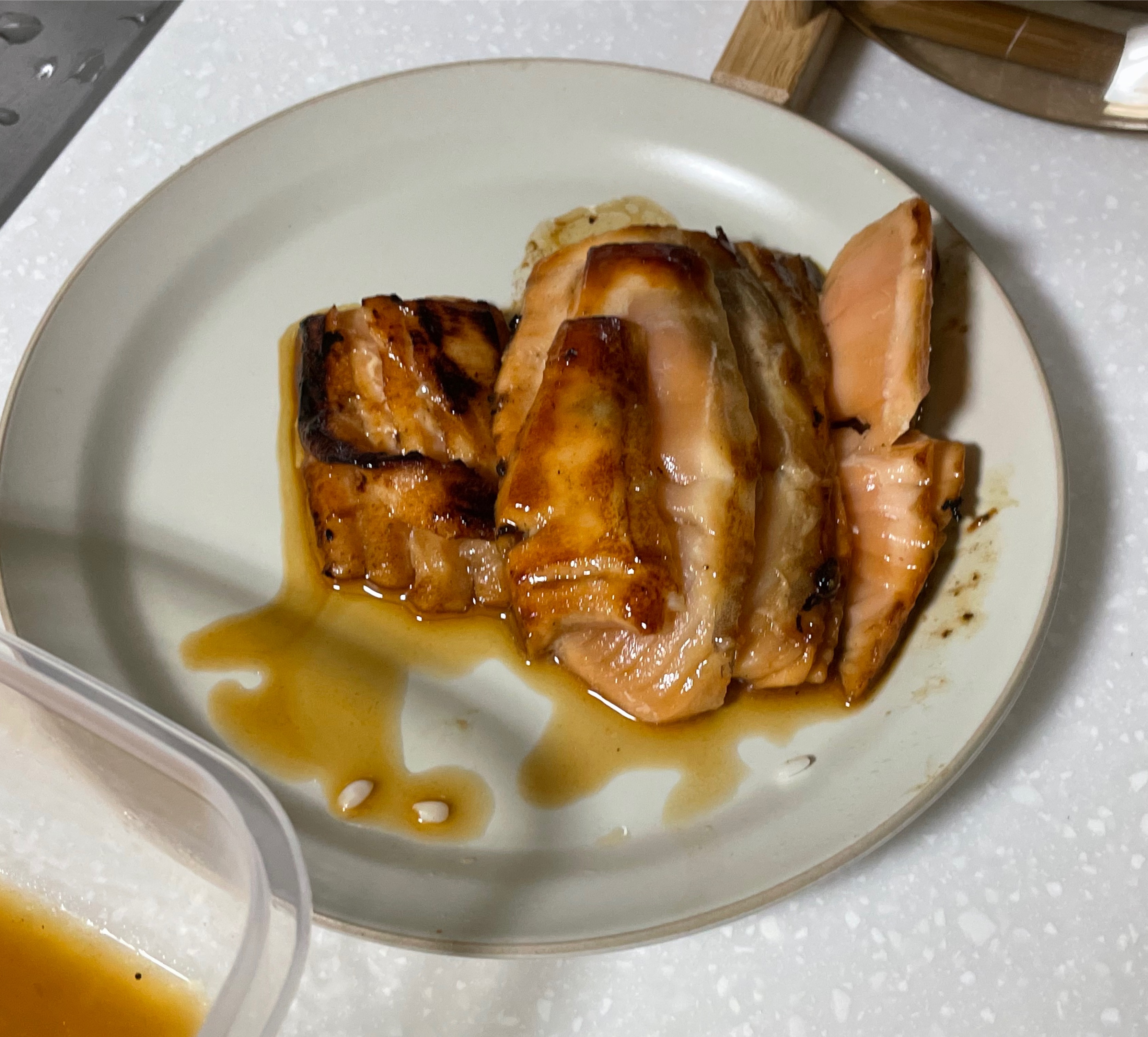 7. 소스 절인 연어는 프라이팬에 살짝 구워주고 대기
