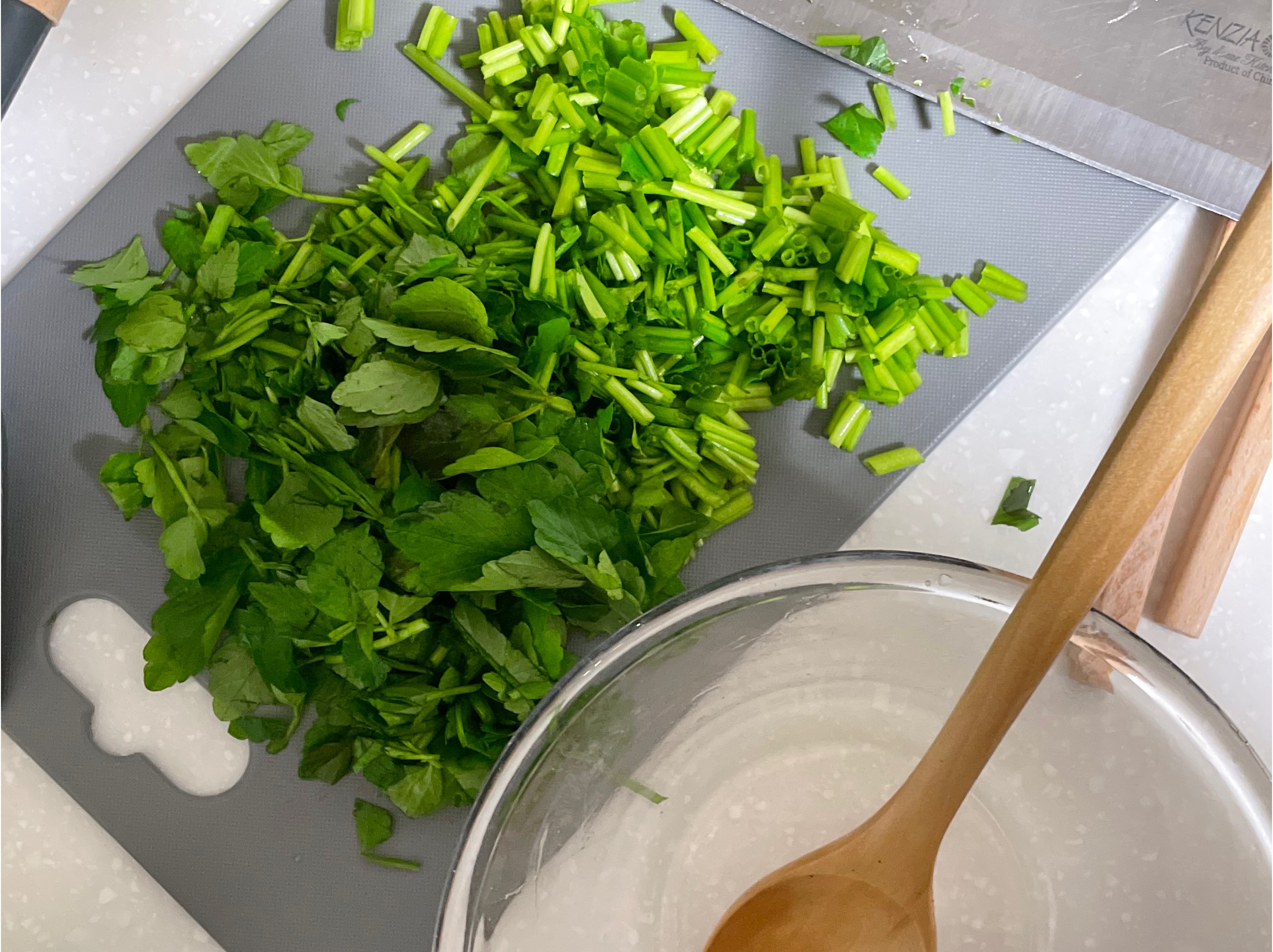미나리를 아주 잘게 썰어준다.