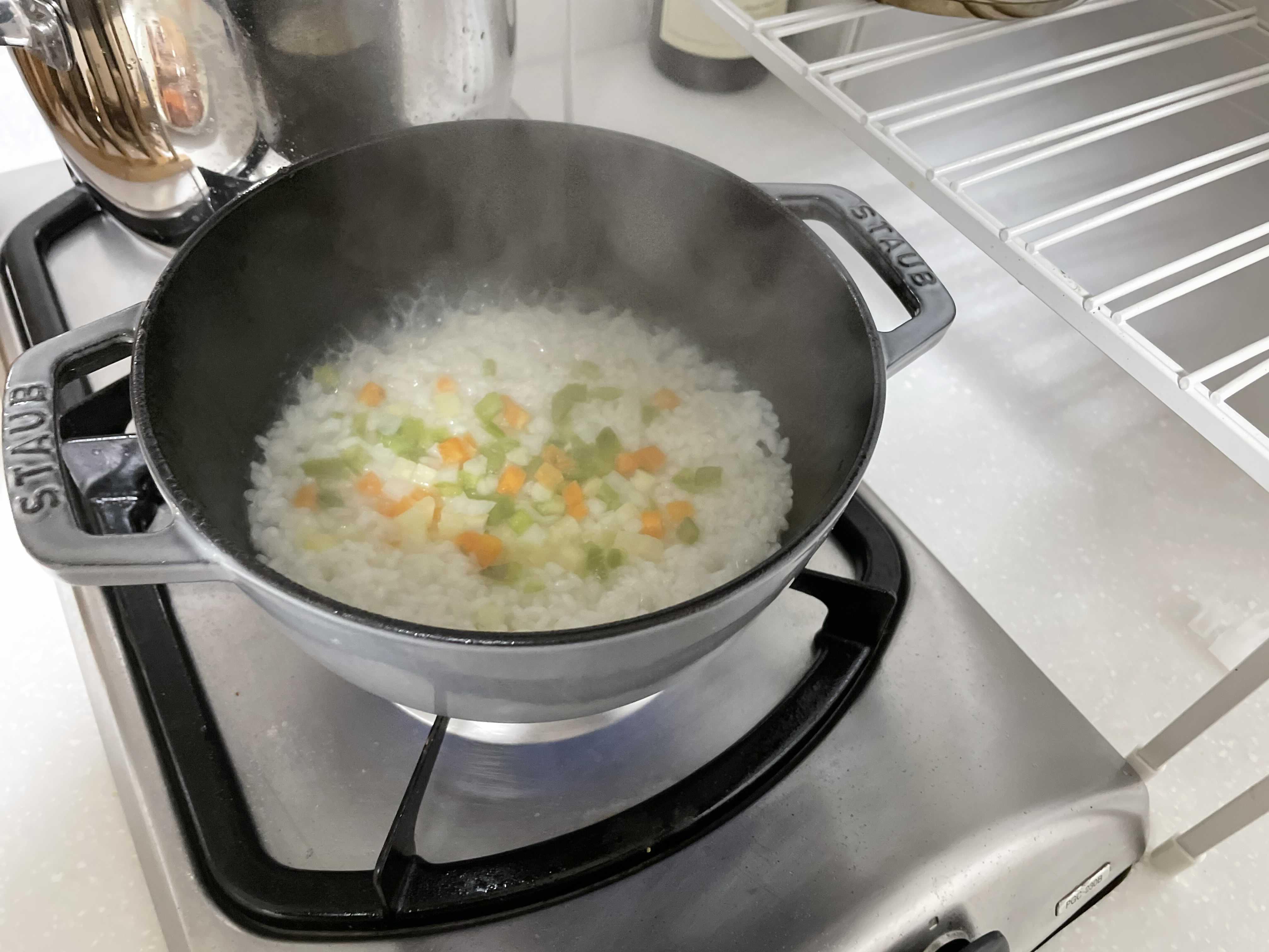 8. 쌀이 끓기 시작하면 쌀을 한번 휘젛고,