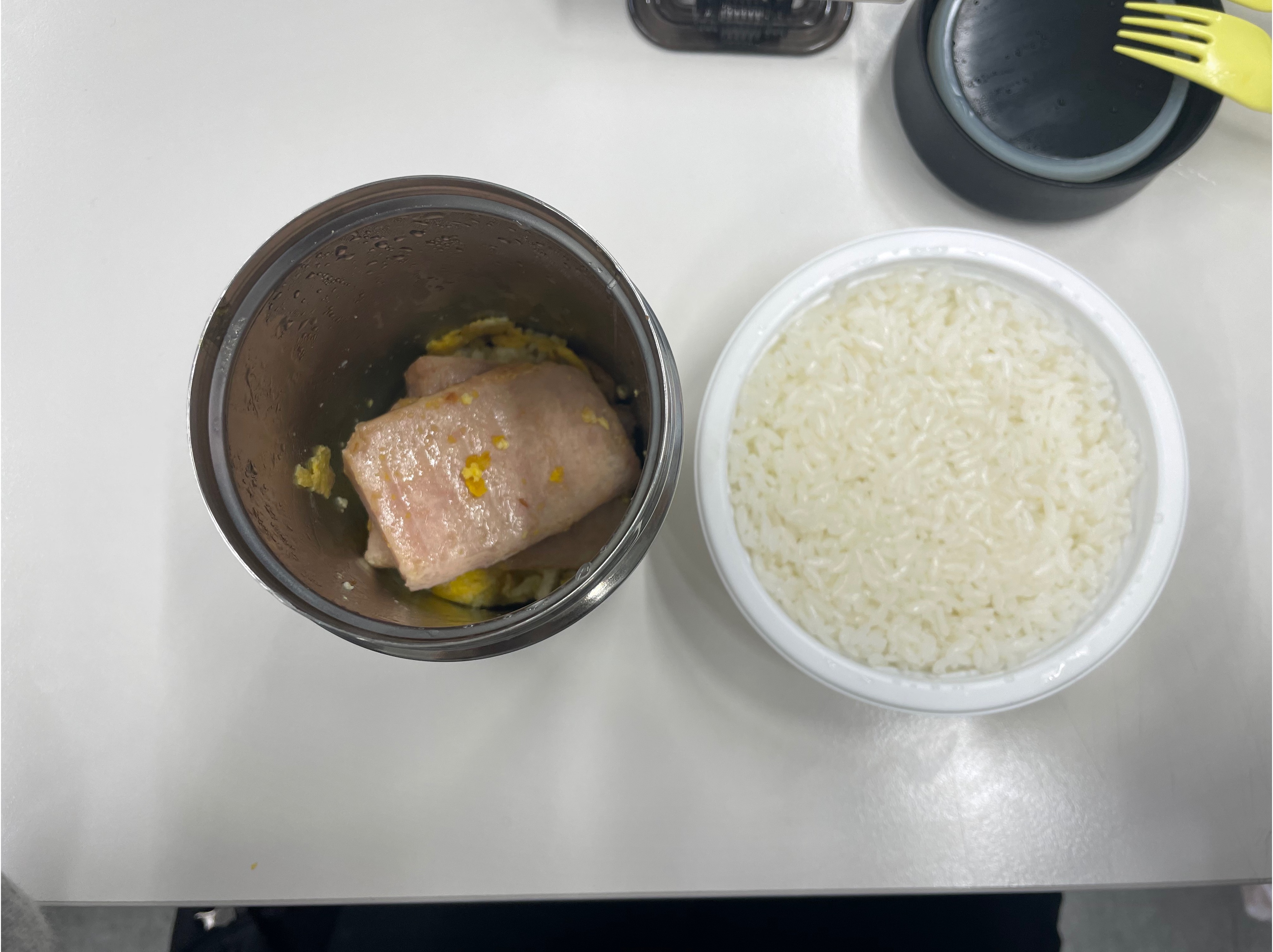 나는 막 졸린 눈 비비면서 스팸굽고 계란굽고