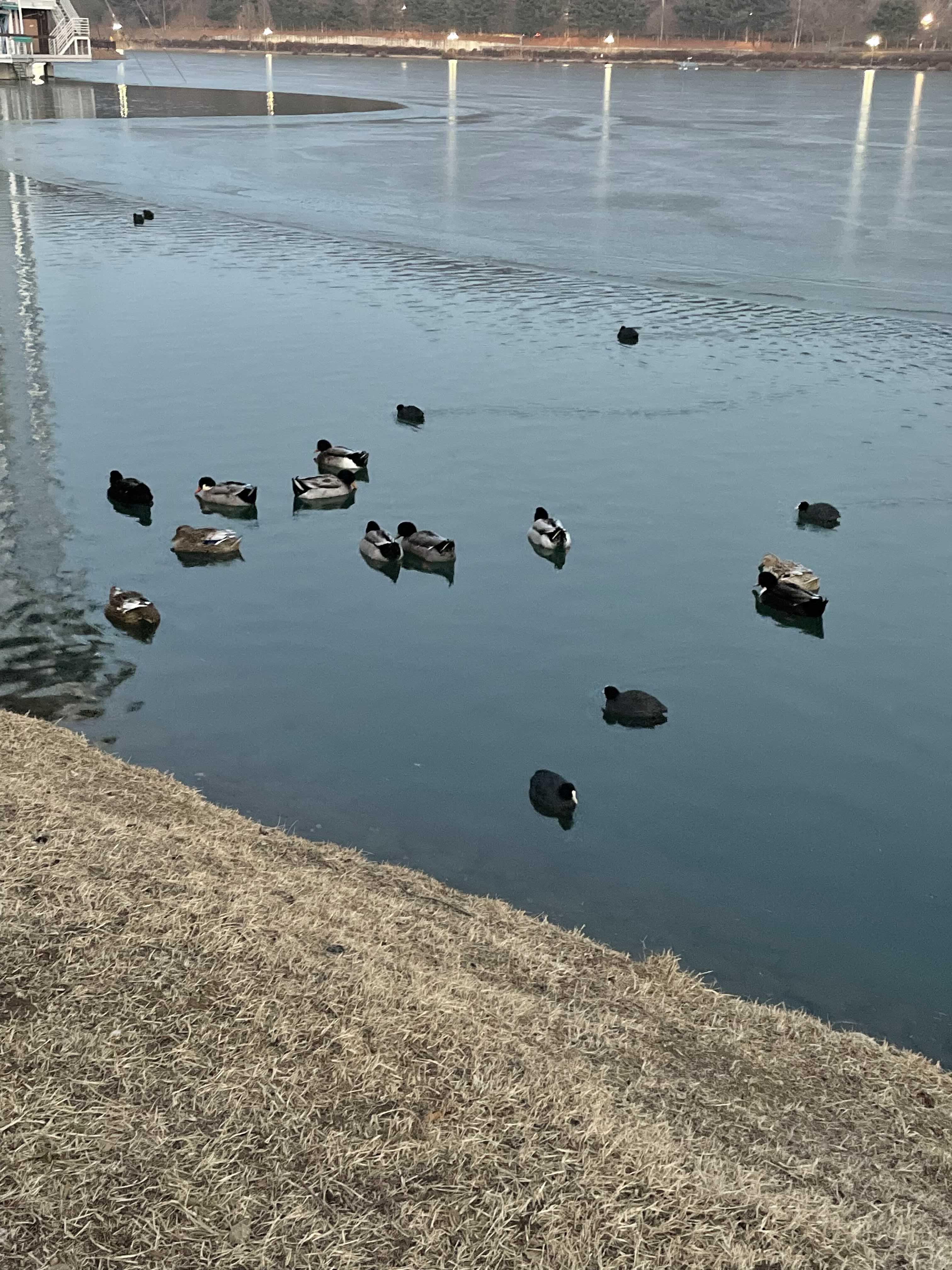 공원의 귀여운 오리들