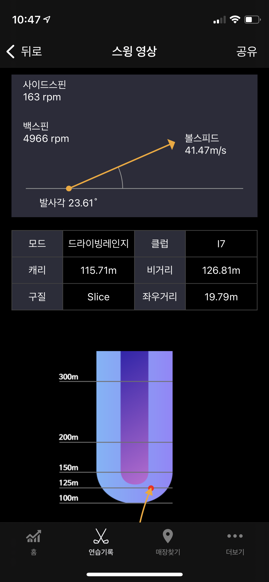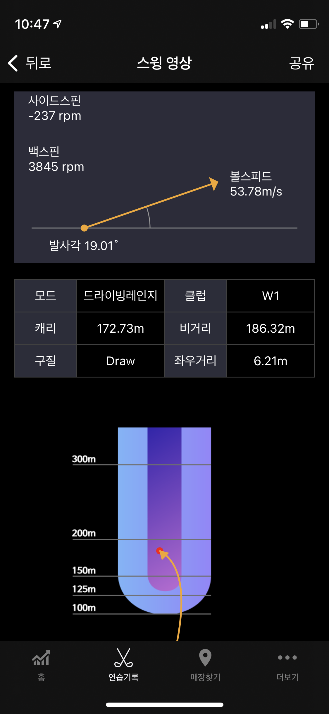 오늘 스크린연습장에서 186m가 나왔다...