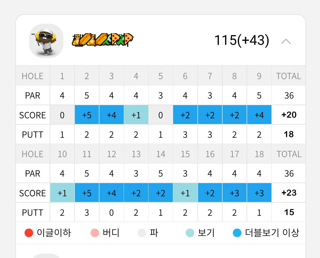 그렇게 나의 첫 기록은 115타가 되었다