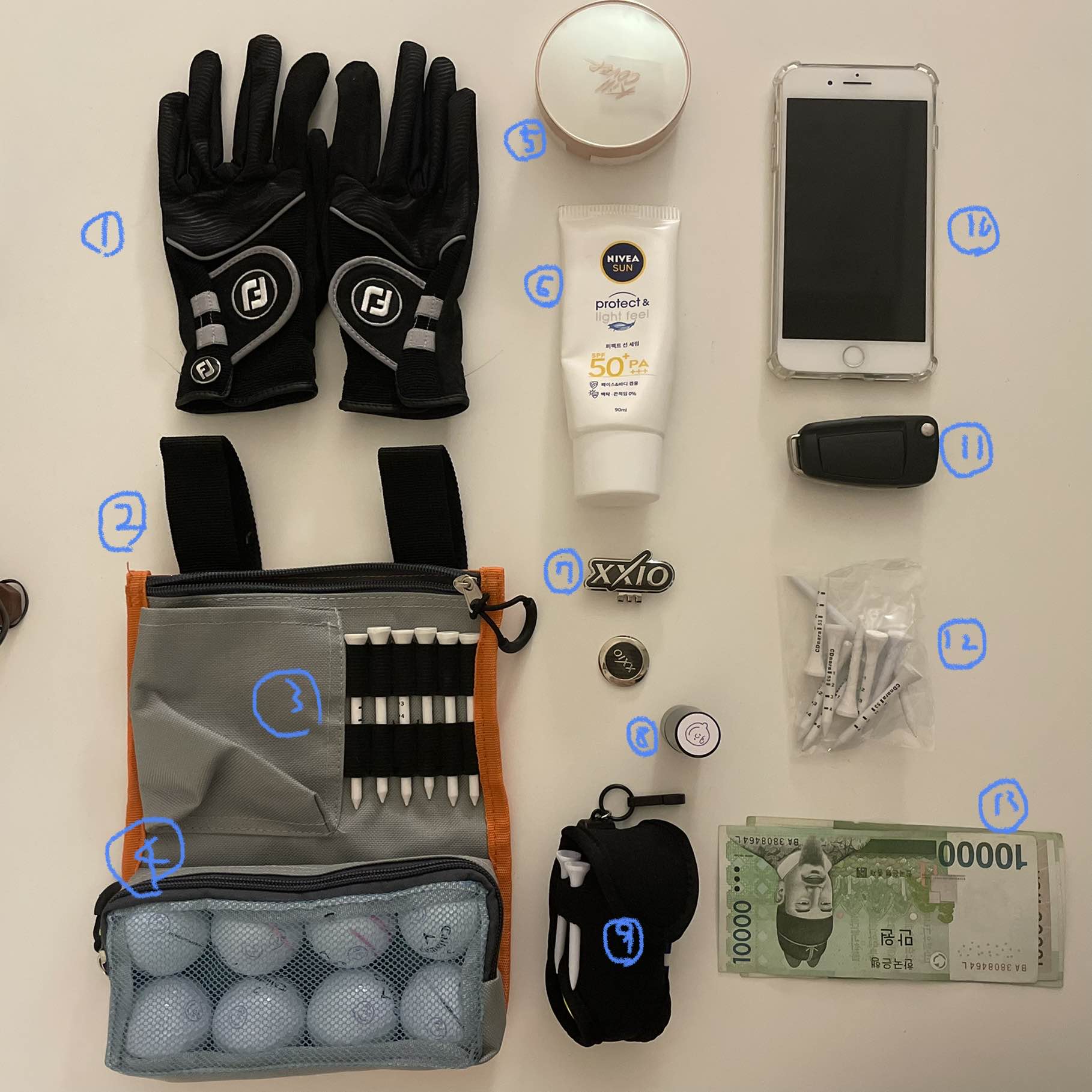 2. 골프파우치에 차키랑 현금 꼭 챙기기