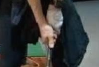 채를 내 머리 바로 옆쪽까지 세워올렸다가 후려찍으라고