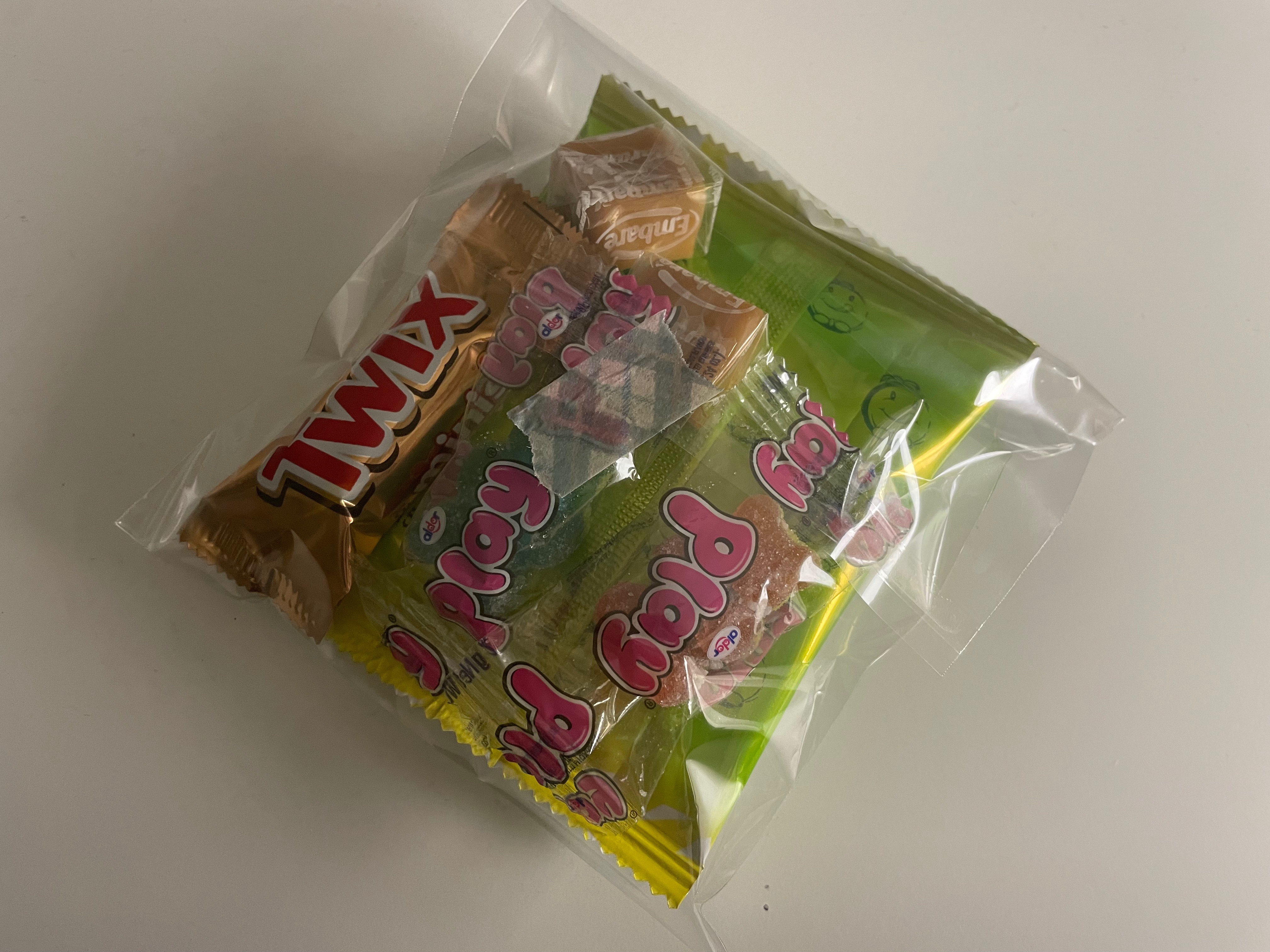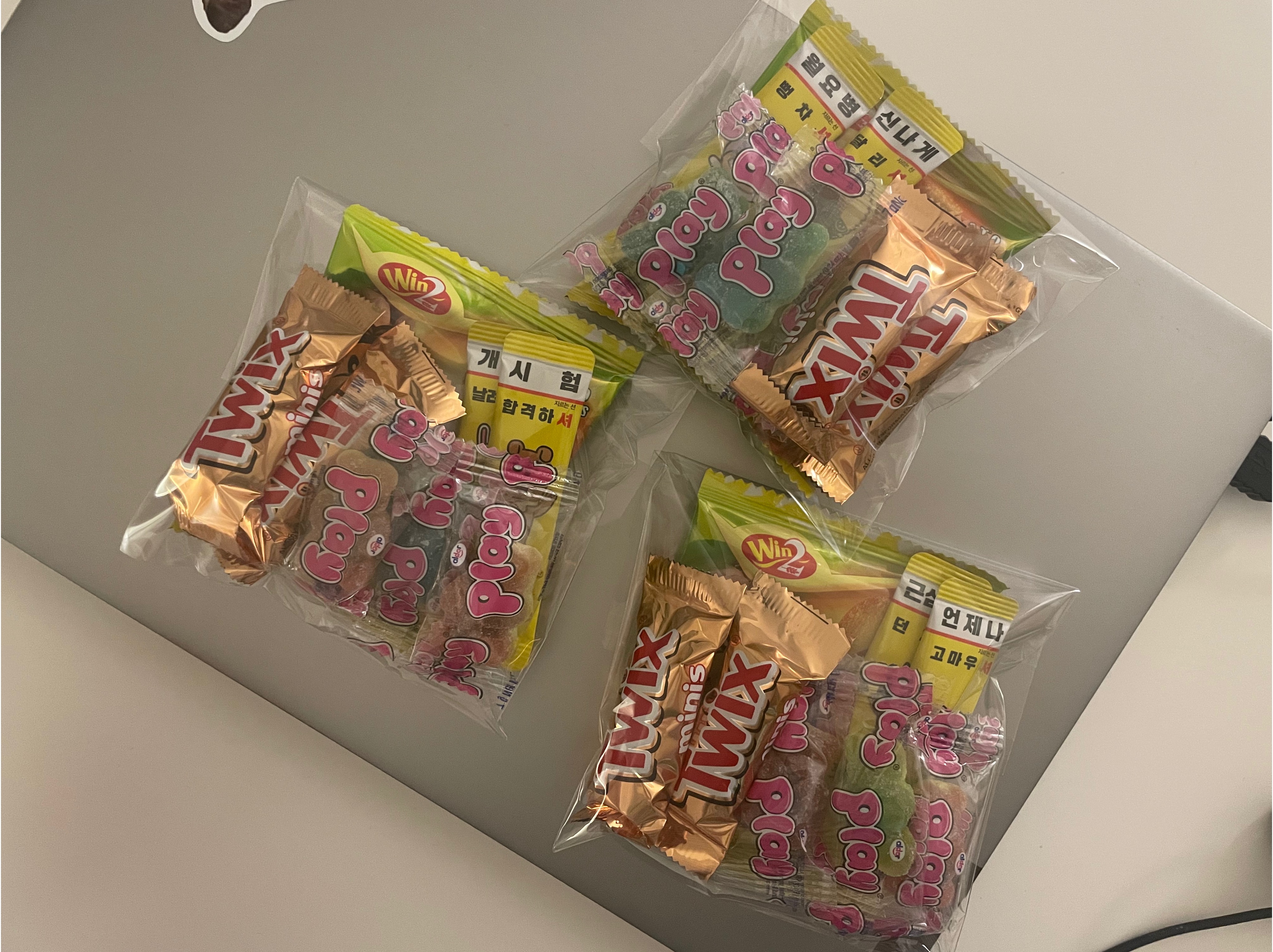플레이 곰젤리 2개, 감자과자 1개, 카라멜 2개