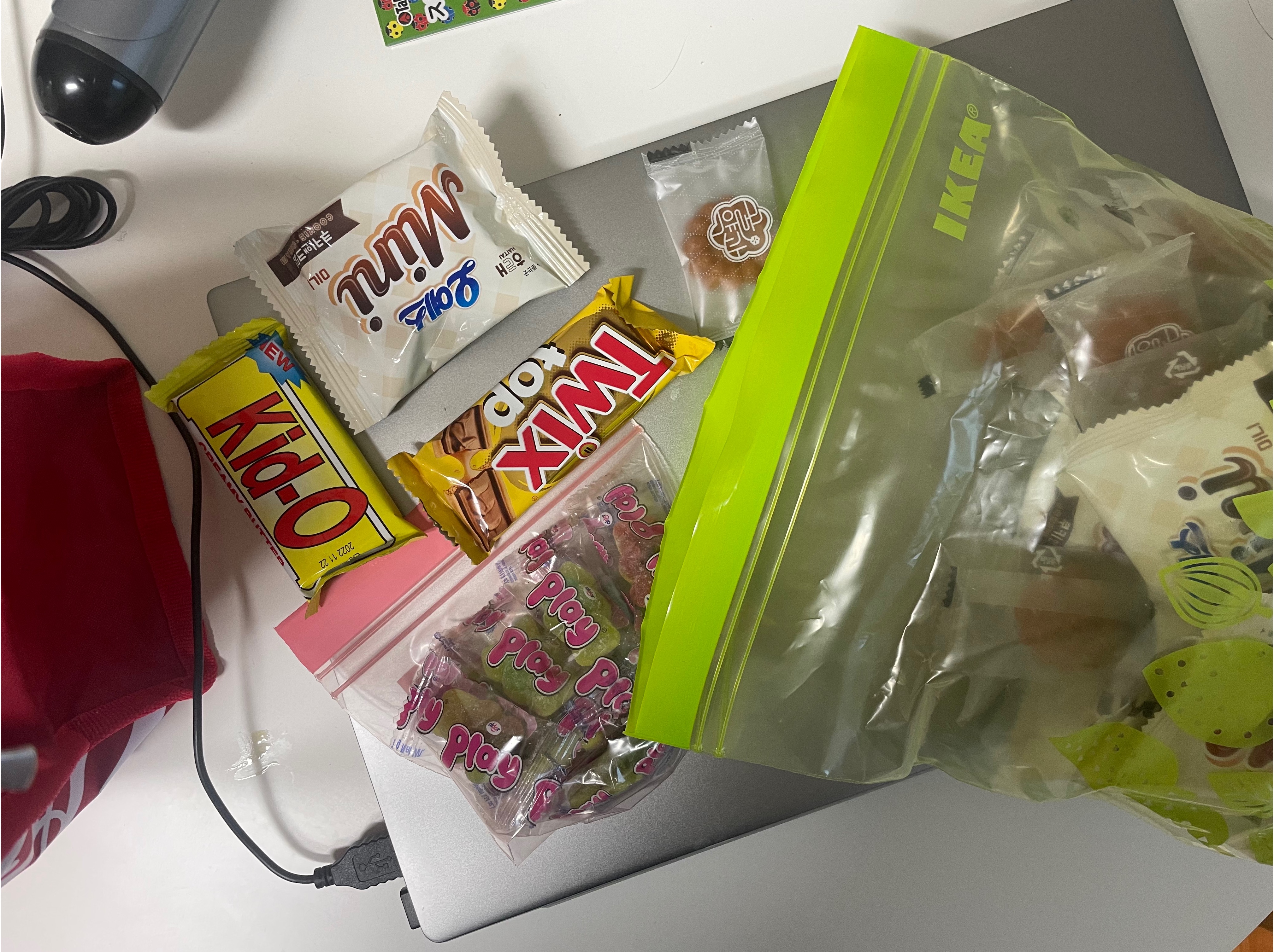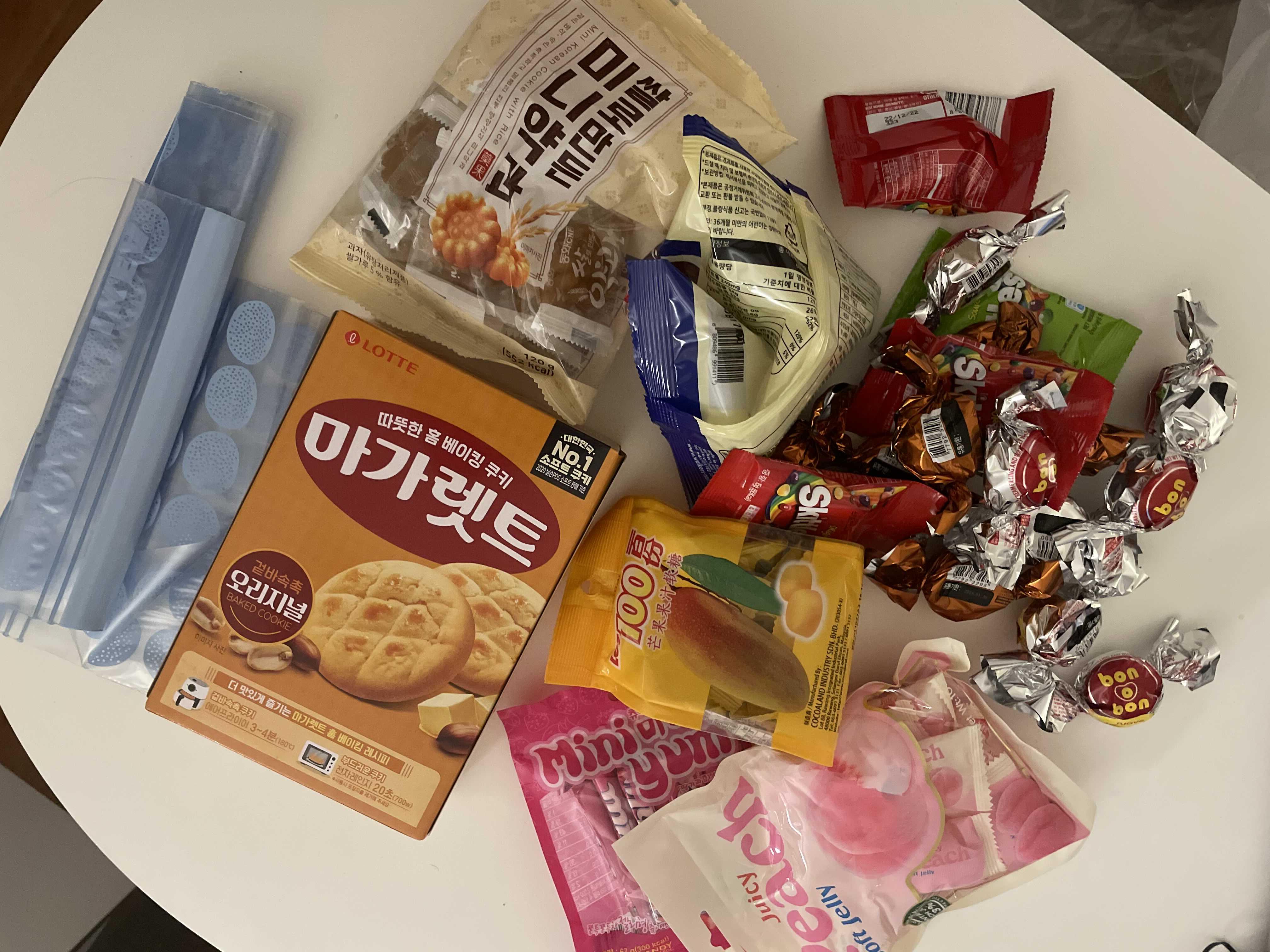 - 오예스초코파이류 한두개, 작은 초코바 몇개 젤리 몇개