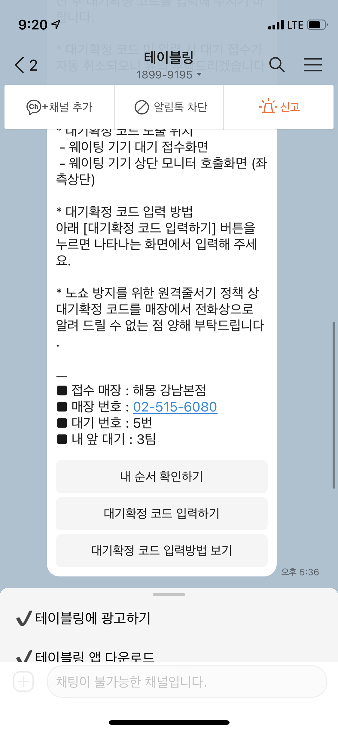 테이블링 웨이팅예약은 5시 반 부터 오픈된다.