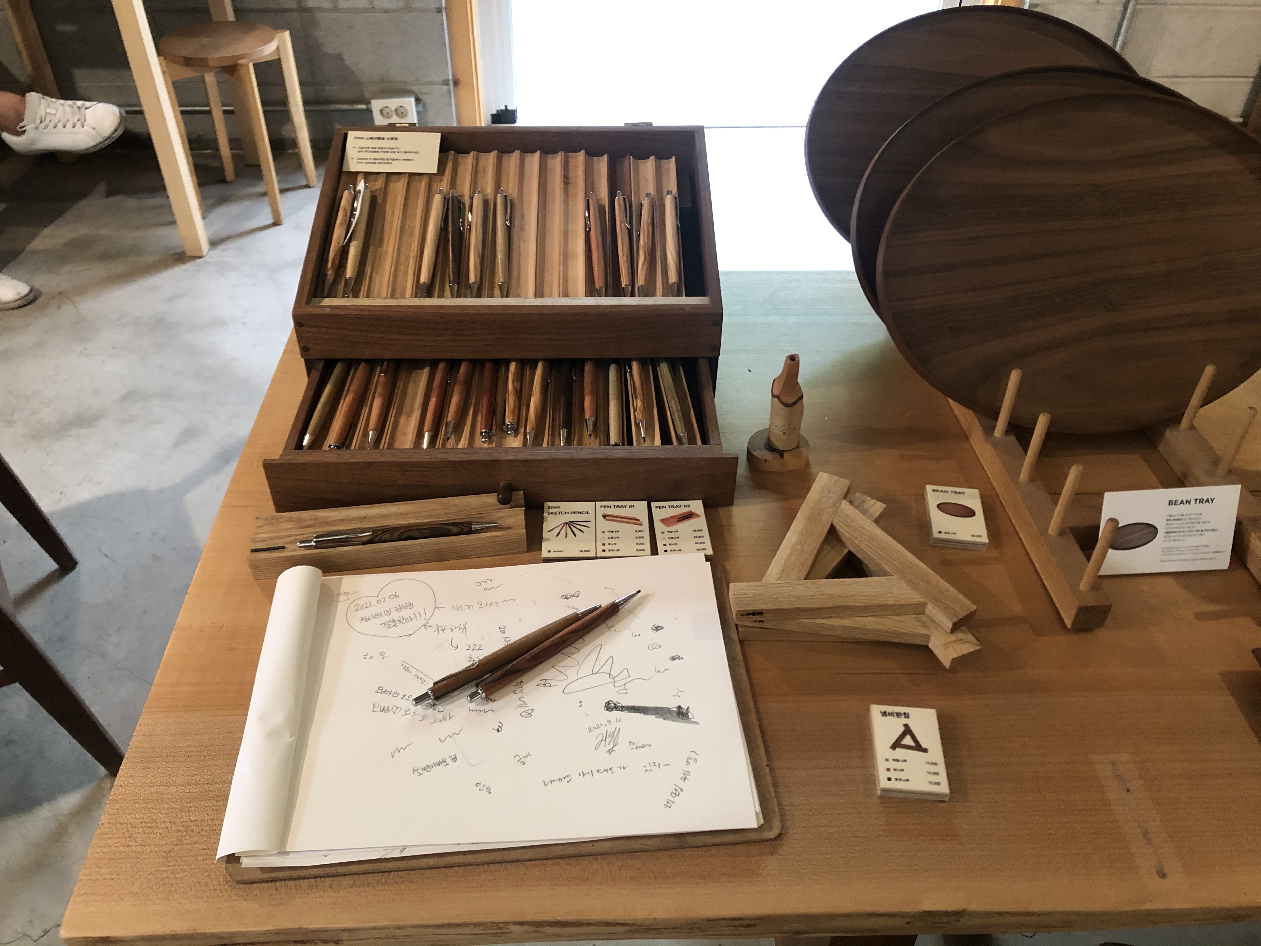 나무공방처럼 오른쪽 벽에 큰 나무 원자재(?)라고해야하나요? 어느정도 다듬어지고 손봐진 원목이 있었어요. 진짜 최고최고최고