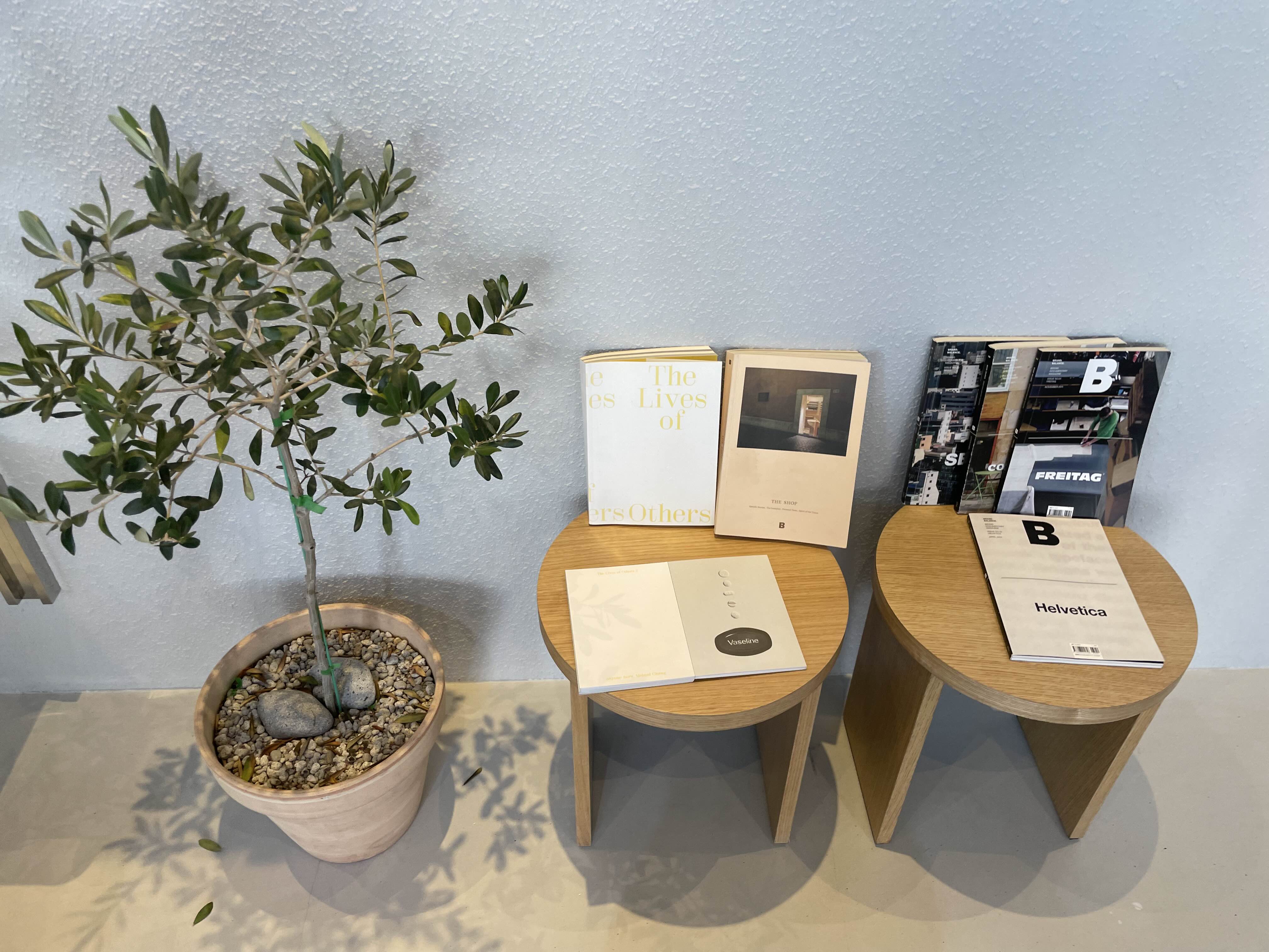 귀여운 올리브 트리와 책, 매거진.