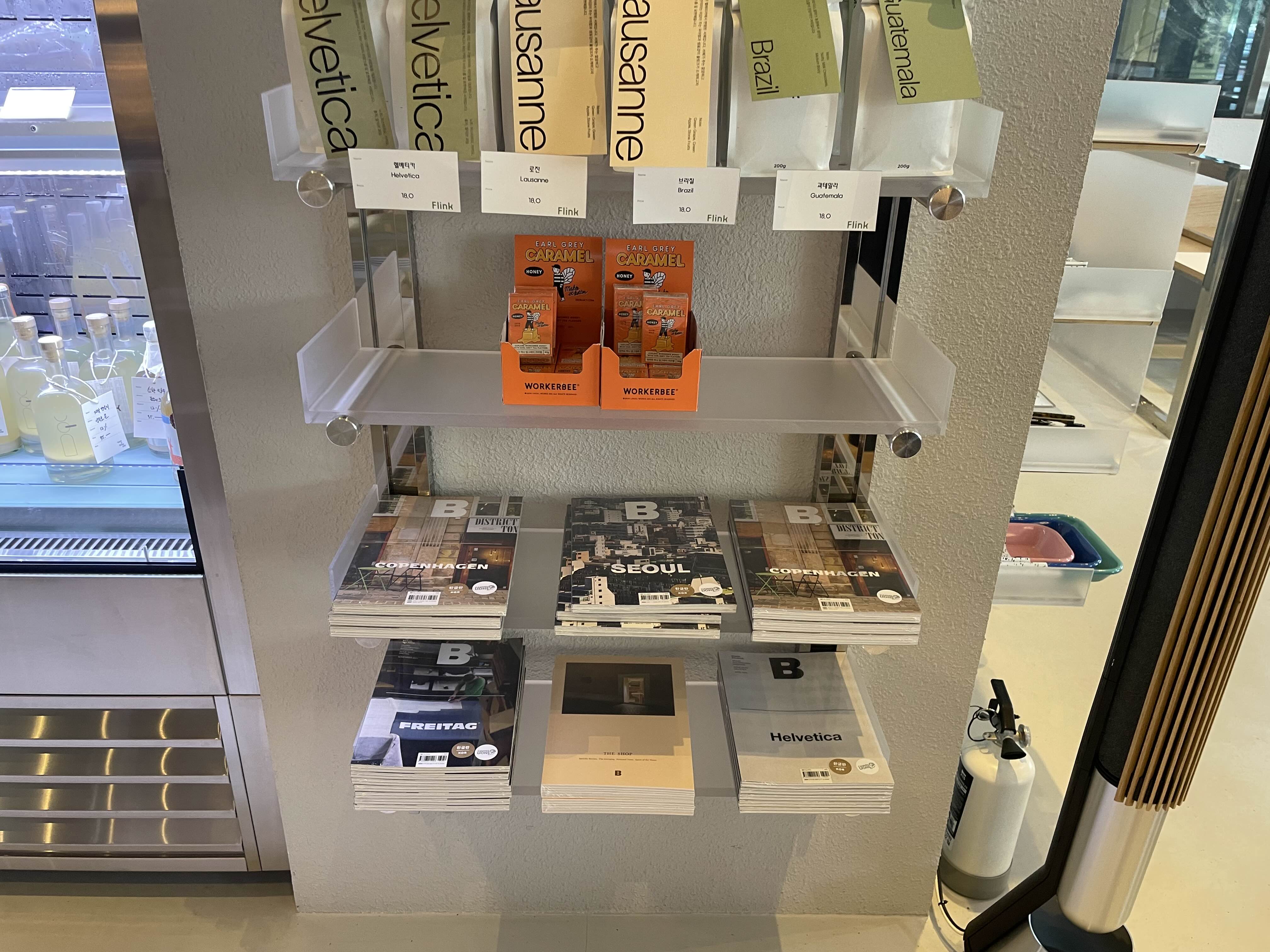 오른쪽의 헬베티카 서체를 주제로 한 매거진B는