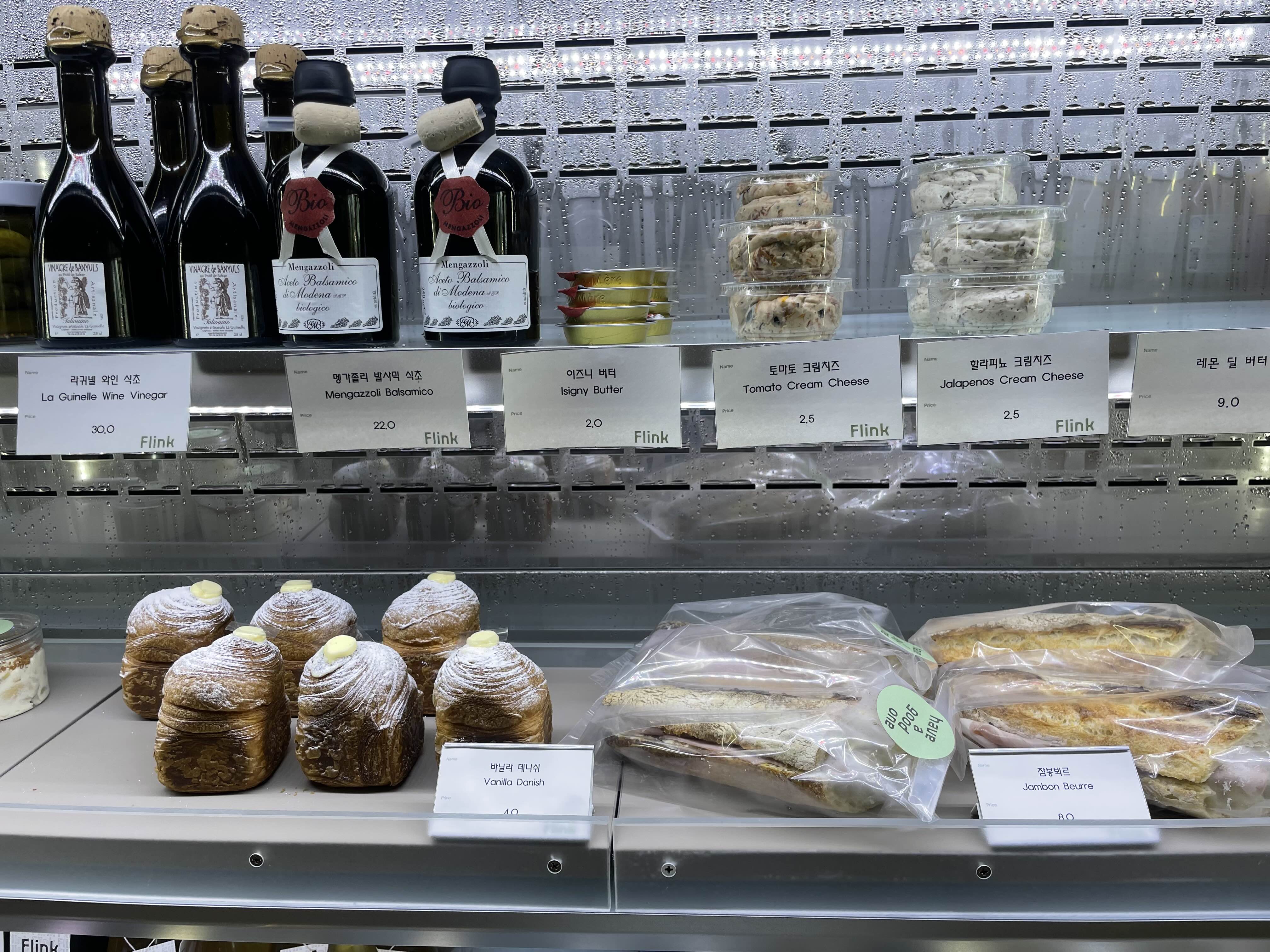 잠봉뵈르, 앙버터 냉장 베이커리 등이 진열되어있고