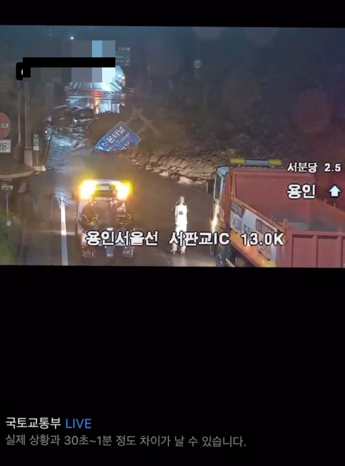 용서고속도로는 산이 무너져내려서 통제되었다고 한다.