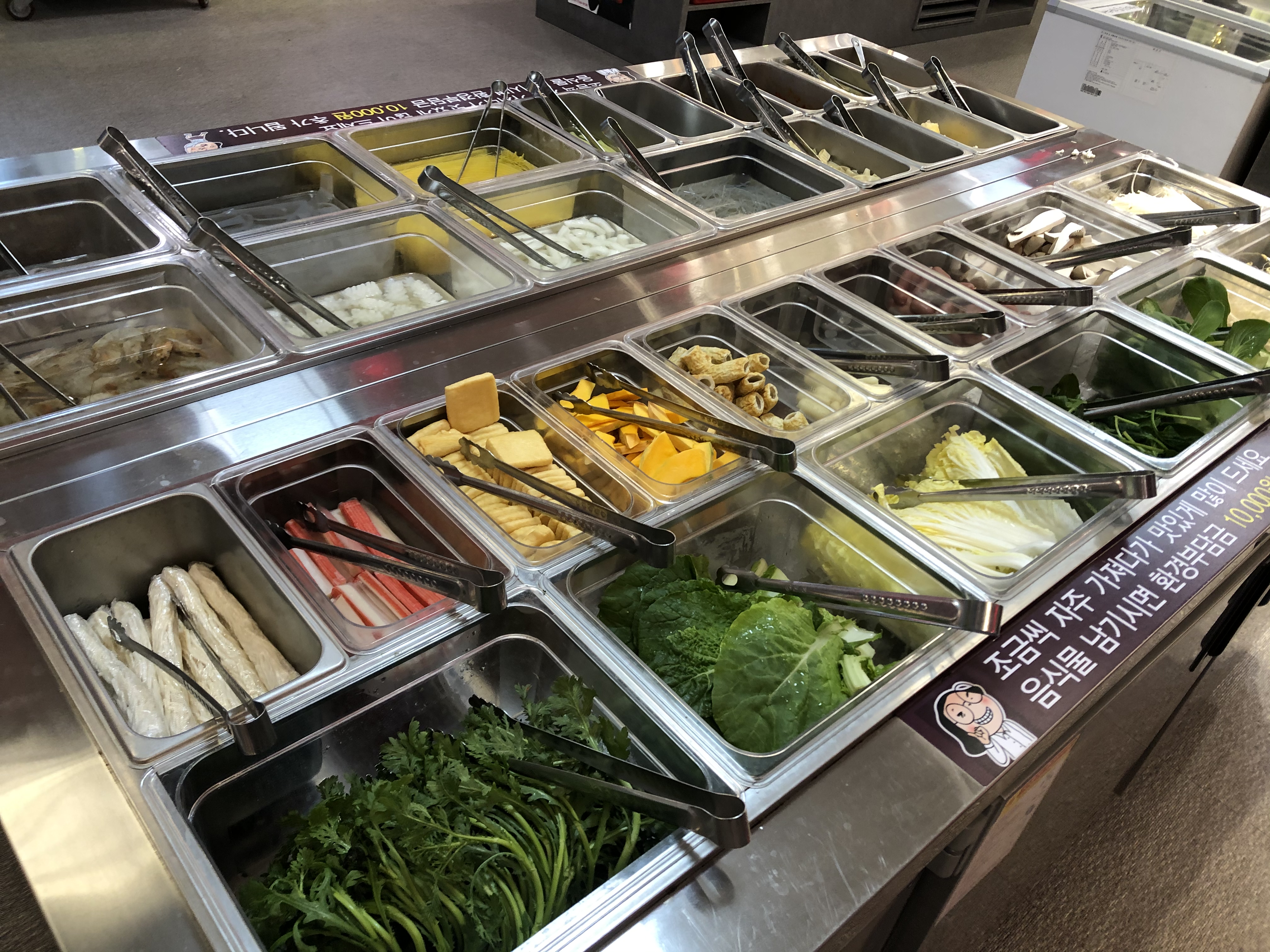 부페는 크게, 소스바, 야채고기바, 기타야채두부해산물바(?) 세가지로 되어있다.