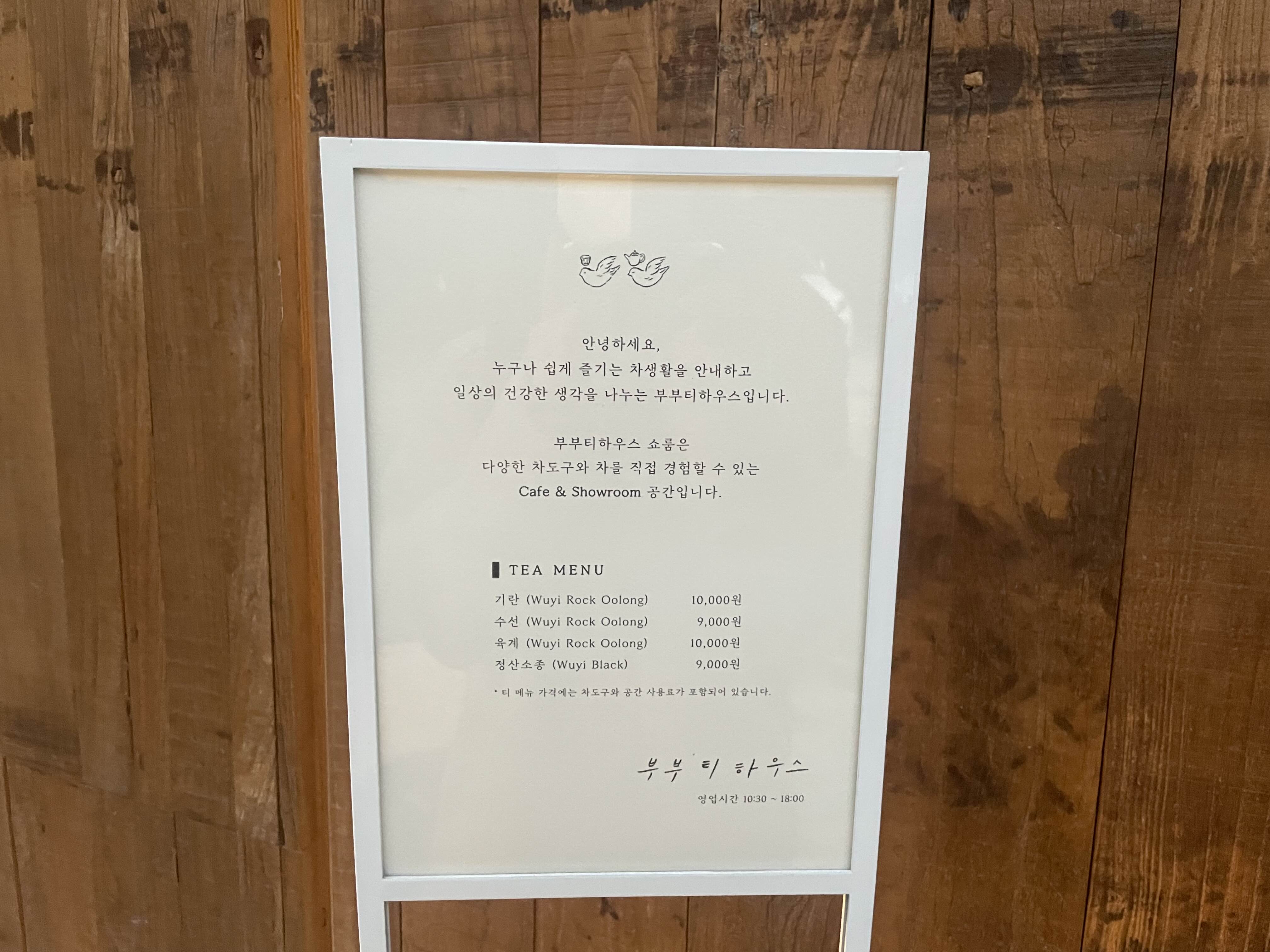 부부티하우스 쇼룸에 가서 티도 마셔보고,