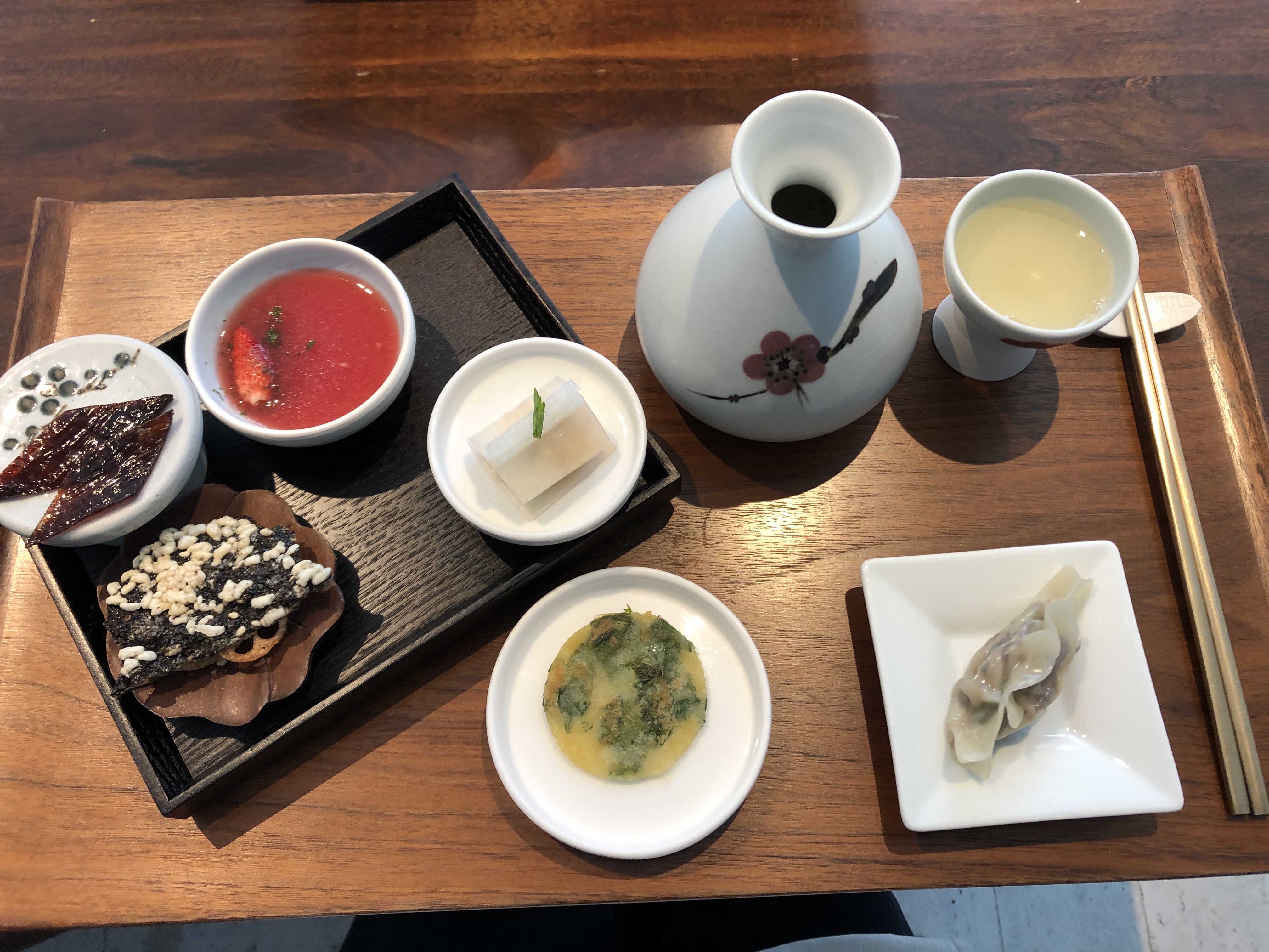 이 주안상에서 가장 베스트는 가장 아래 만두였는데, 표고버섯, 오이, 소고기를 이용한 만두. 정말 향긋한 표고의 향이 퍼지면서 오묘하게 오이맛이랑 담백한 소고기의 조합이 최고였다 ㅋㅋㅋㅋㅋ 사진까지 찍어서 집에서 만들어보겠다며...