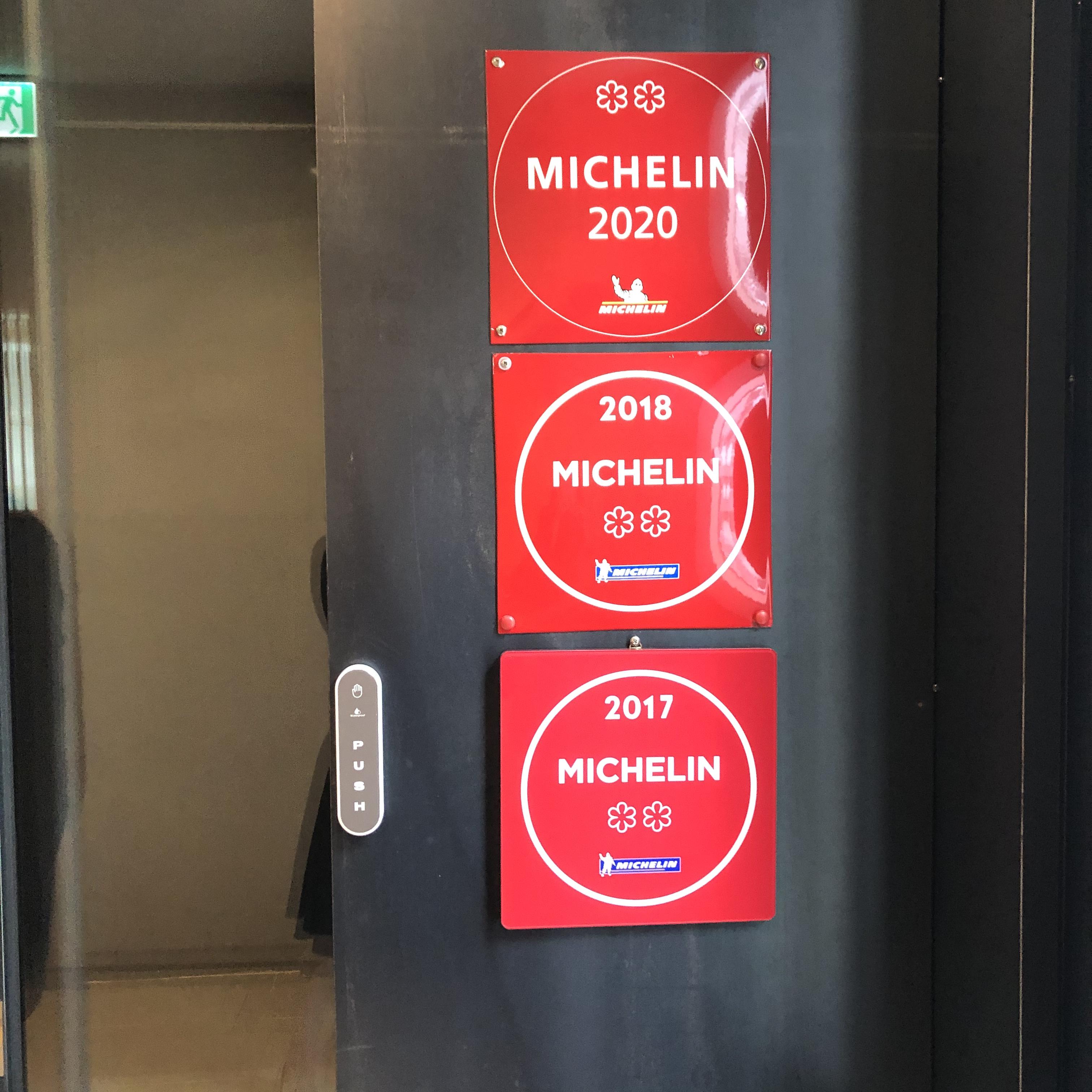 네네 미슐랭가이드 투스타 벳지 사진 안찍을 수 없죠!