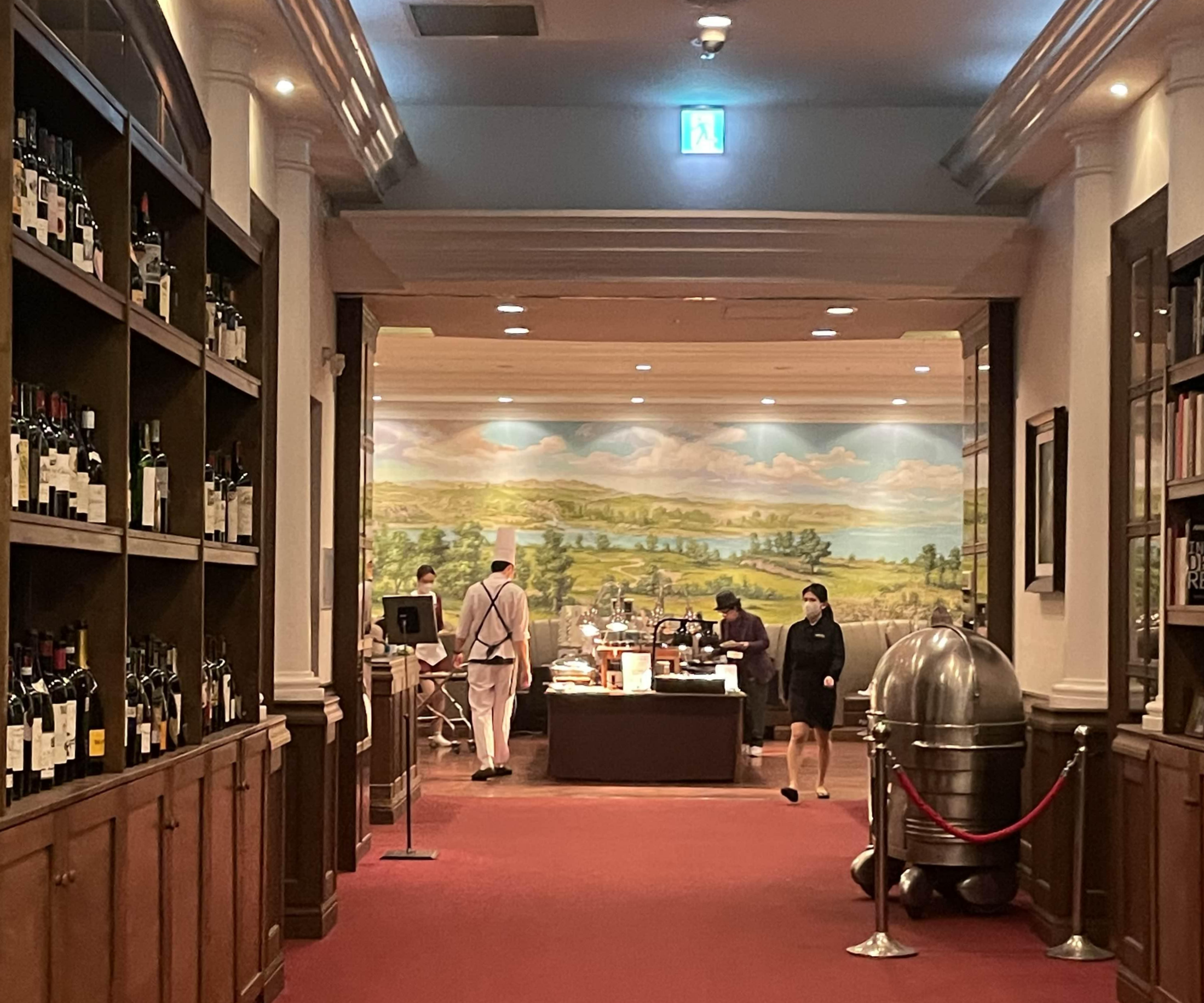 붉은색 바닥 카페트가 고픙스러운 느낌을 자아낸다