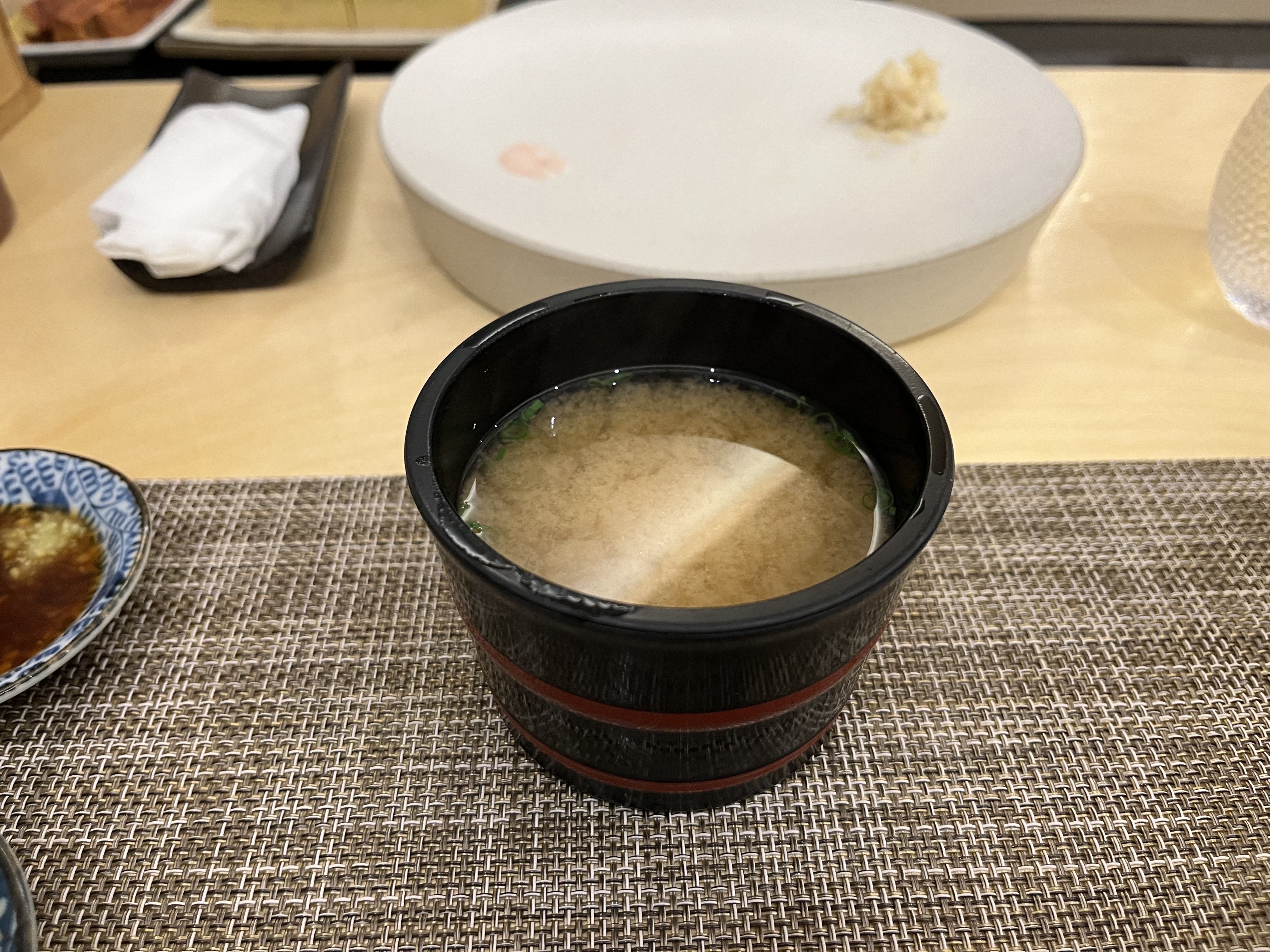 물수건, 스시 플레터, 녹차, 종지등이 셋팅