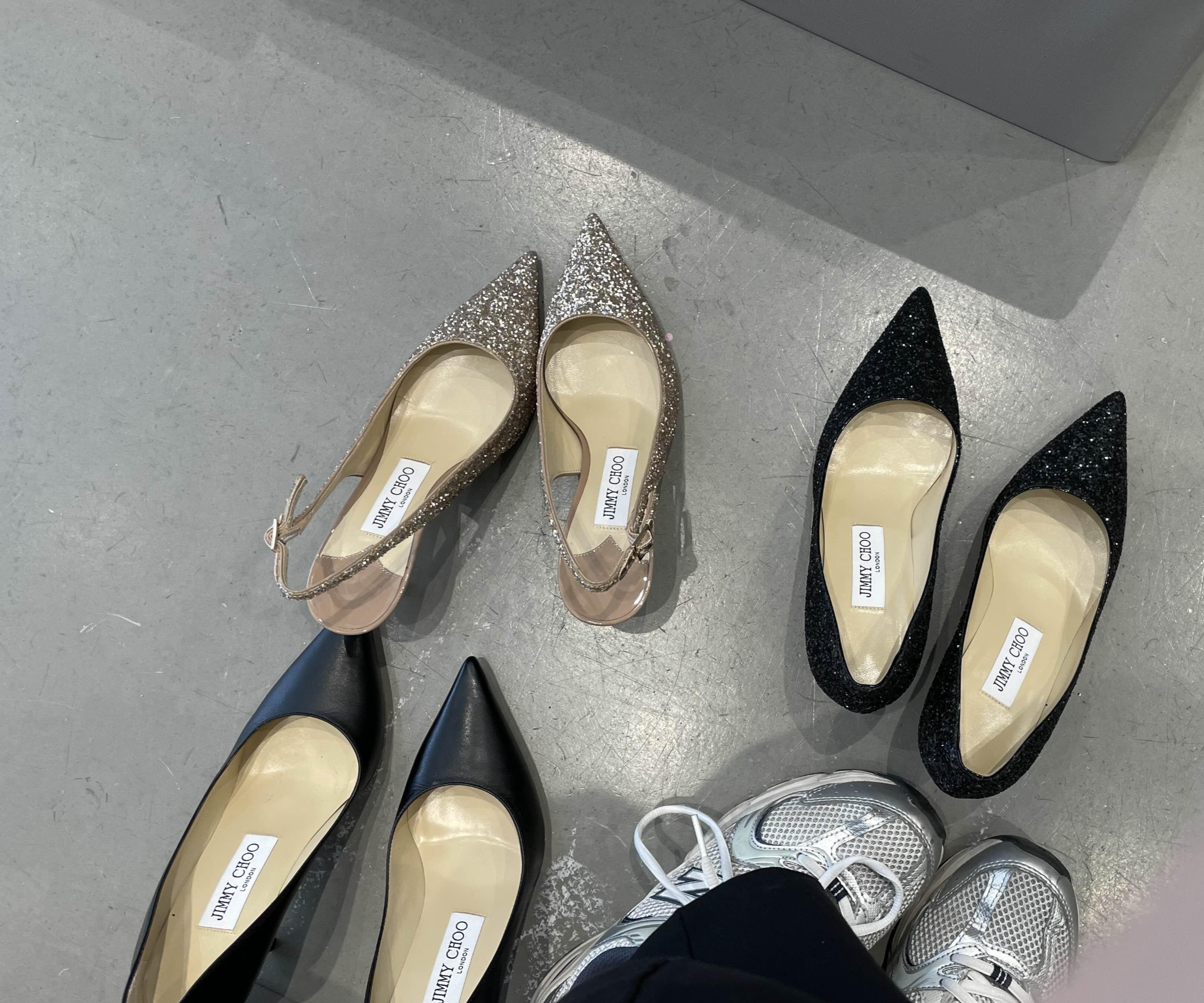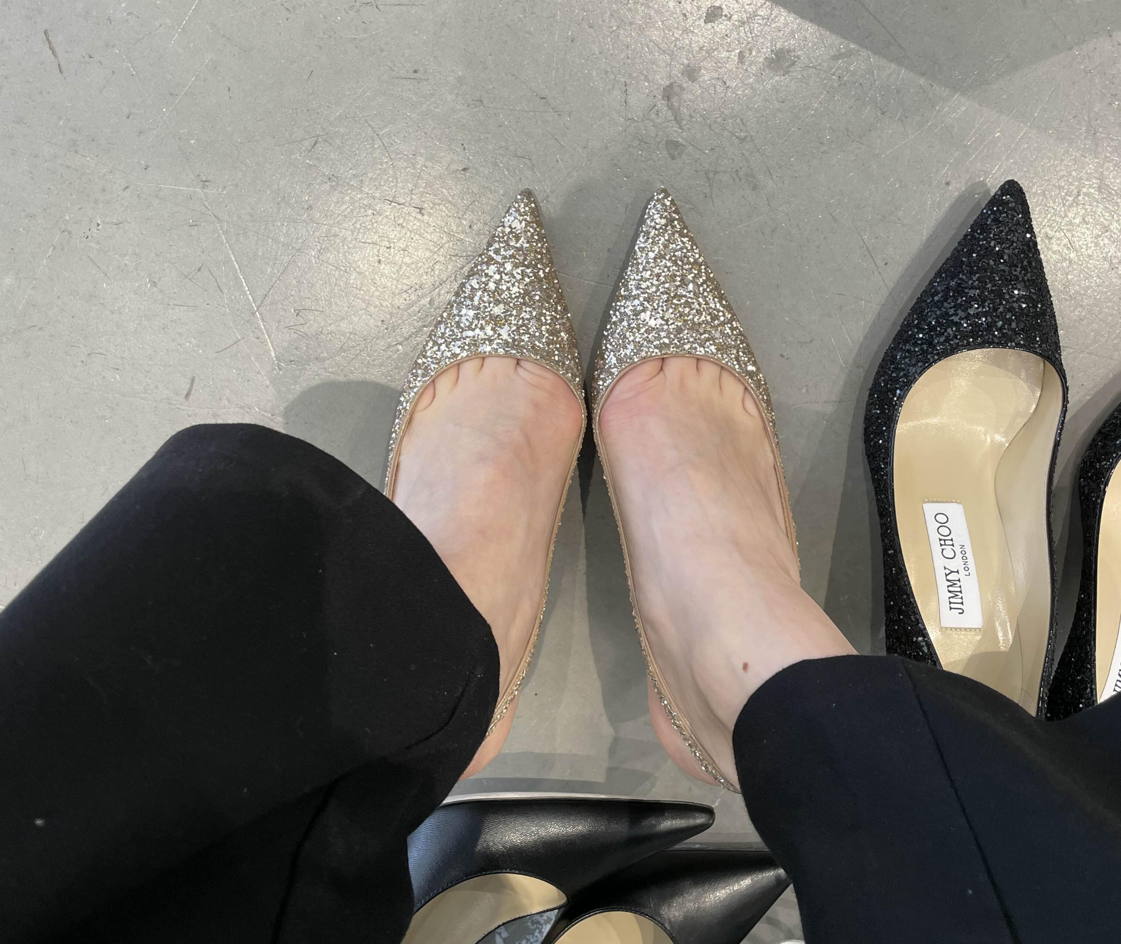혹은 웨딩슈즈의 정석 번쩍번쩍 글리터 스틸레토 세가지다.
