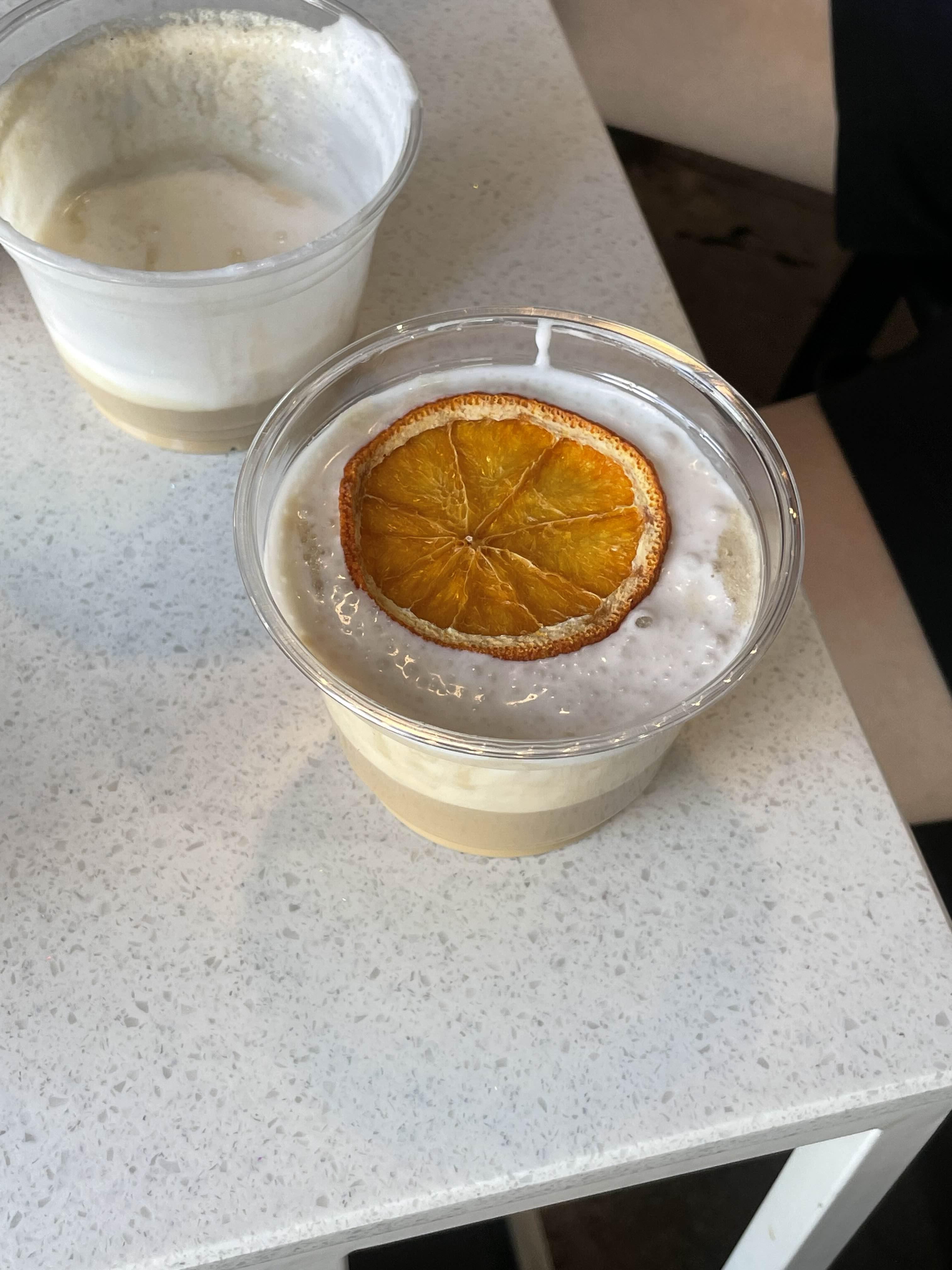 둘이서 오손도손 사이좋게 나눠먹고, 커피를 즐기려는 차에 다시 또 재대로 오랜지까지 올려서 만들어서 한잔 더 주셨다!
