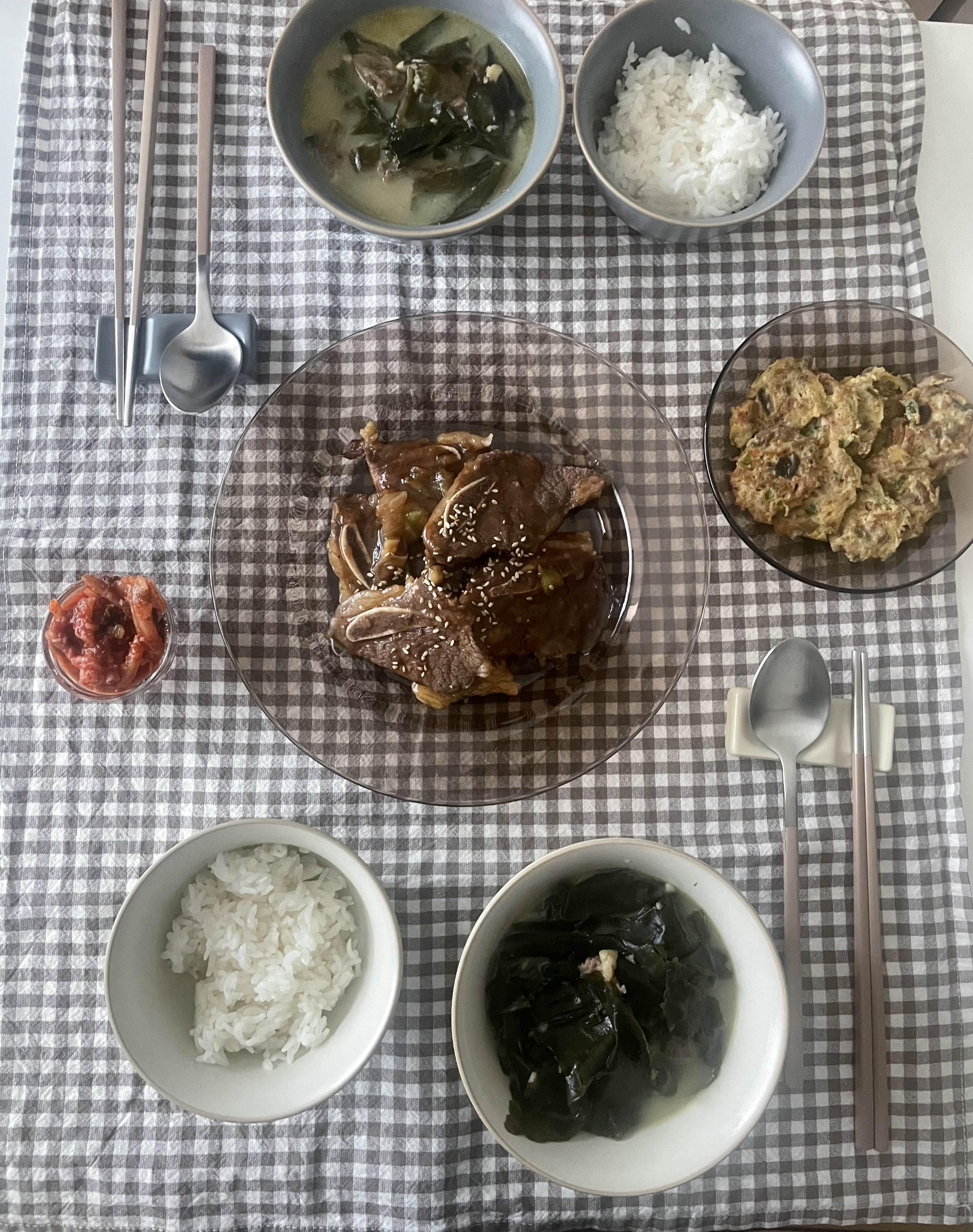 갈비도 굽고 어머님이 챙겨주신 전과 김치